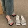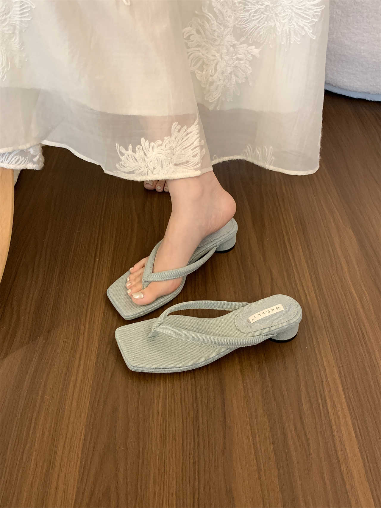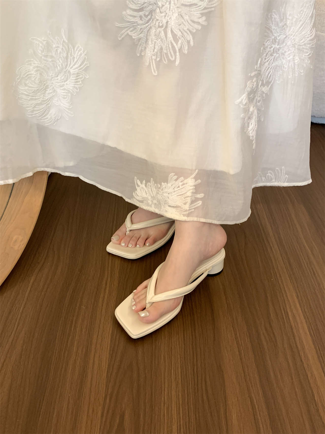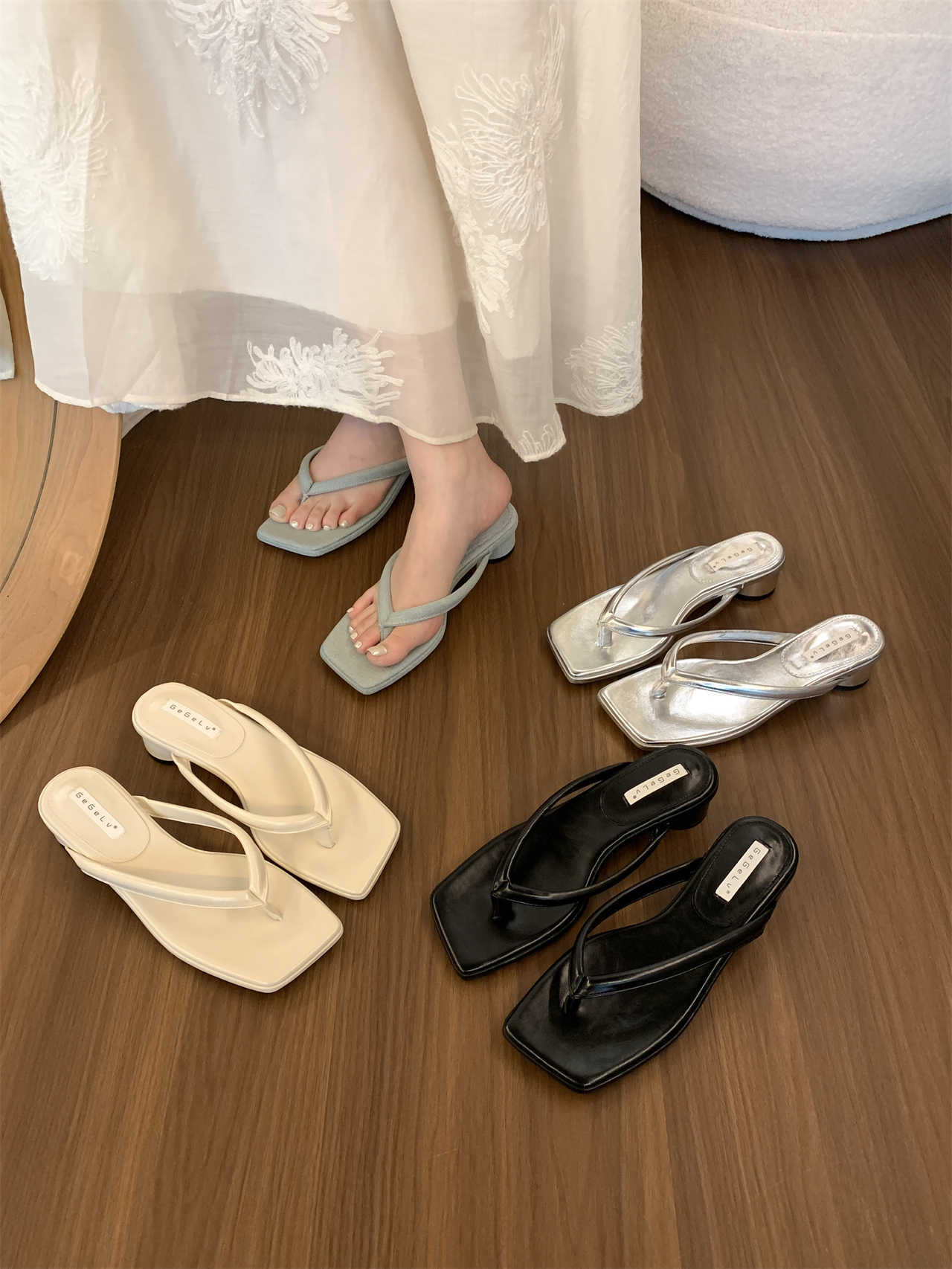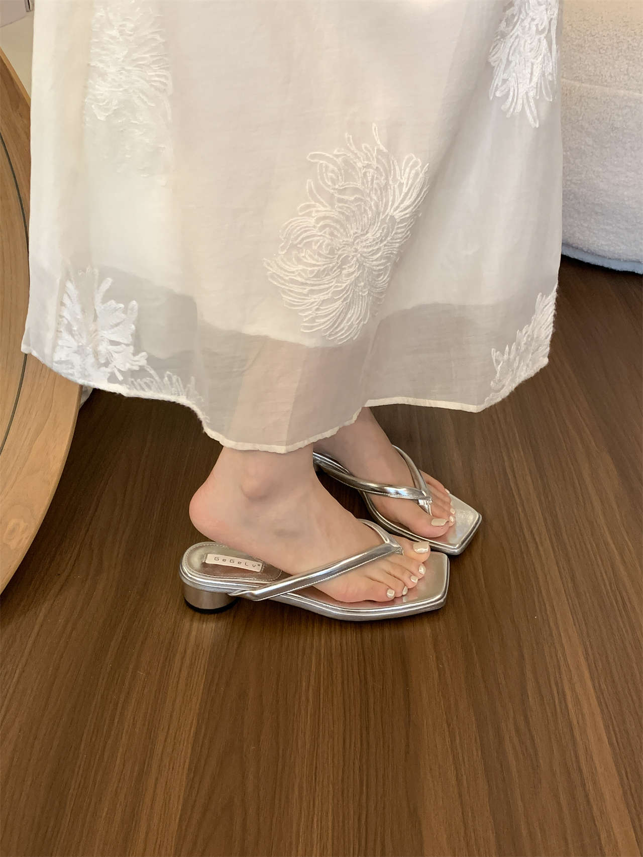 Chanclas de Tacón Grueso Francés para Mujer Venta al por Mayor Nuevo Verano Ropa Exterior Sandalias de Punta Alta con Falda Zapatillas plateadas