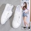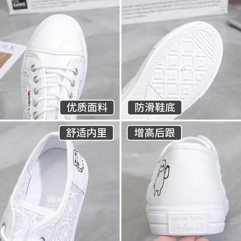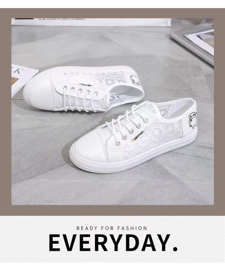 Zapatos blancos transpirables con encaje para mujer, zapatillas de lona planas de estilo coreano, para estudiantes, de malla, para verano, 2024