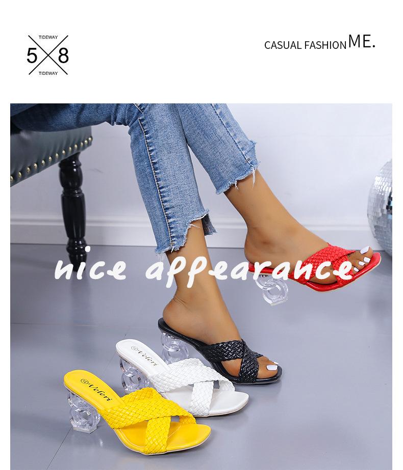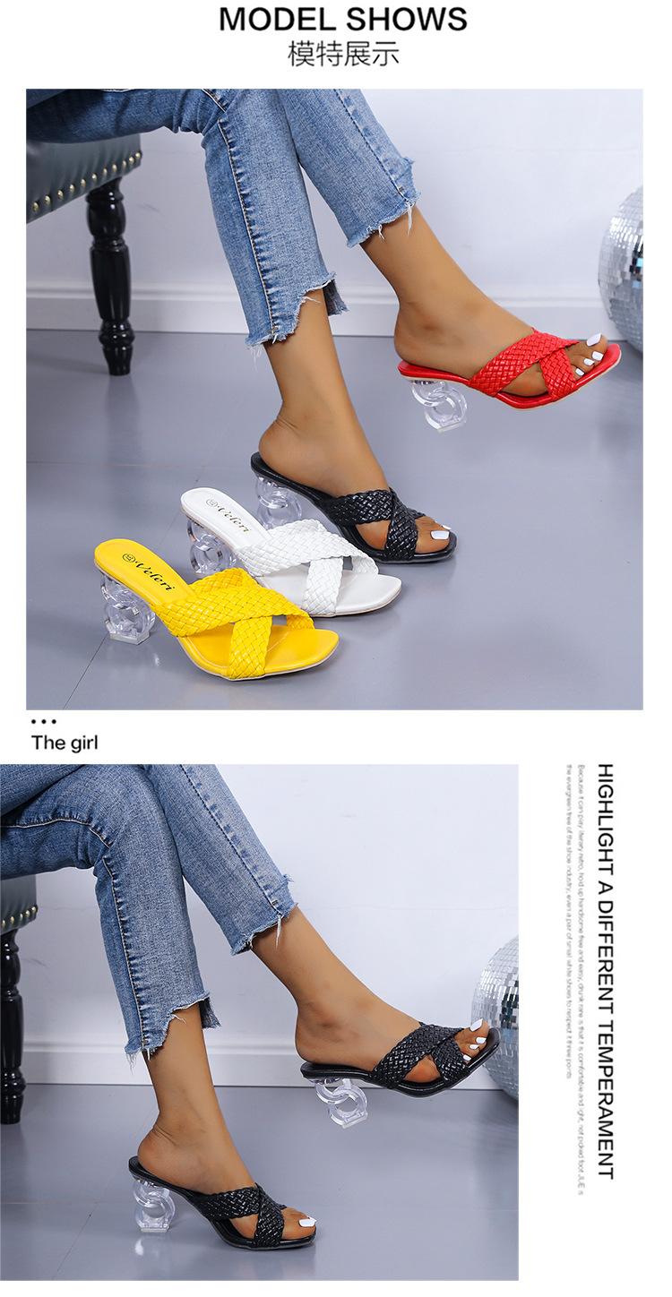 Sandalias de tacón alto con cristales de comercio exterior europeo y americano para mujer, sandalias tejidas cruzadas, zapatillas de mujer
