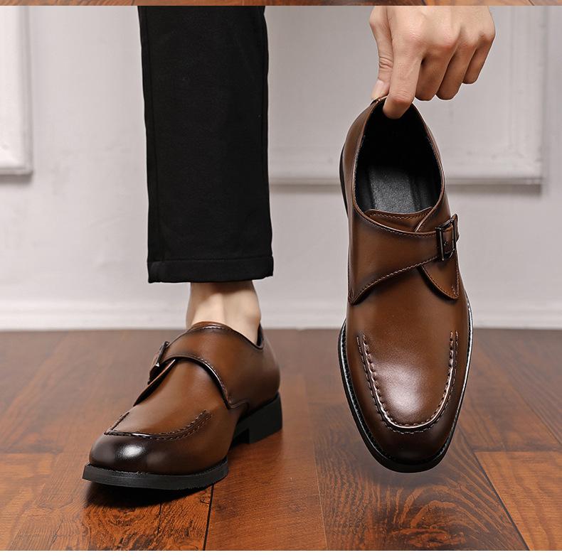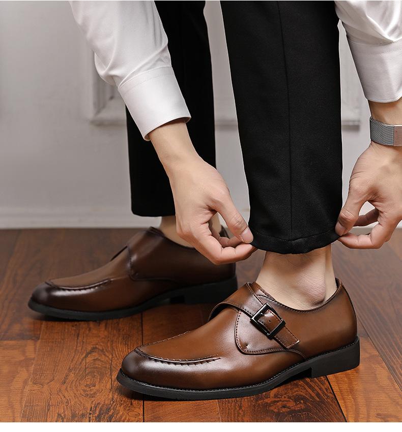 Zapatos de primavera para hombre, de talla grande, de cuero, sin cordones, con punta redonda, para negocios, de cuero, pequeños, para hombre.