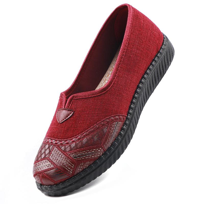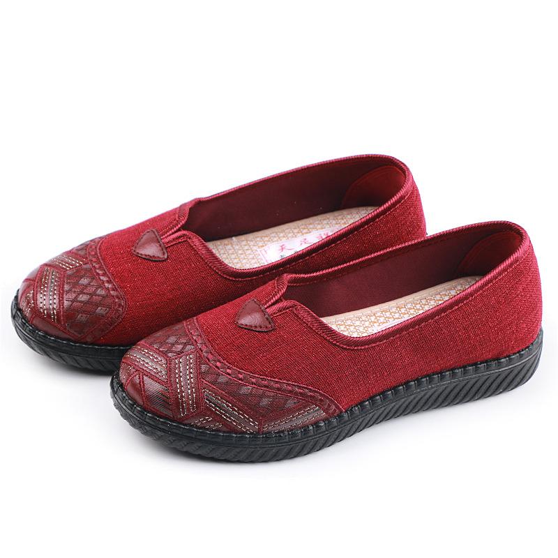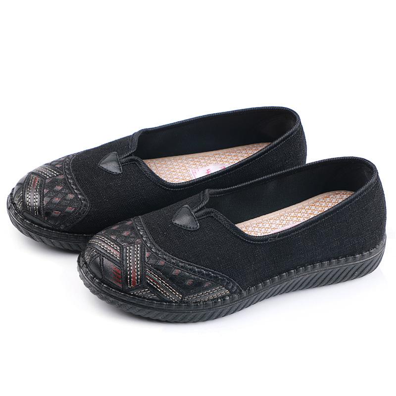 24 primavera y otoño nuevos zapatos de tela de Pekín antiguos zapatos de mujer cómodos zapatos de madre casuales transpirables tacón plano zapatos para personas de mediana edad y mayores al por mayor