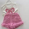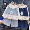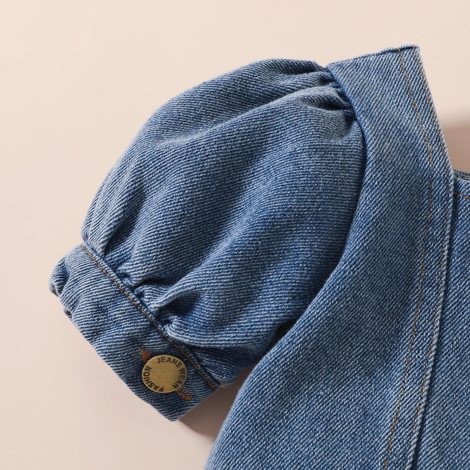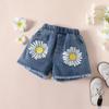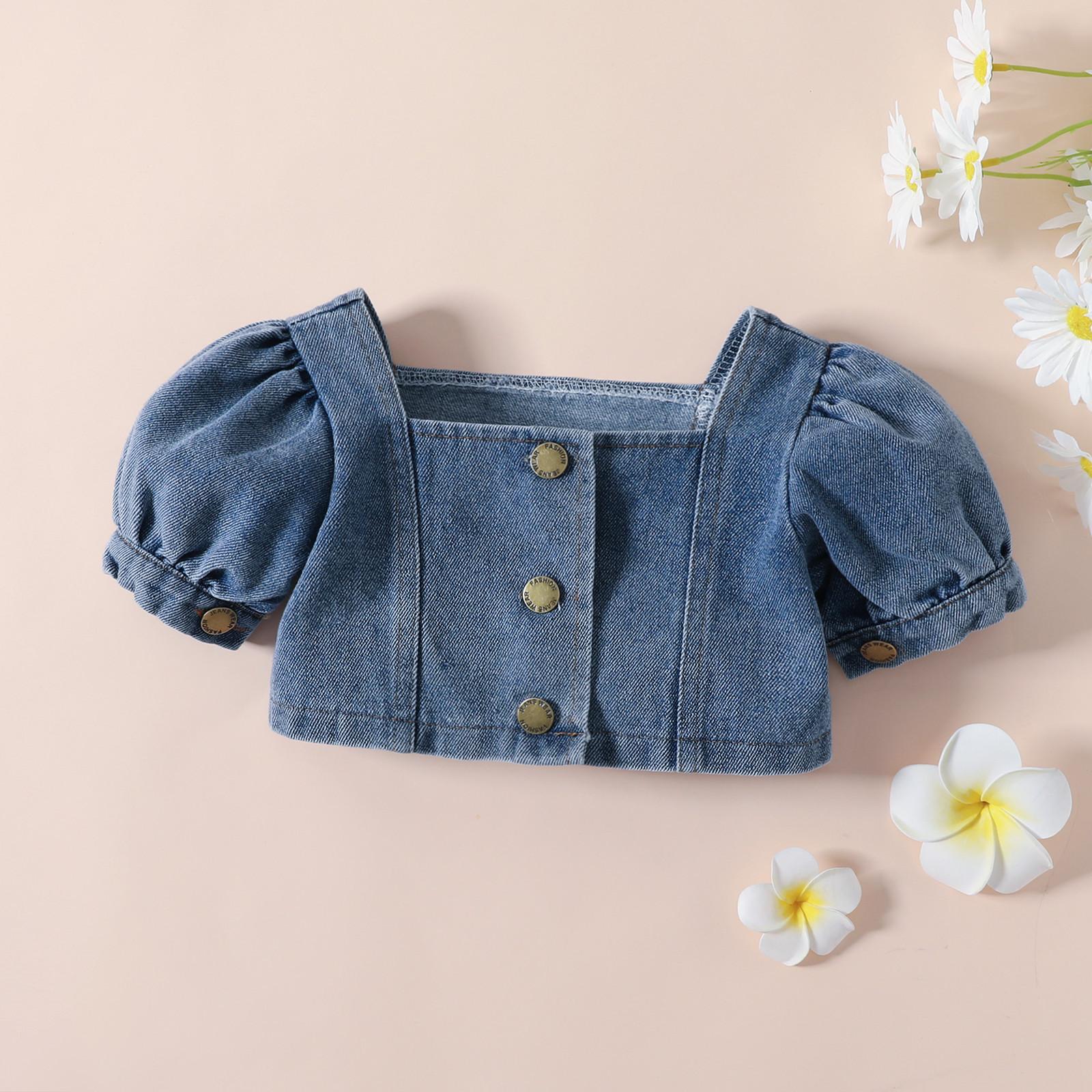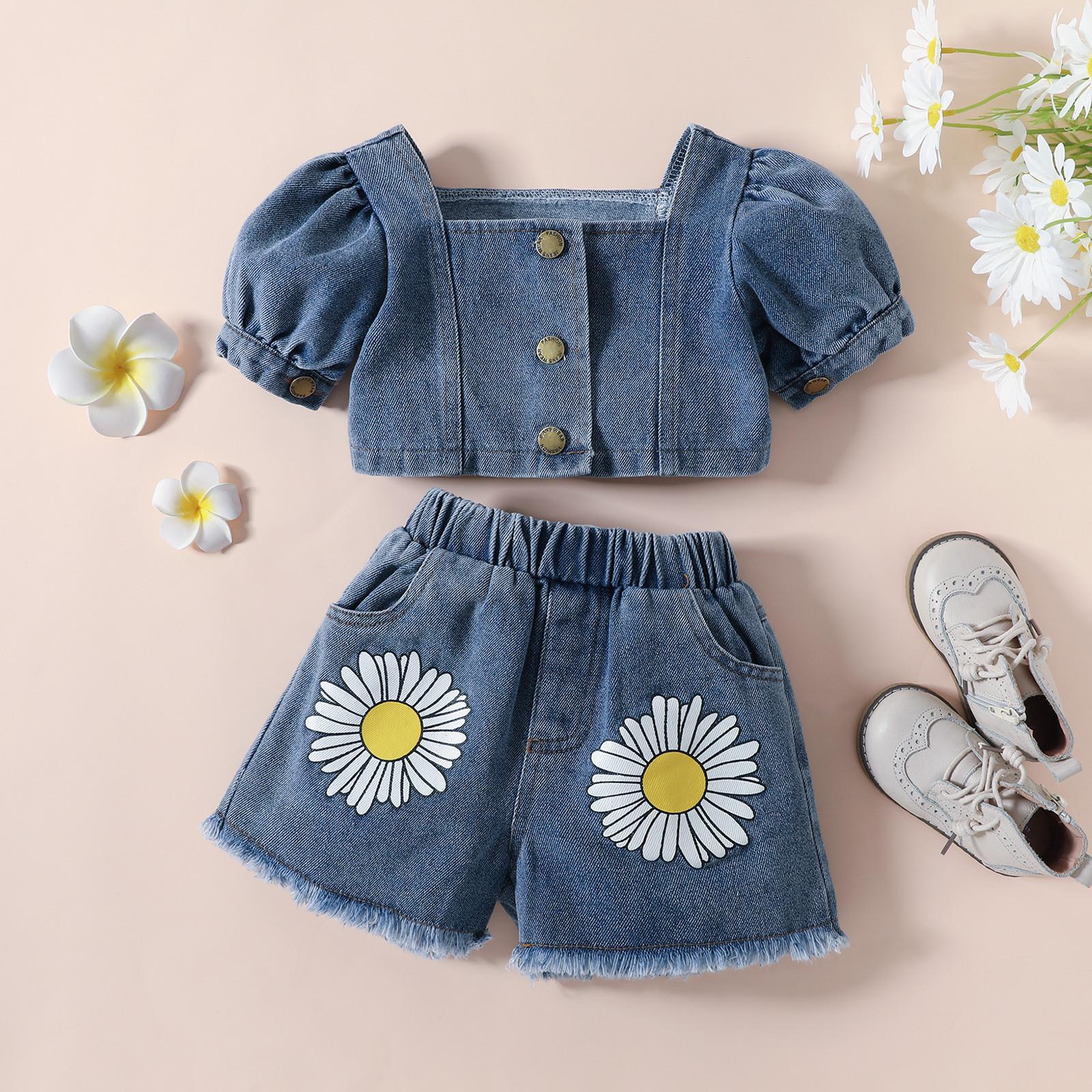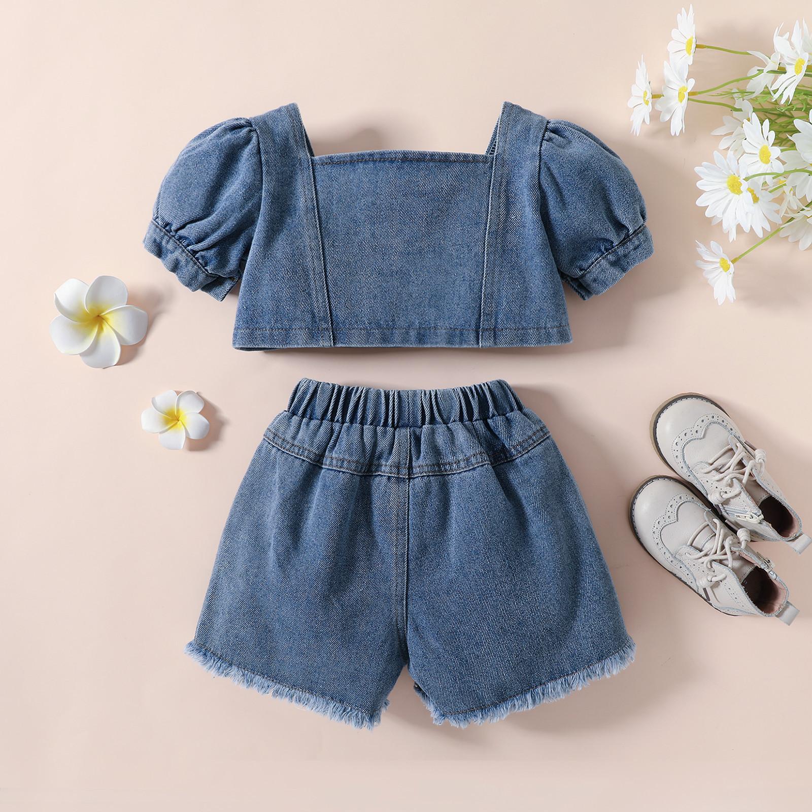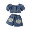 Ropa Infantil de Comercio Exterior Primavera Nuevo 2025 Conjunto de Manga Corta para Niñas Pequeñas con Shorts de Mezclilla en Estilo Europeo y Americano