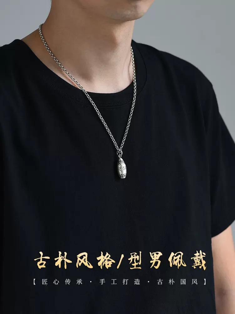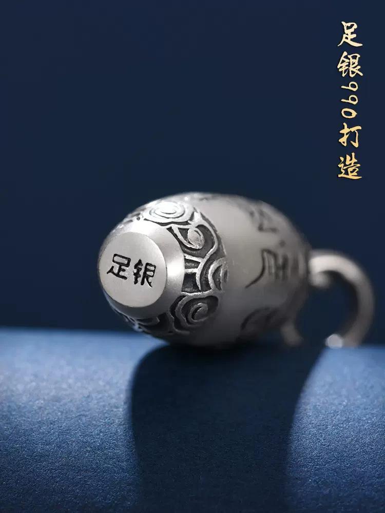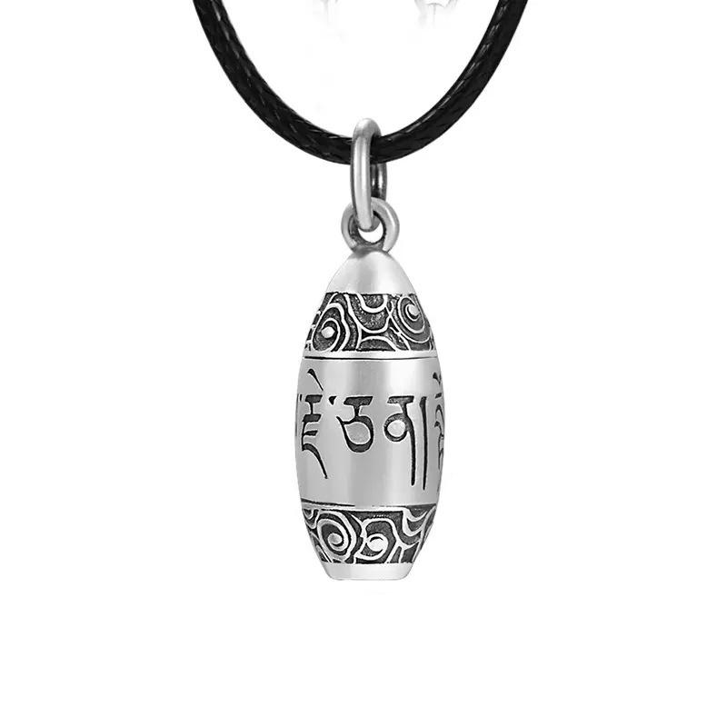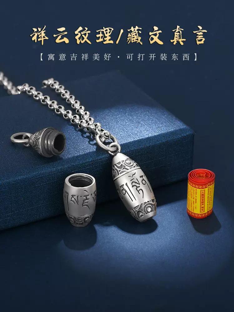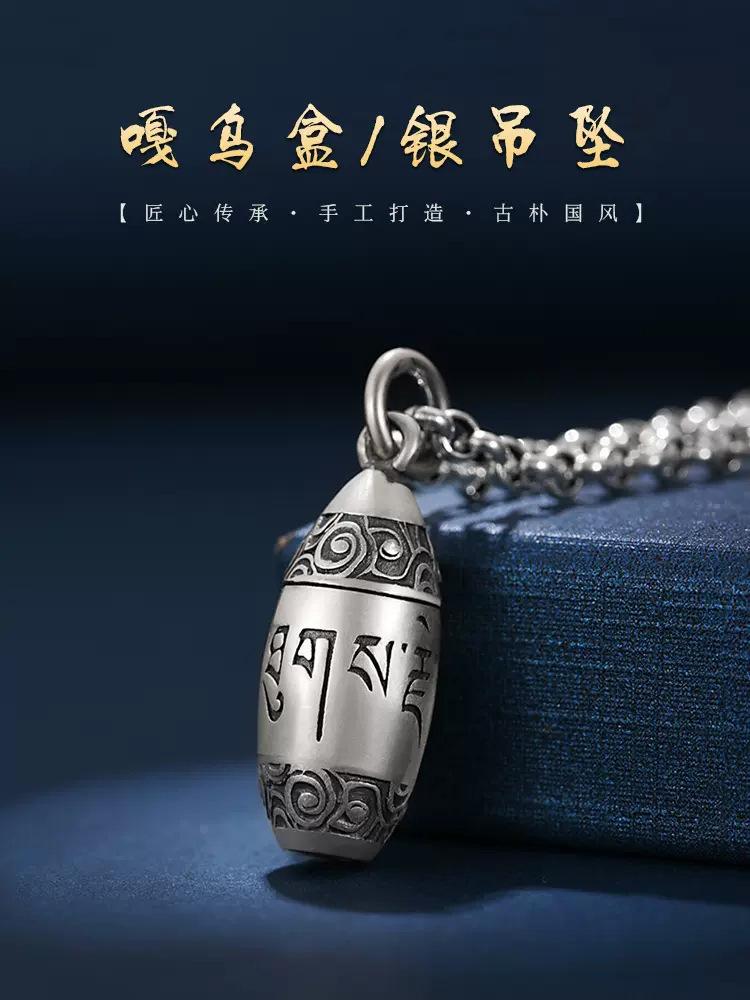Colgante de plata de ley 999 con forma de mantra de seis palabras y caja gawu retro para mujer, collar abierto para hombre