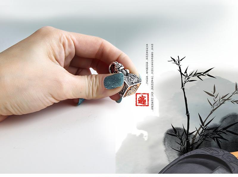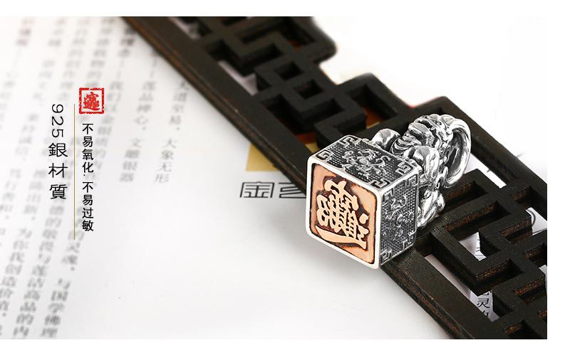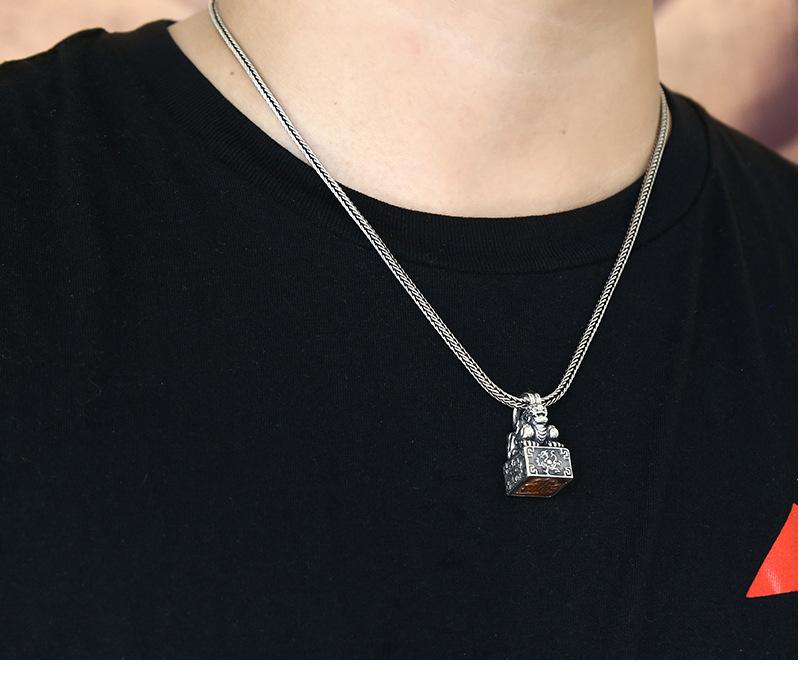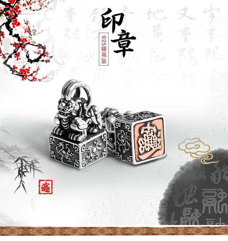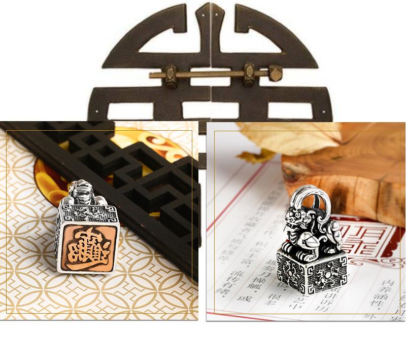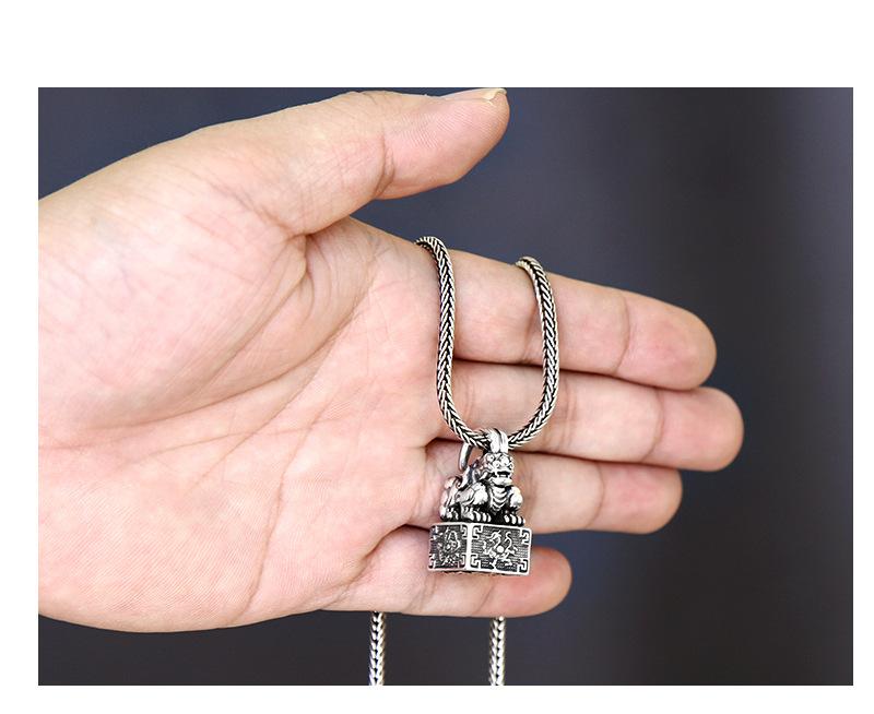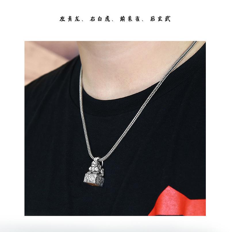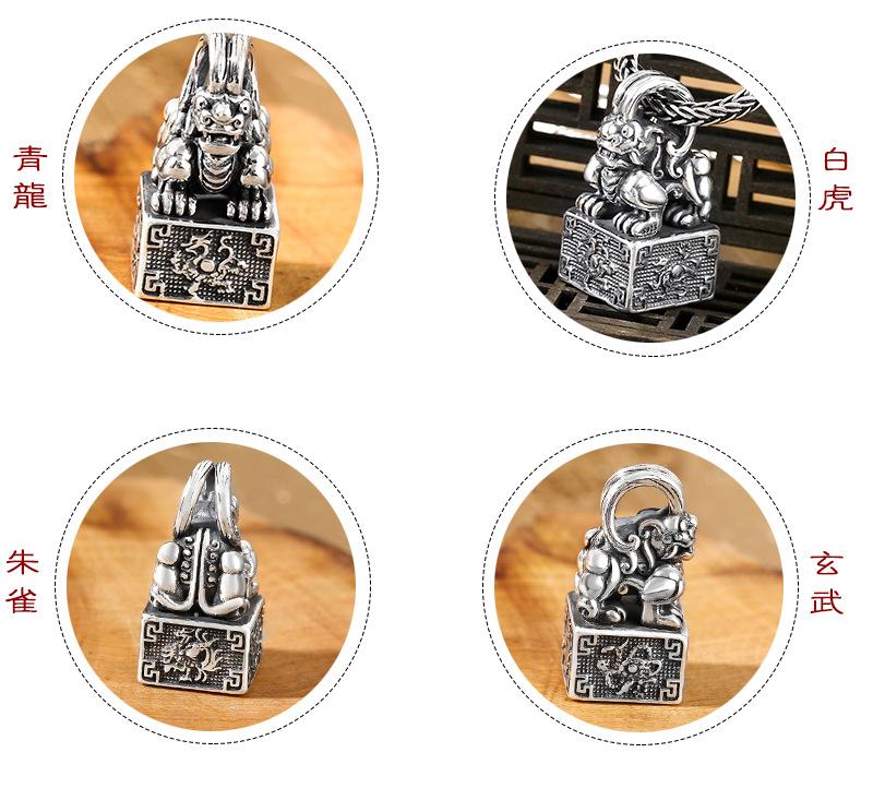 Colgante de plata esterlina con sello. Diseño creativo. Hombres y mujeres pueden usar un collar de plata tailandesa con personalidad retro chic de cuatro dioses y bestias.