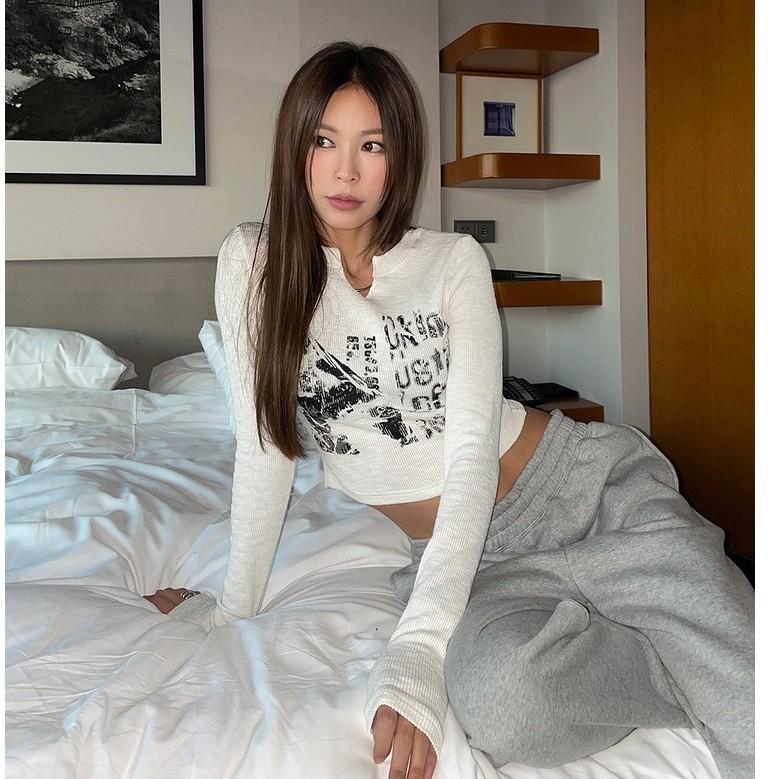 Exportación Europea y Americana 2025 Verano Ropa de Mujer Nueva Estampado Graffiti Corto Ombliguera Manga Corta Sexy Slim Camiseta para Mujer
