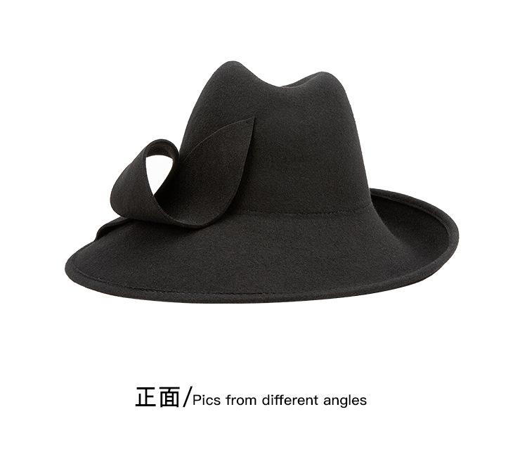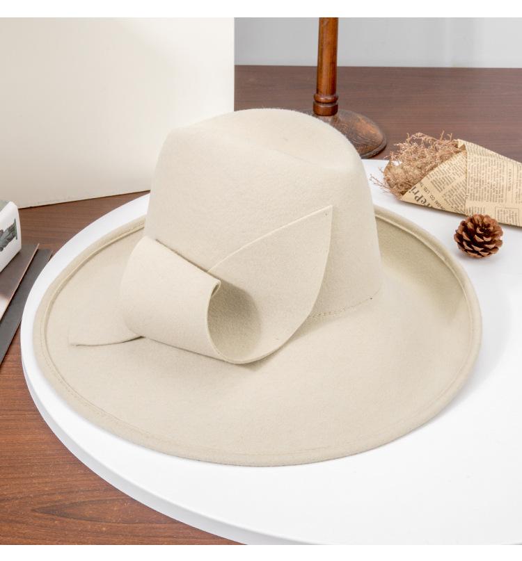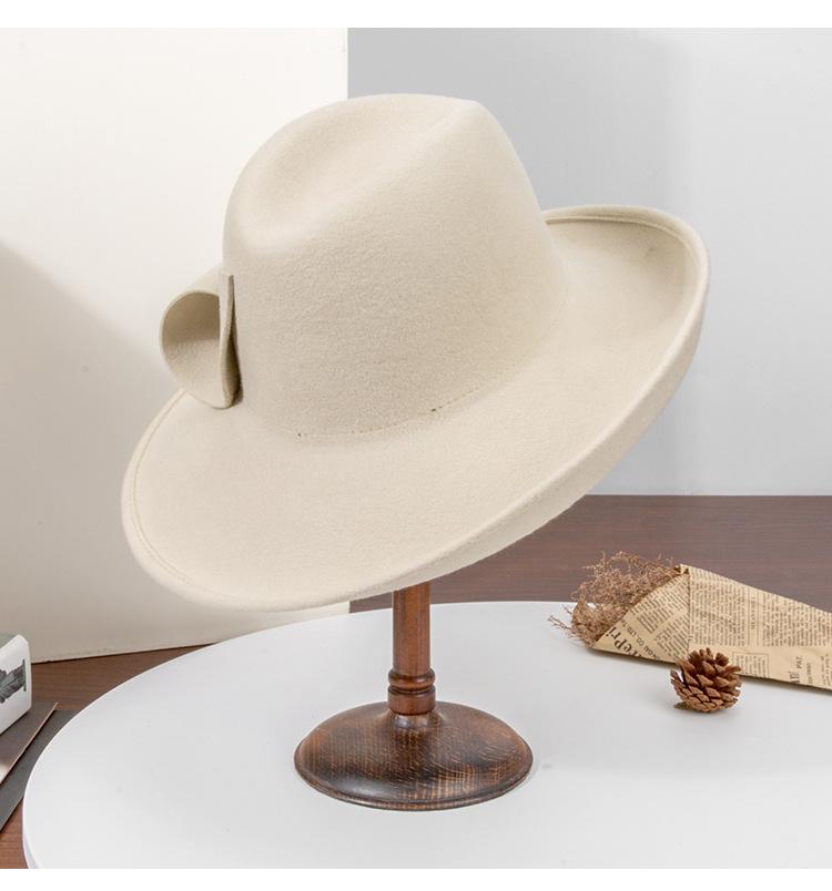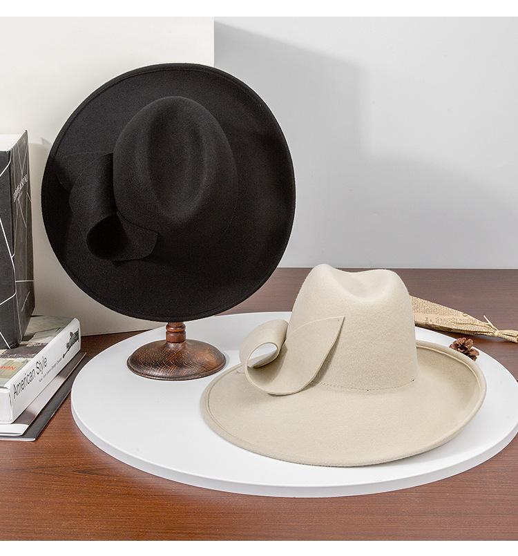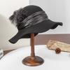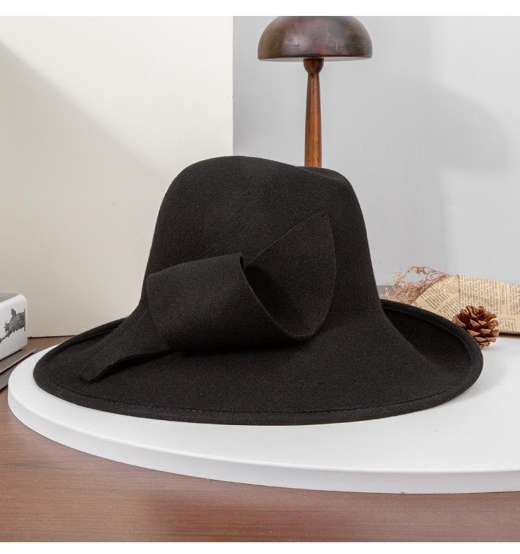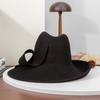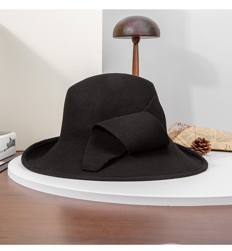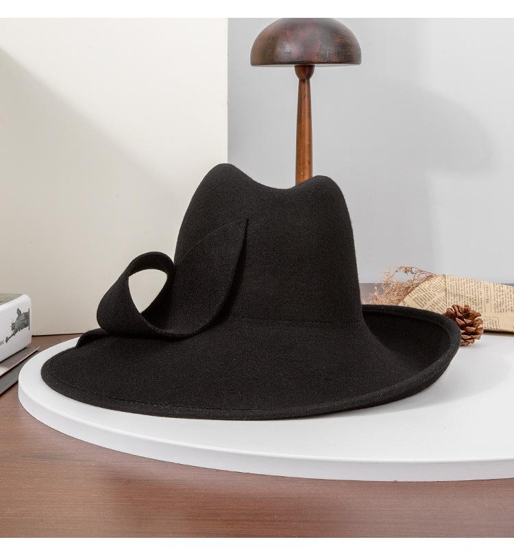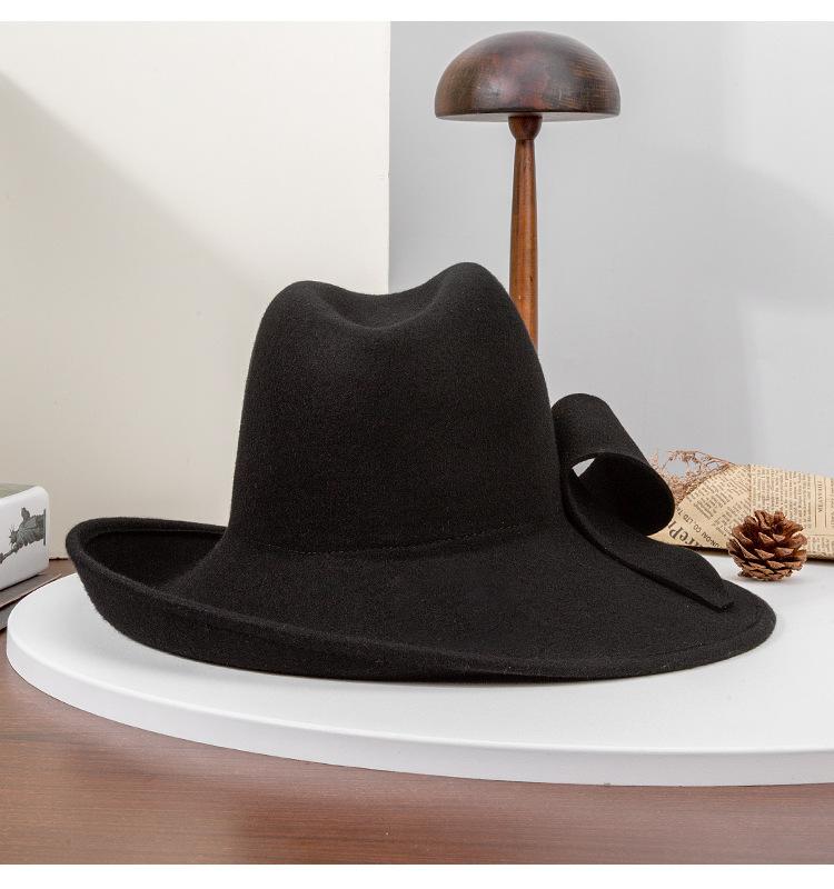 2025 Linglong Otoño e Invierno Sombrero Nuevo para Mujer Retro Británico Negro Lana Ala Ancha Sombrero de Fieltro Versátil de Moda