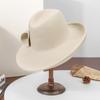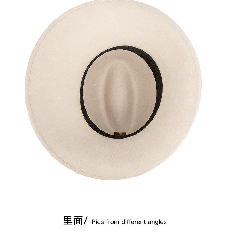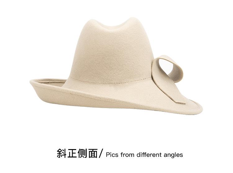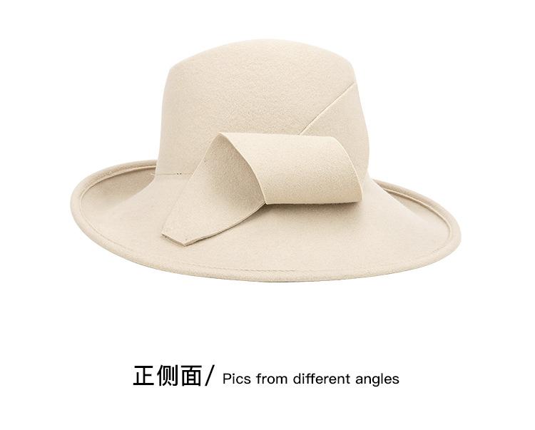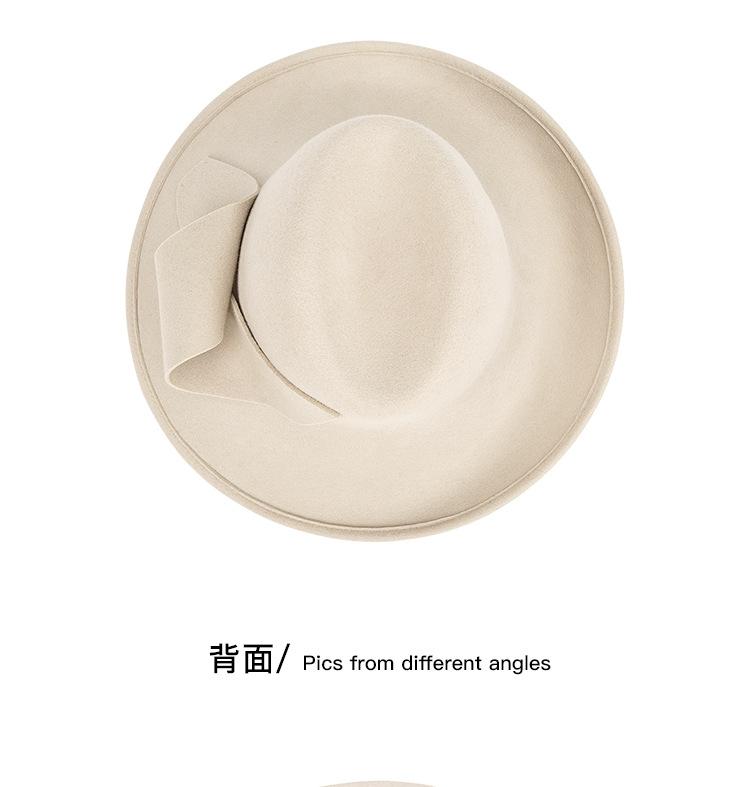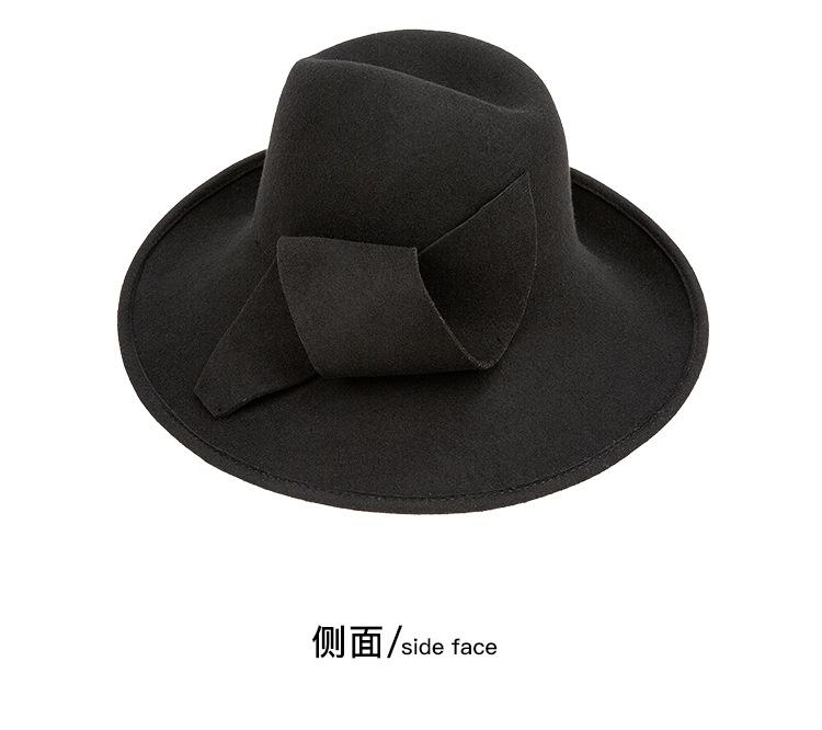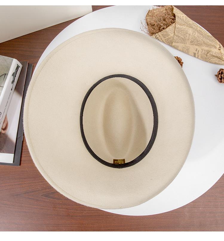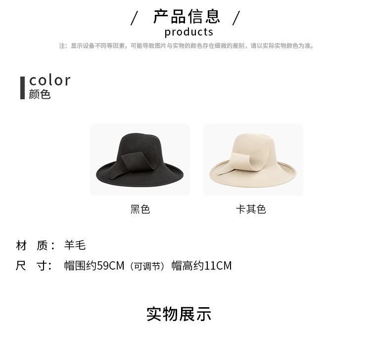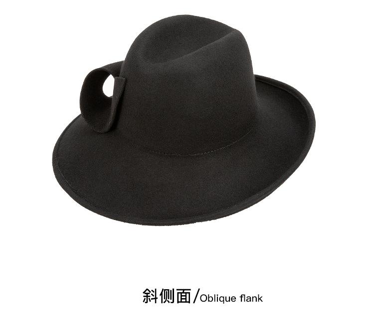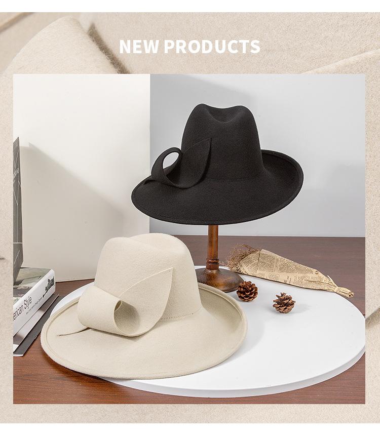 2025 Linglong Otoño e Invierno Sombrero Nuevo para Mujer Retro Británico Negro Lana Ala Ancha Sombrero de Fieltro Versátil de Moda
