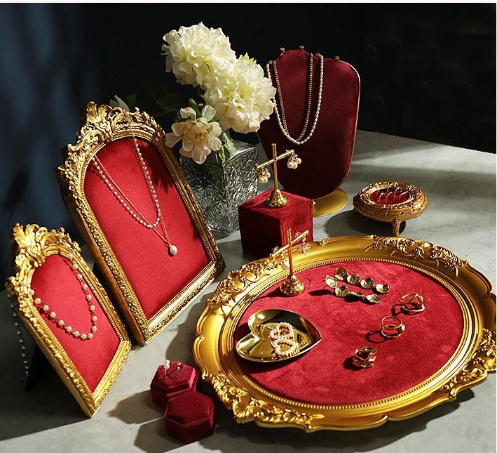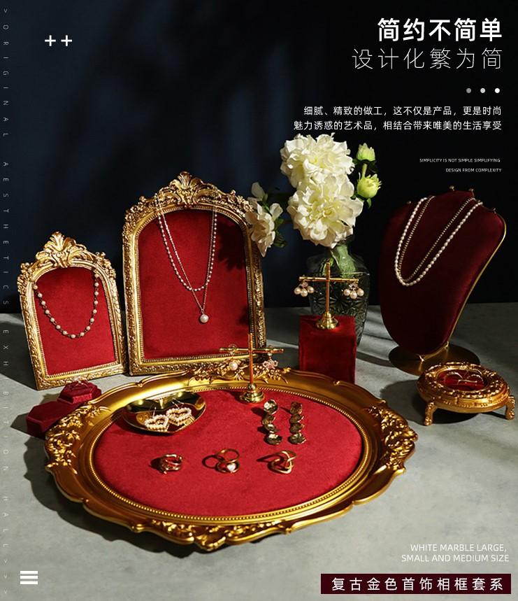Compra Expositor de joyas, expositor de joyas, tienda de lujo, marco de fotos de franela roja, estante para collares, accesorios de fotografía, bandeja para anillos al por mayor en Joom.pro