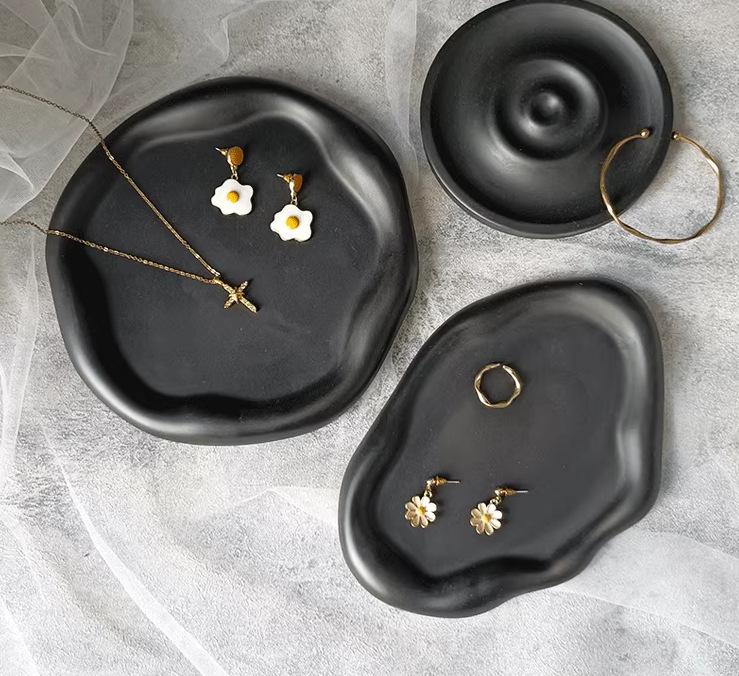 Bandeja de yeso negro para exhibir joyas, collares, pendientes, anillos, accesorios para fotos.