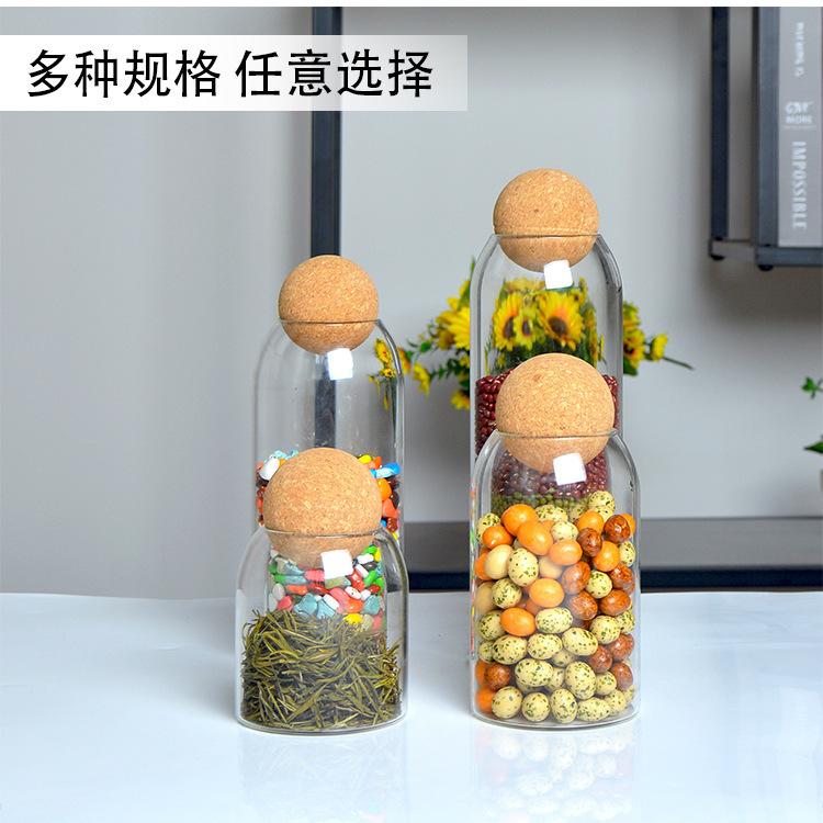 Tarro Sellado de Vidrio Transparente de Alto Borosilicato Tarro de Almacenamiento Tarro de Almacenamiento de Granos con Tapa de Corcho Tarro de Té Venta al por Mayor
