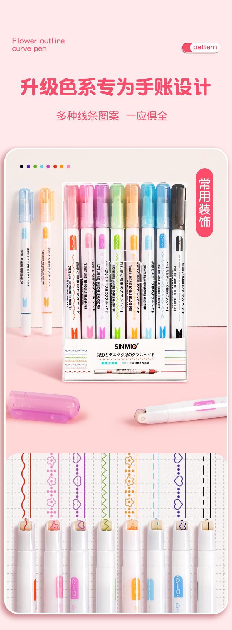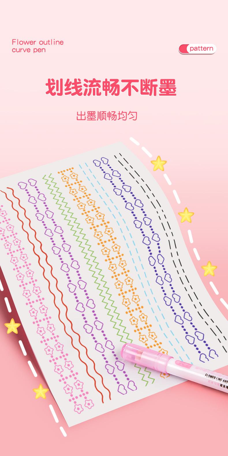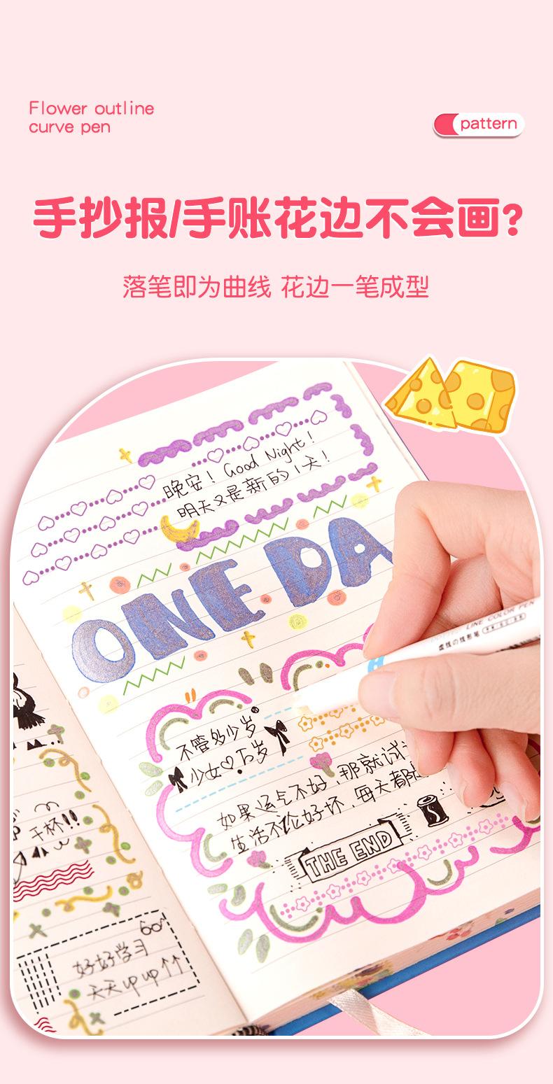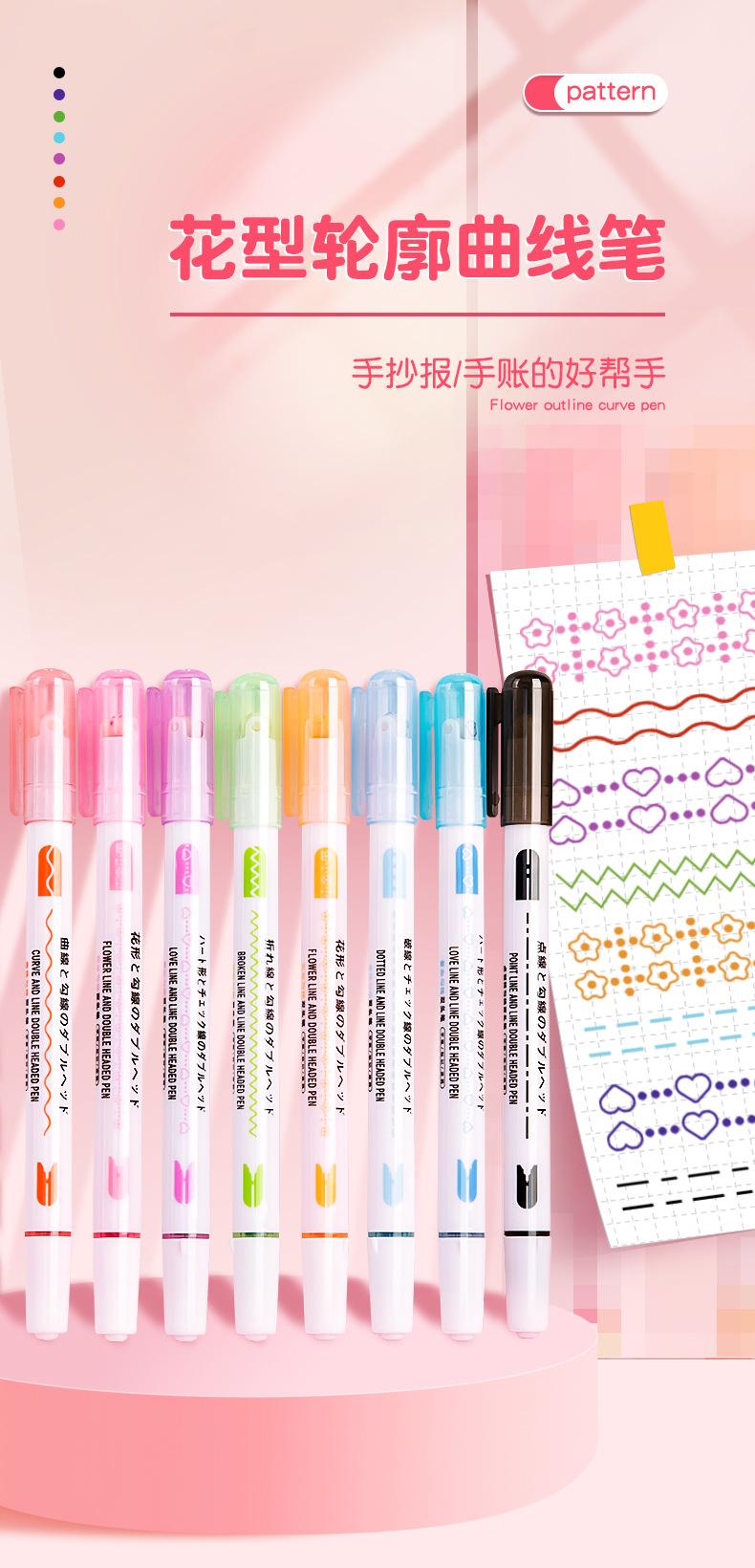 Manual Pluma de Color Curva Periódico Manuscrito Patrón Especial Pluma Contorno Resaltador Marcador de Onda Marca de Estudiante