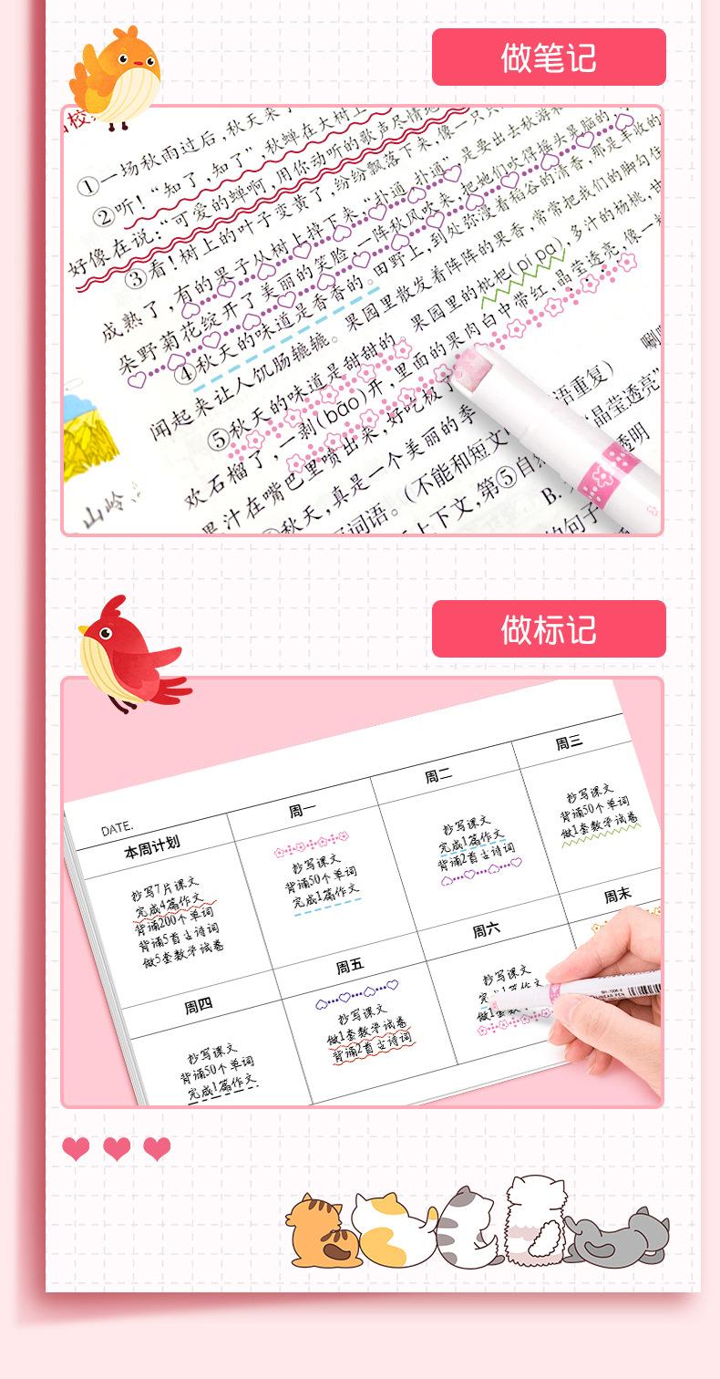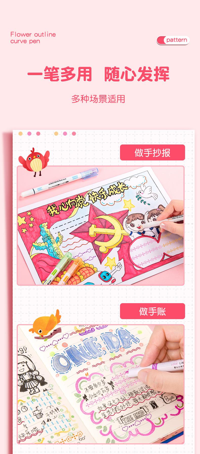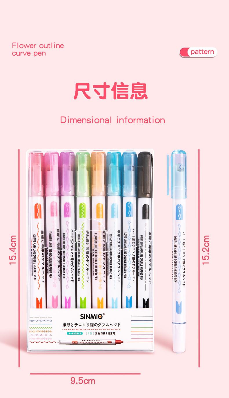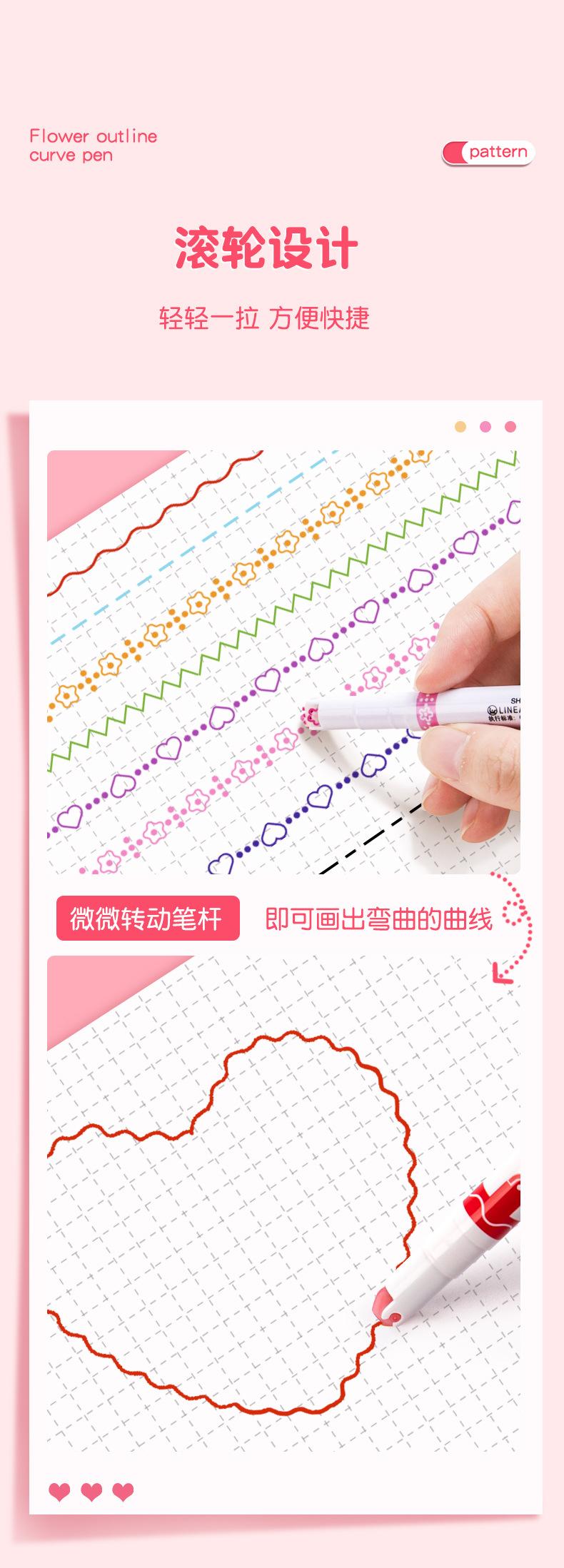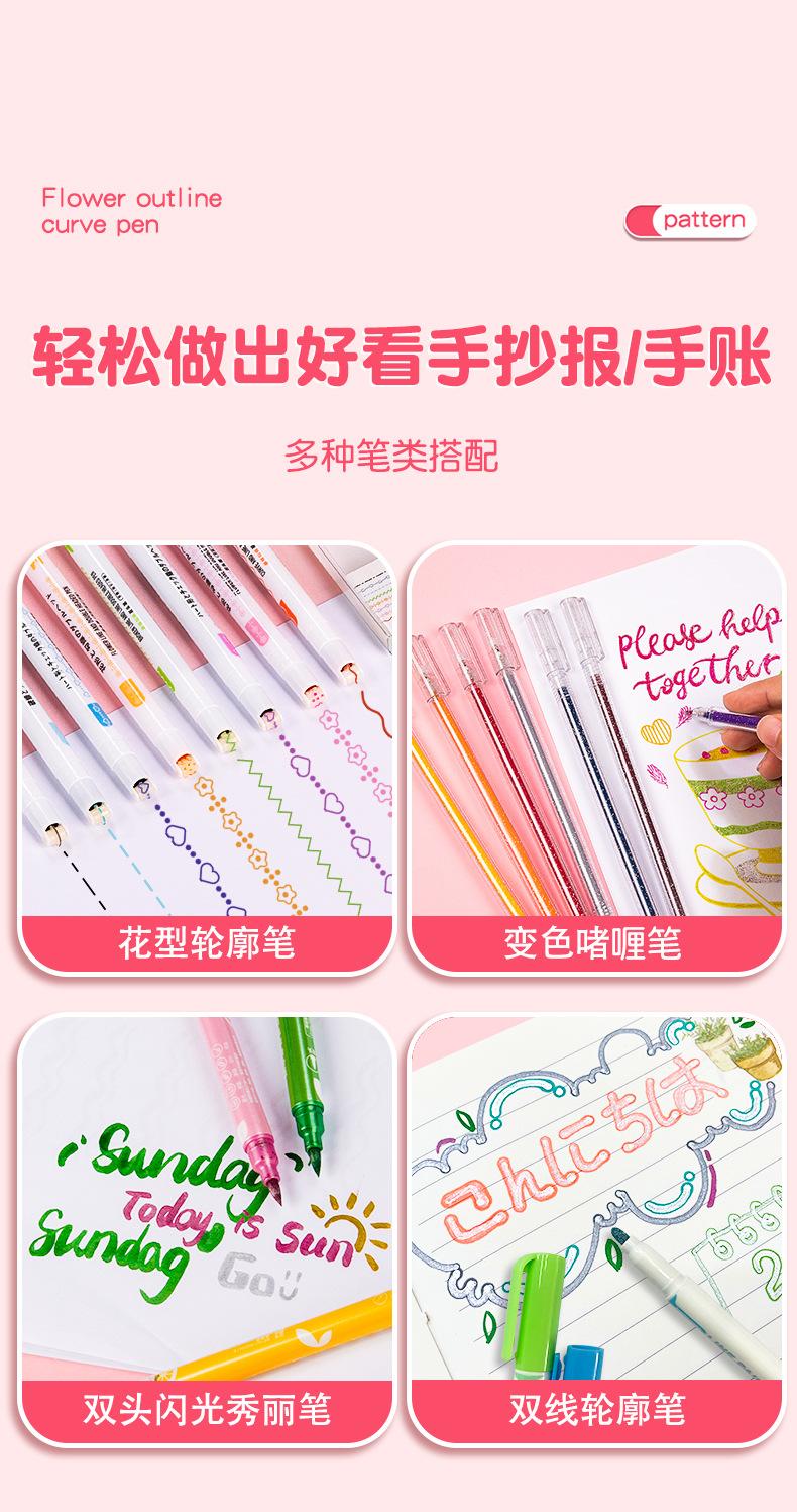 Manual Pluma de Color Curva Periódico Manuscrito Patrón Especial Pluma Contorno Resaltador Marcador de Onda Marca de Estudiante