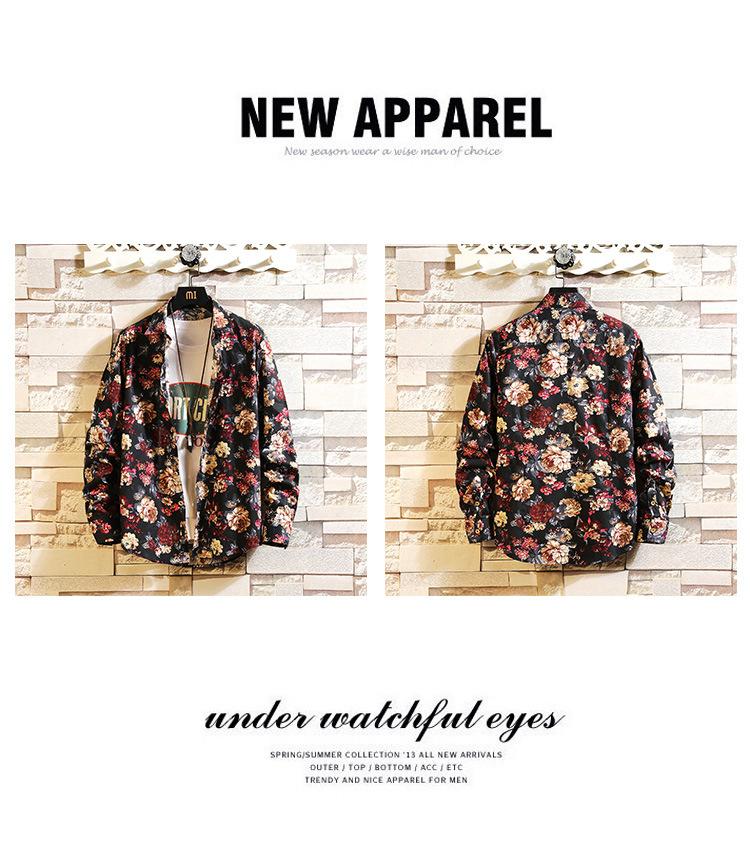 Camisa de Manga Larga Slim Floral Nueva de Primavera 2025 para Hombre Exportación Moda Transfronteriza Casual Talla Grande Estampada Camisa para Hombre
