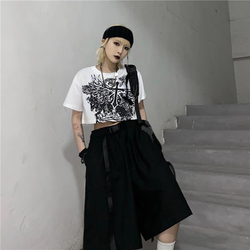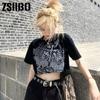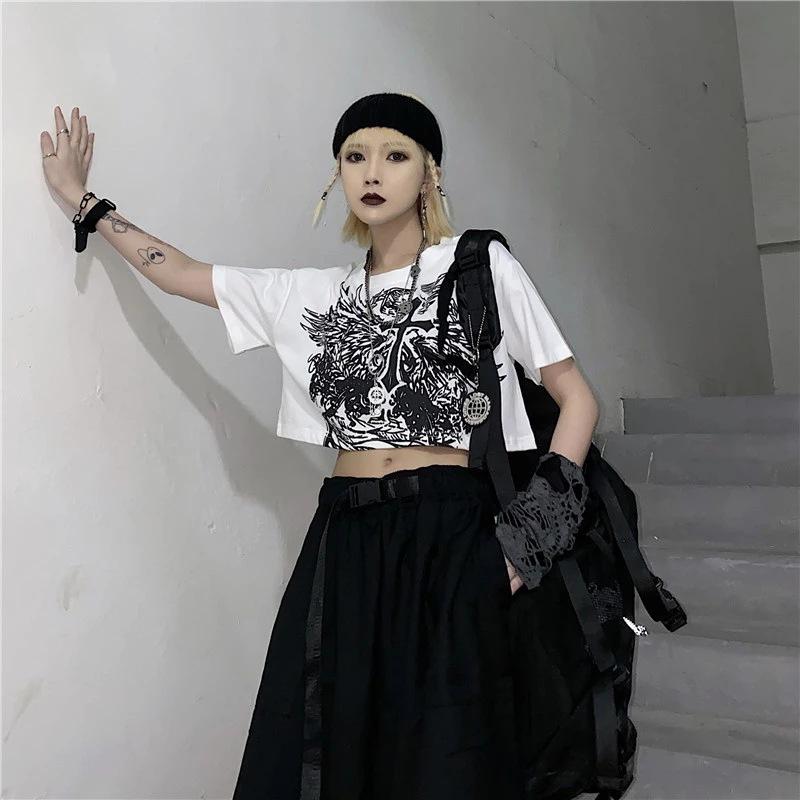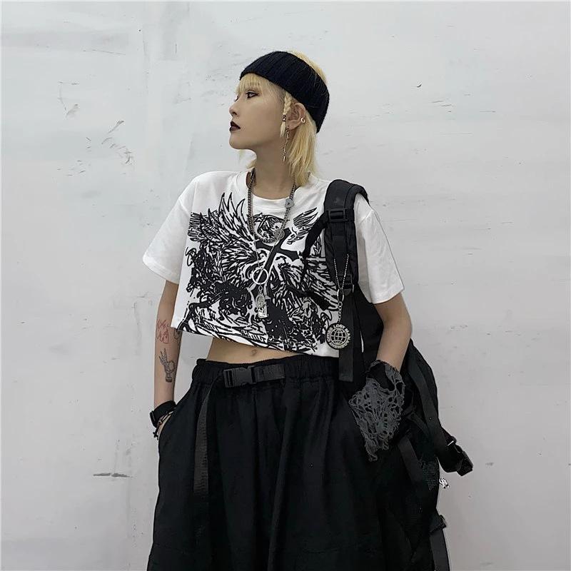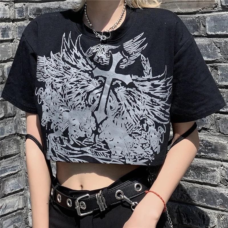 Camiseta con estampado cruzado y ombligo descubierto, estilo Harajuku, personalizada, tendencia de comercio exterior de AliExpress, venta al por mayor
