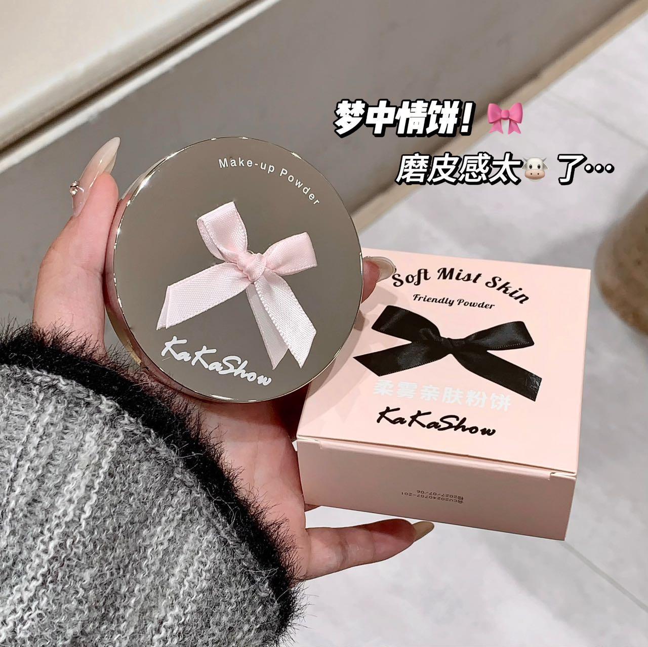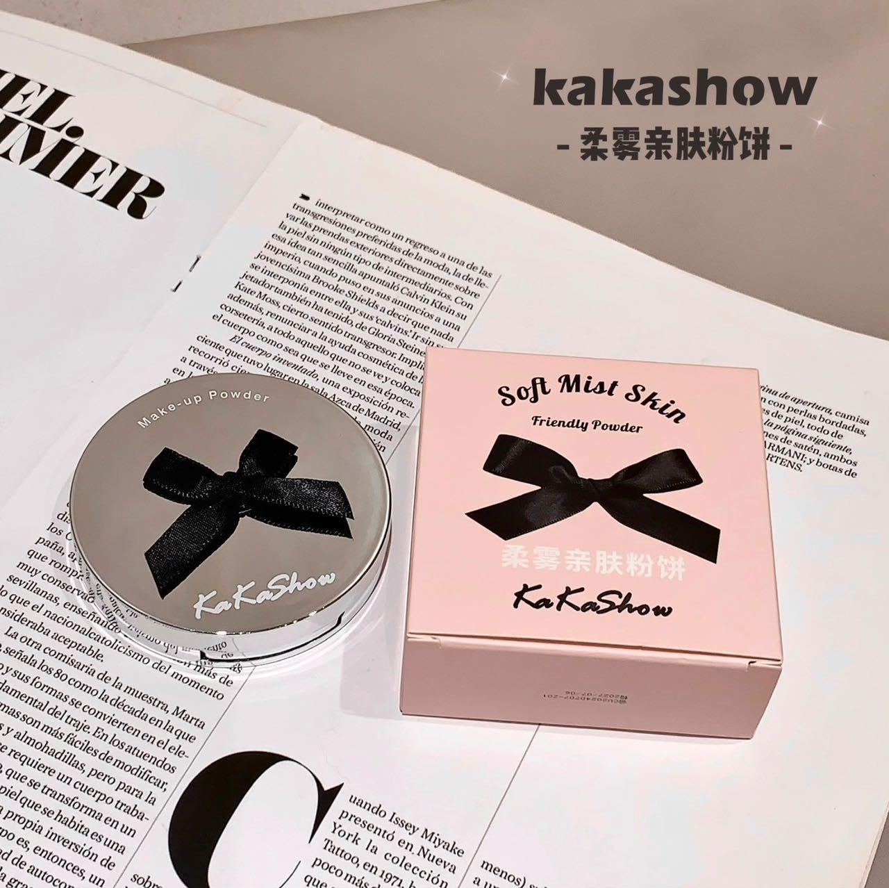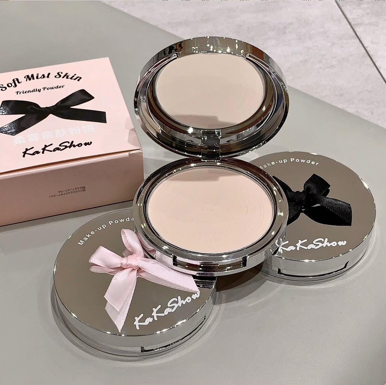 Polvos en polvo Kakashow Soft Mist, suaves y agradables para la piel, control de grasa, maquillaje duradero, cuero natural, resistente al agua, no se decolora, acabado mate fino.