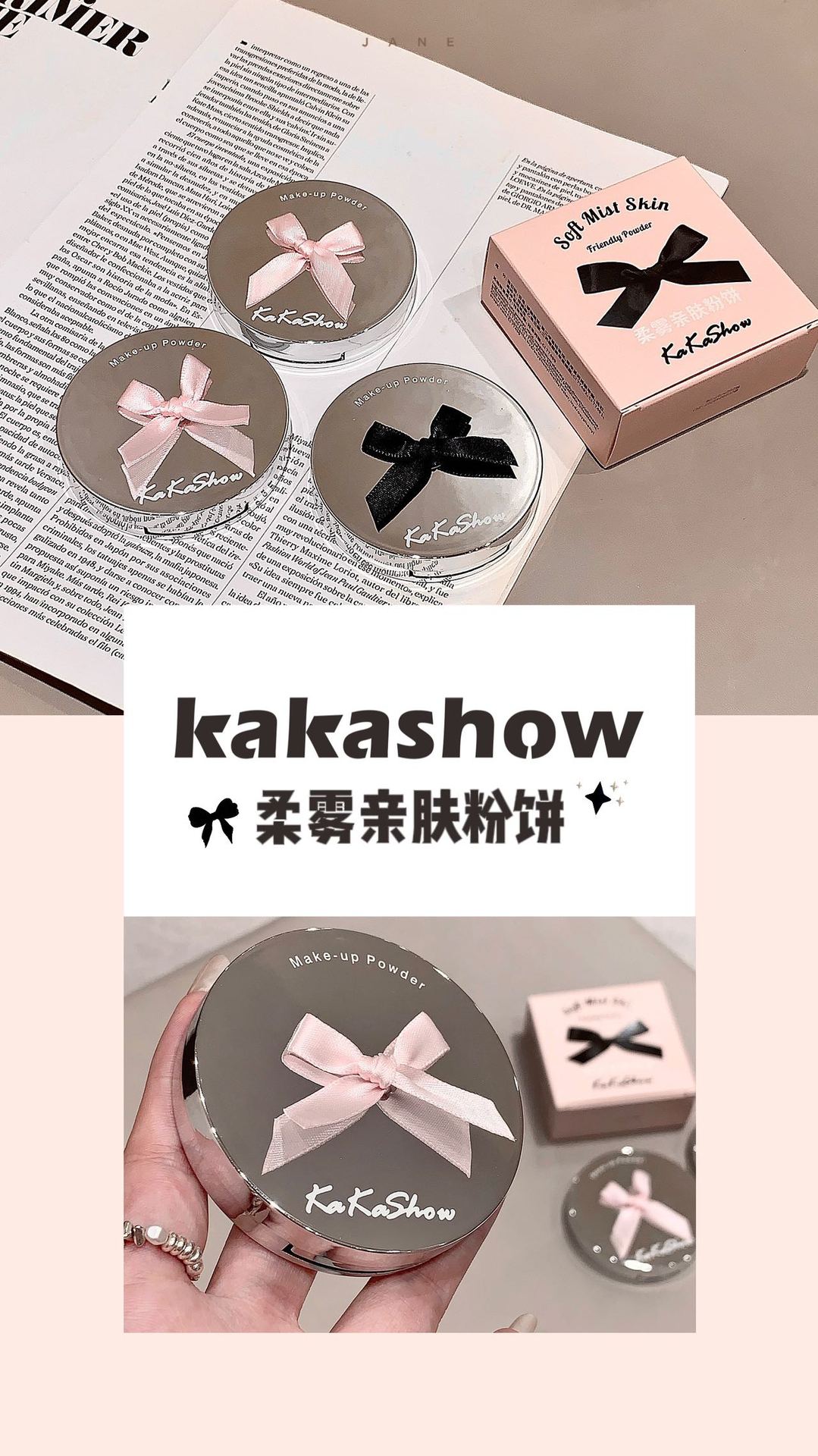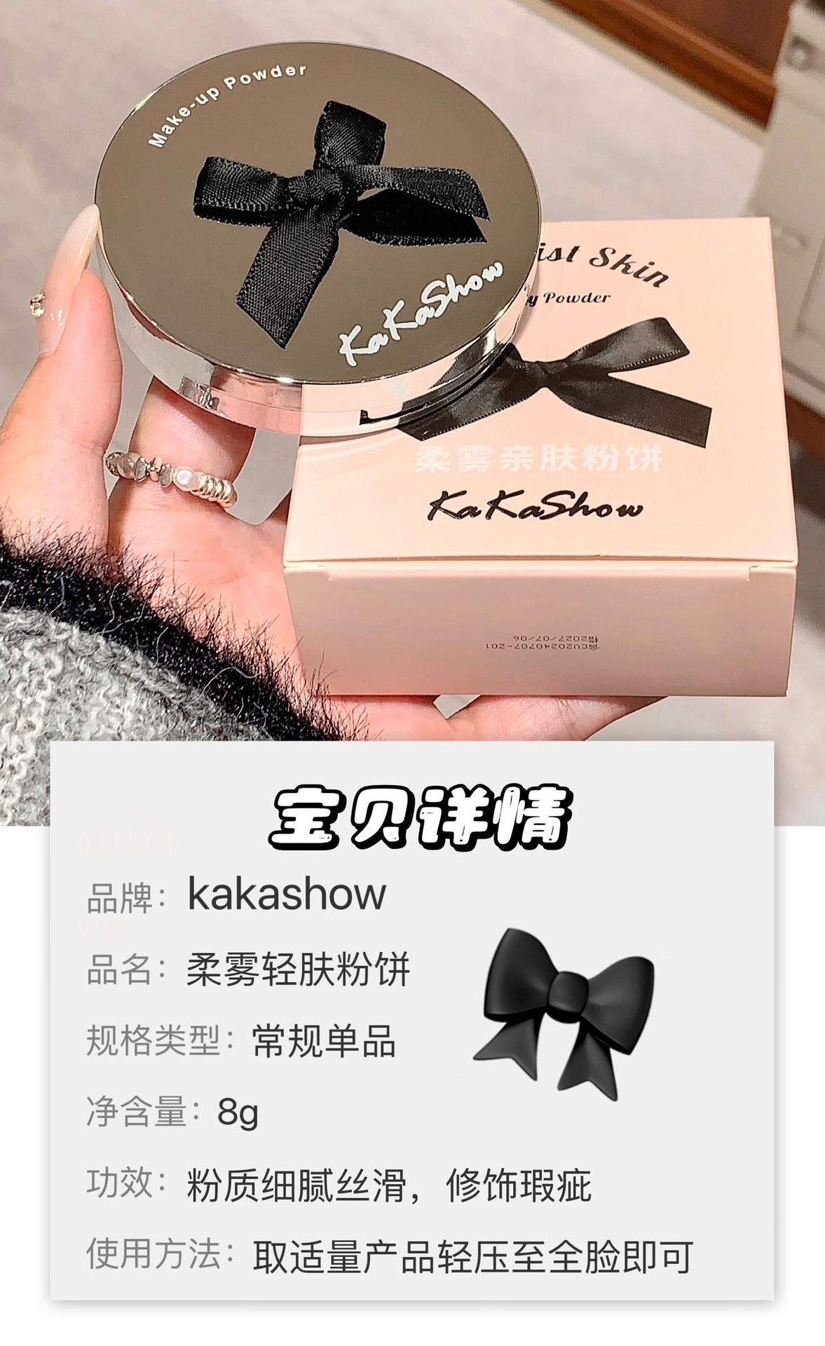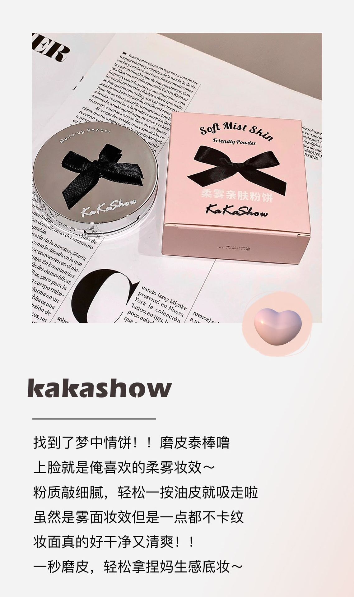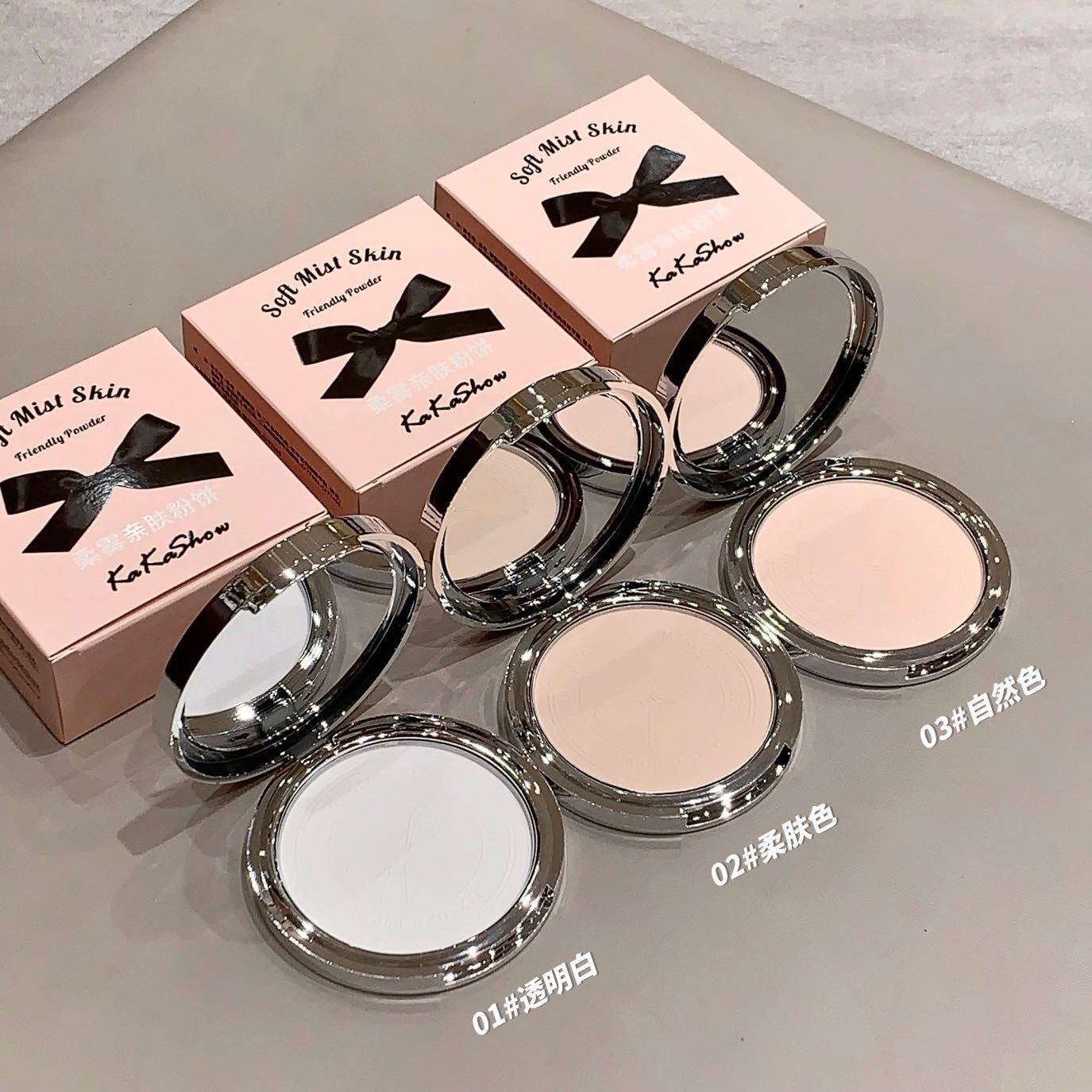 Polvos en polvo Kakashow Soft Mist, suaves y agradables para la piel, control de grasa, maquillaje duradero, cuero natural, resistente al agua, no se decolora, acabado mate fino.