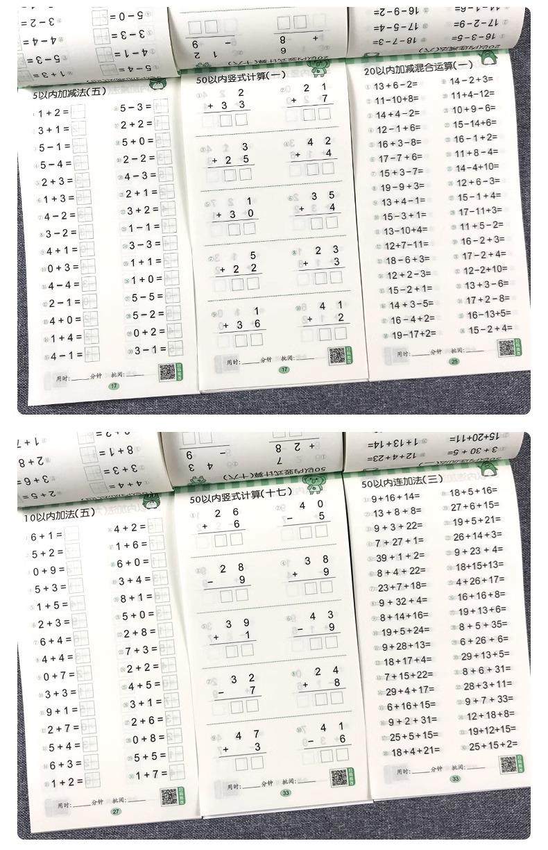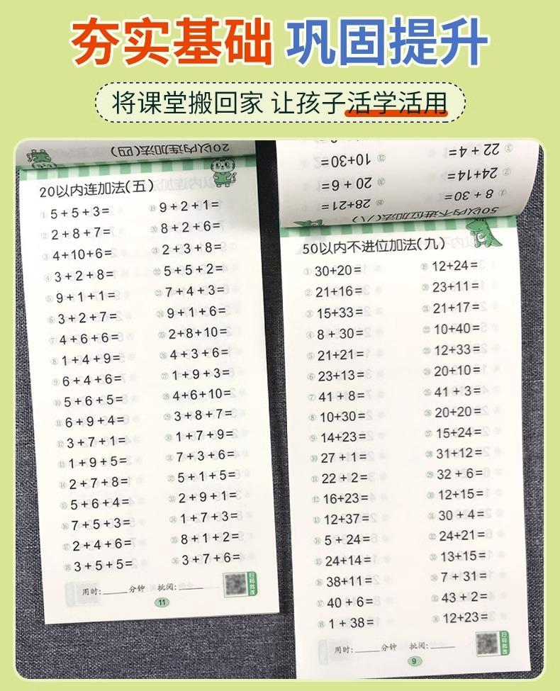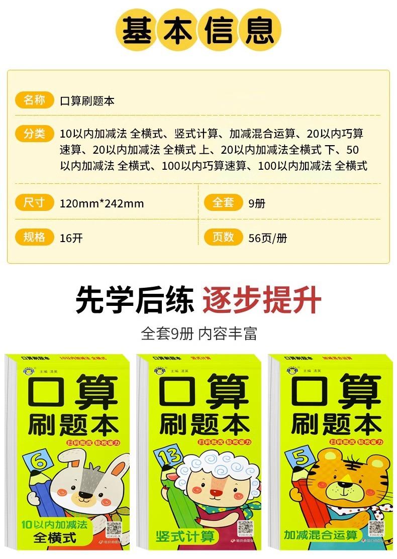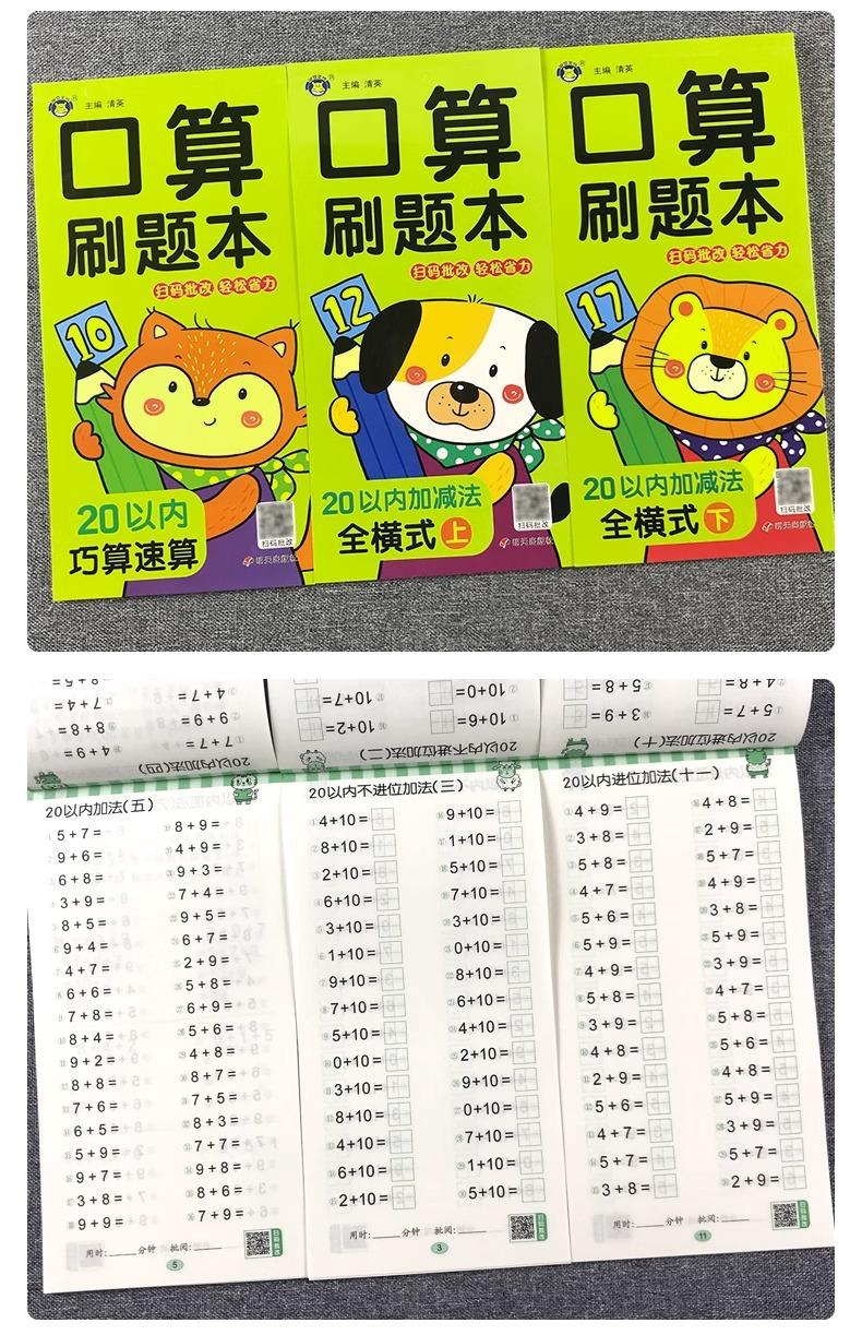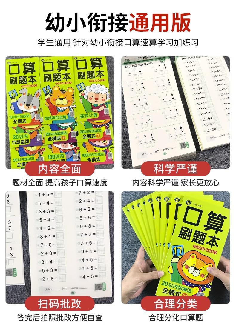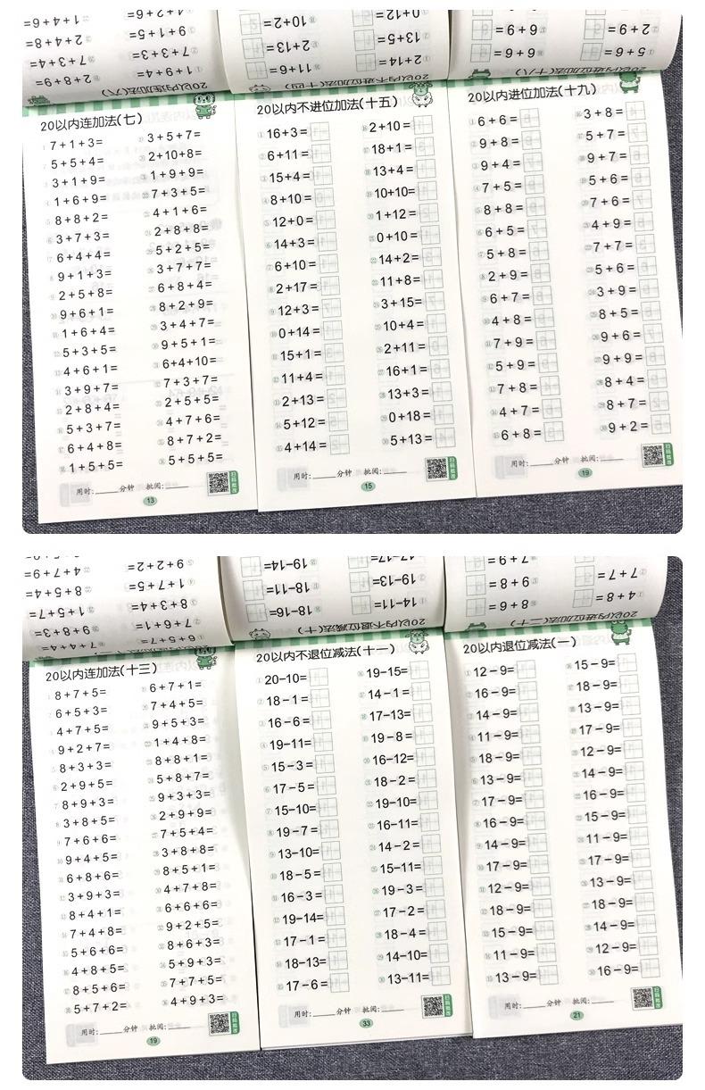 All 9 volumes of oral arithmetic questions, Addition and subtraction within 20, full horizontal upper and lowe...