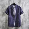 2024 Nueva Camisa de Manga Corta a Rayas para Hombre Talla Grande Marca de Moda Casual Slim Solapa Camisa para Hombre Venta al por Mayor