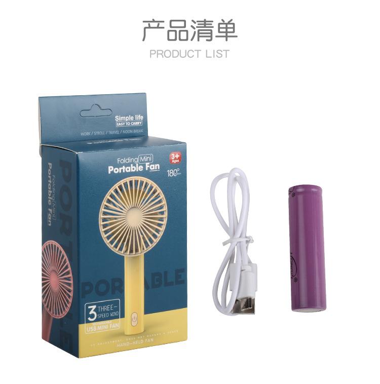 Nombre del producto: Ventilador pequeño recargable plegable de mano con 3 velocidades Embalaje del producto: Caja de color