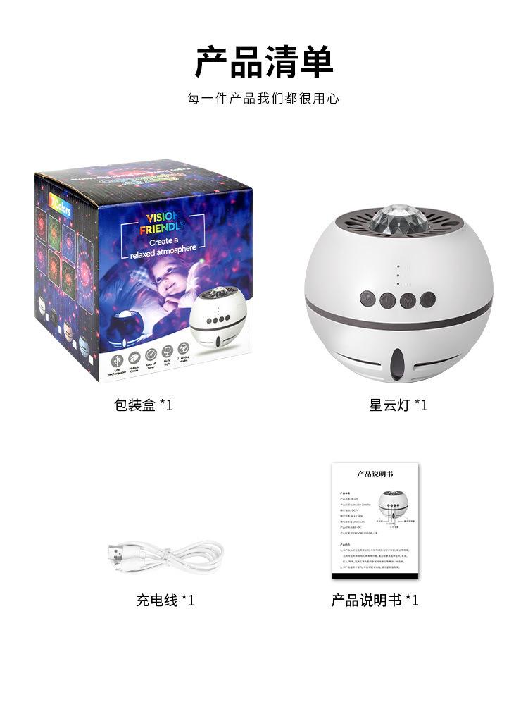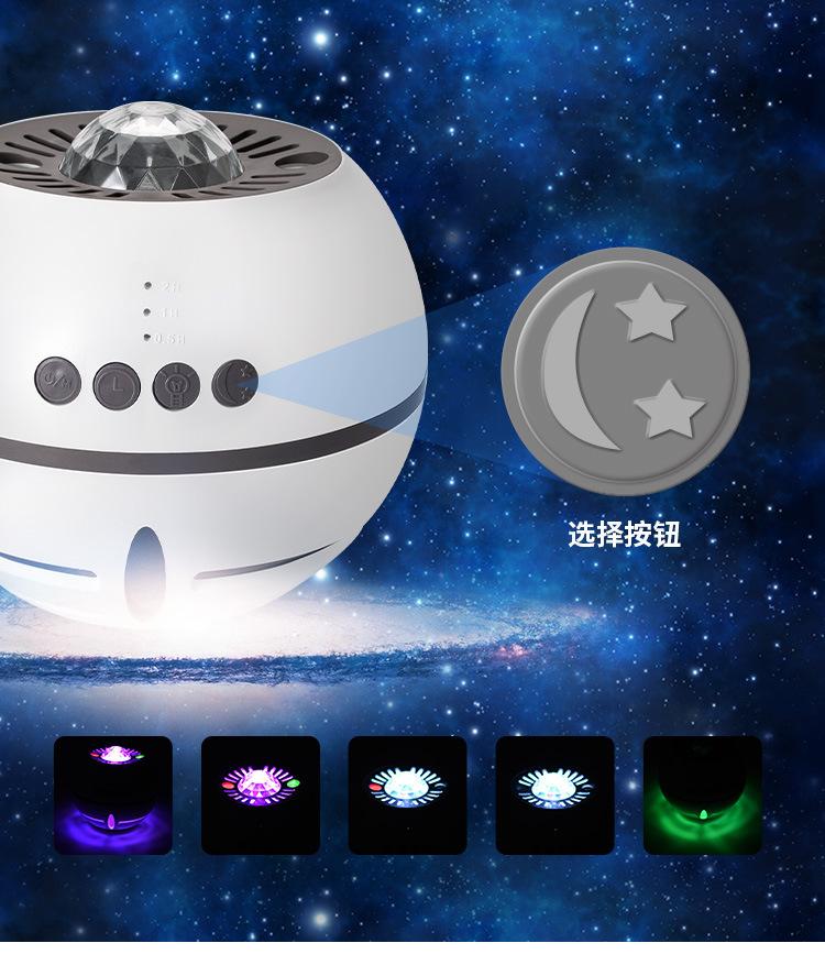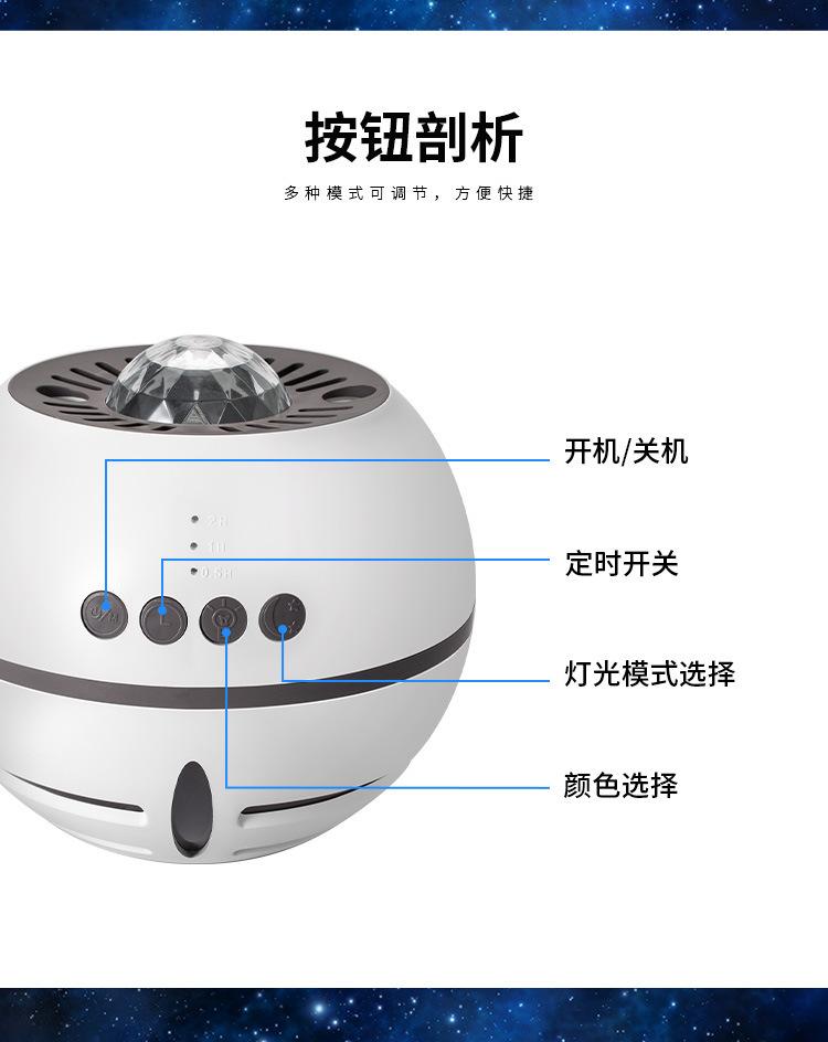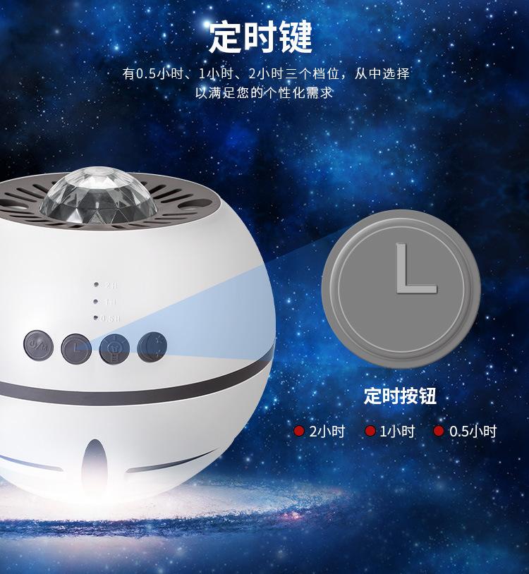 2Este producto es una lámpara de estrella recargable, que no solo imita los efectos de las estrellas y las nebulosas en el cielo nocturno, sino que también tiene funciones como temporizador y efectos de iluminación ambiental. Al presionar botones, puede seleccionar temporizador, estrellas, nebulosas, efectos especiales, iluminación ambiental, etc. para agregar un color diferente a su dormitorio, estudio, sala de estar, etc.