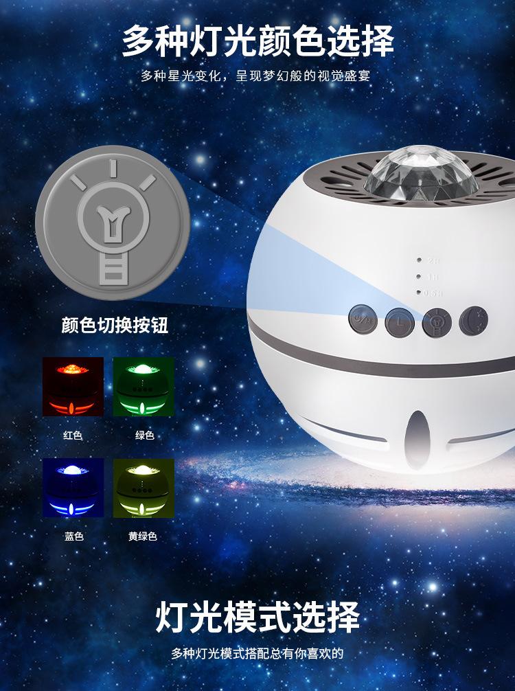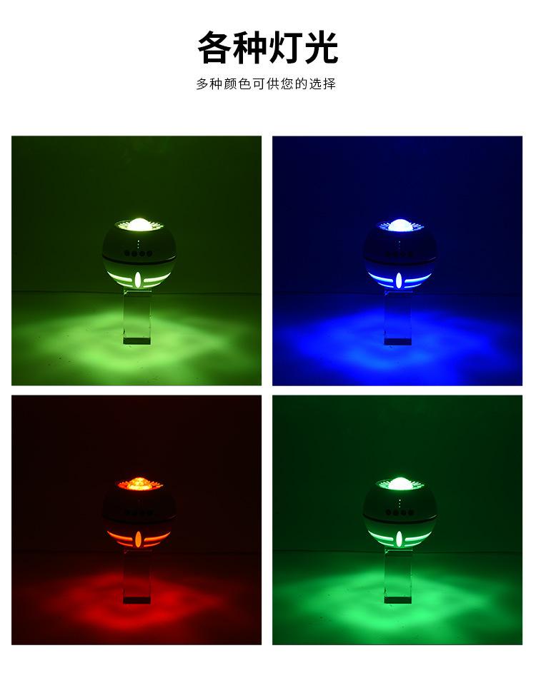 ③Botón de luz: Después de encender el producto, este botón se utiliza para controlar el color de la nebulosa y las luces de ambiente. El color del juicio se puede controlar en cualquier estado cuando ambas funciones están encendidas o solo una de las funciones está encendida.,ParaR-G-B-RG-RB-GBEspere a que los colores cambien repetidamente.