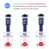Probador de calidad del agua 5 en 1: El medidor de pH digital monitorea TDS, pH, salinidad, CE y temperatura. Rango de medición de TDS: 0-1000 ppm, CE: 0-10000 US/cm, pH: 0,01-14,00 pH, salinidad: 0,00-25,00 % y función de conversión de temperatura.
