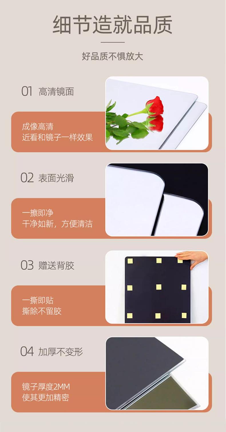 Espejo Acrílico Suave HD al por Mayor para Pared Autoadhesivo sin Perforaciones Redondo Maquillaje Baño Piezas Pequeñas