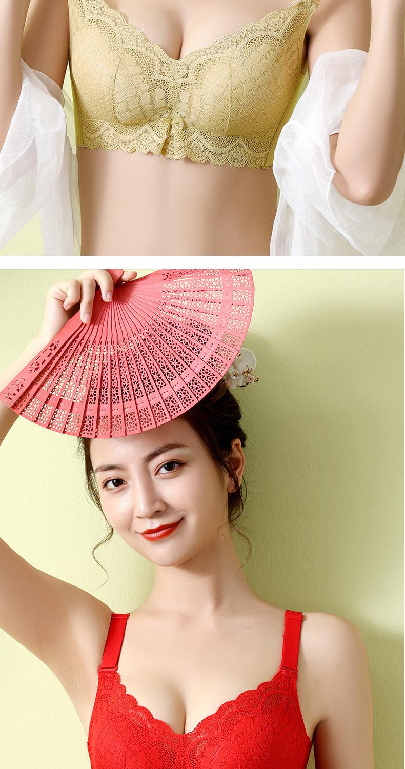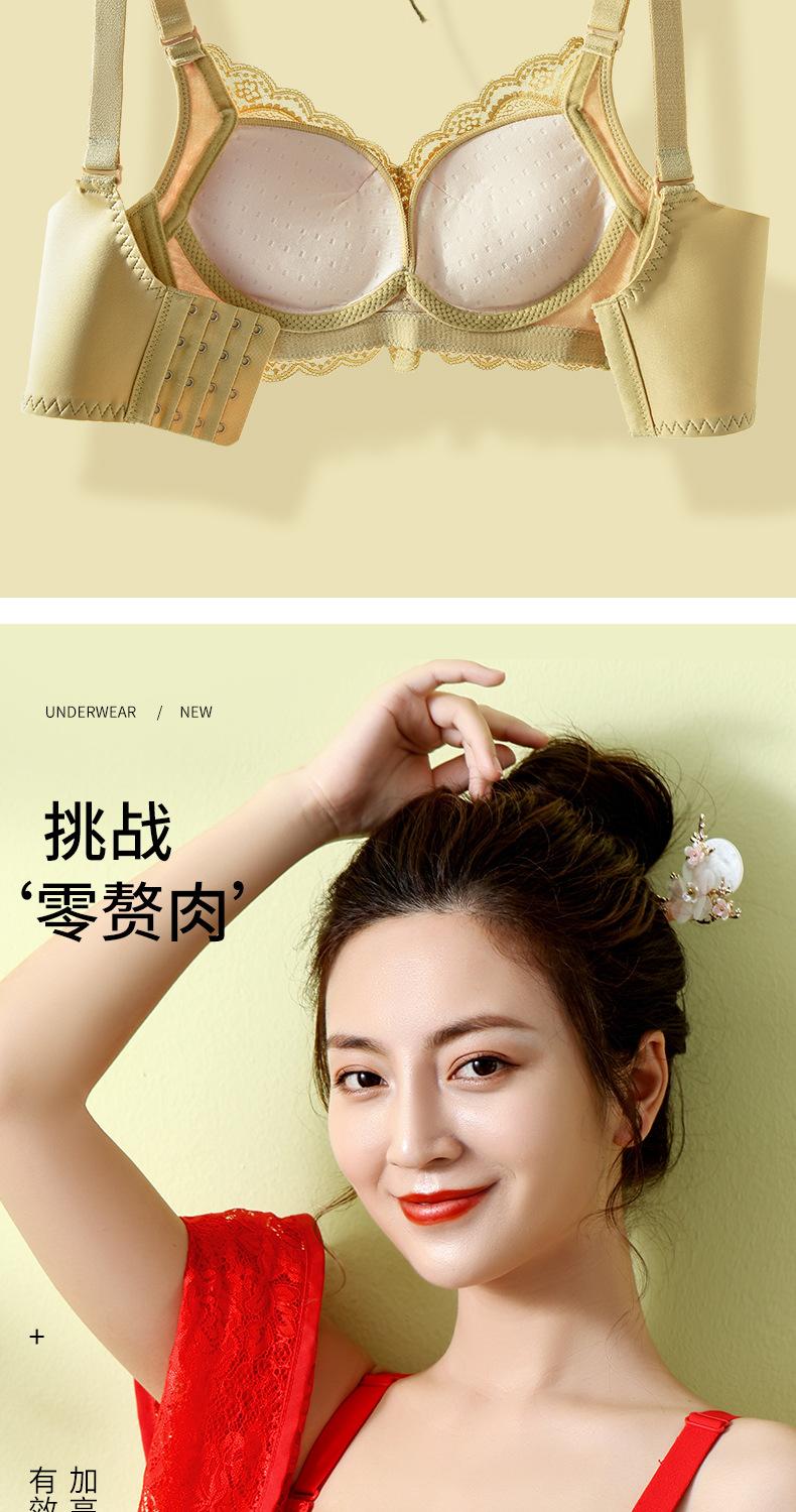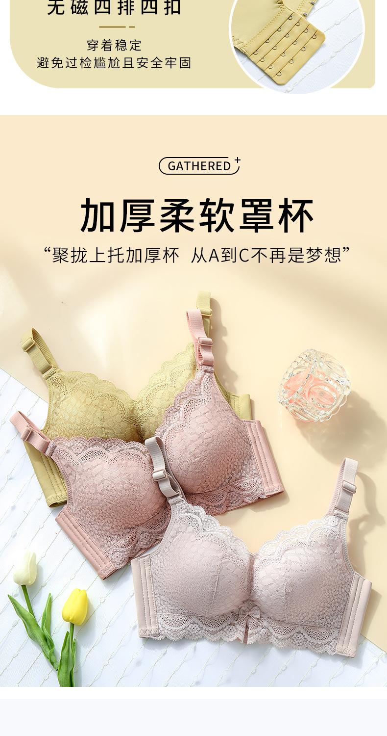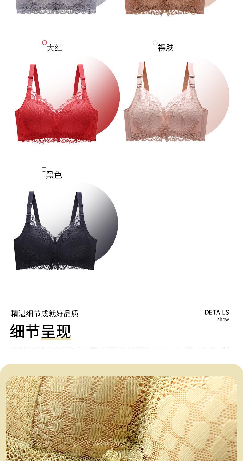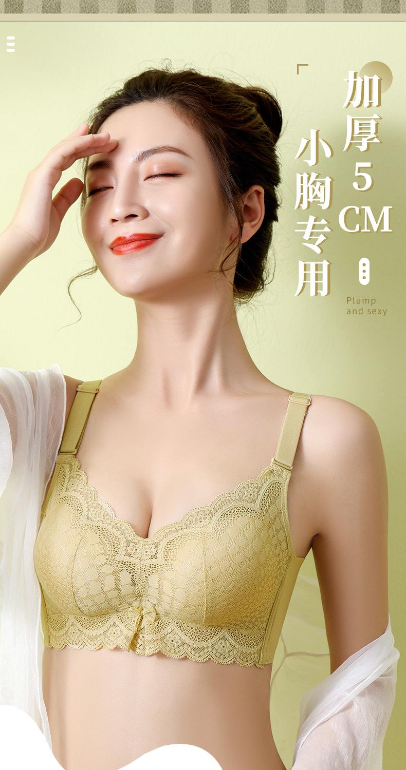 Ropa interior de mujer elegante de encaje sexy con pecho pequeño engrosado y colección de pechos grandes, sujetador push up ajustable sin aro de acero