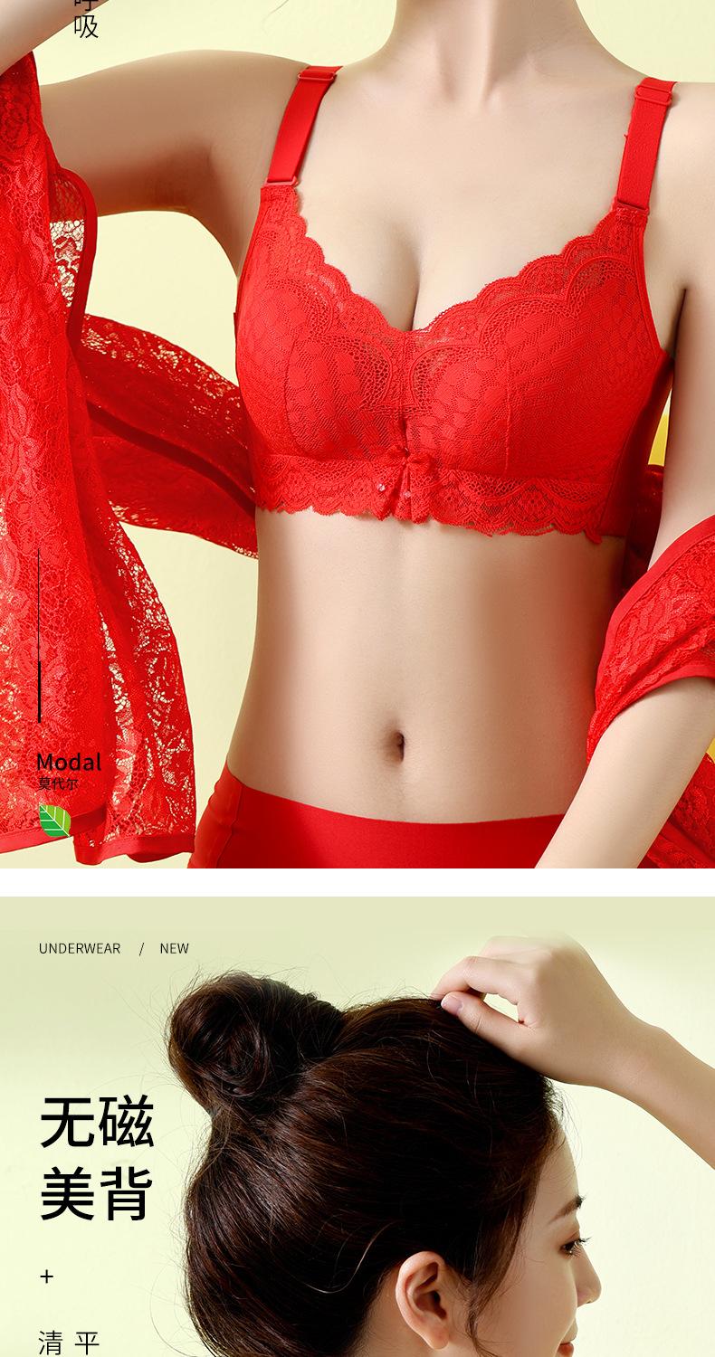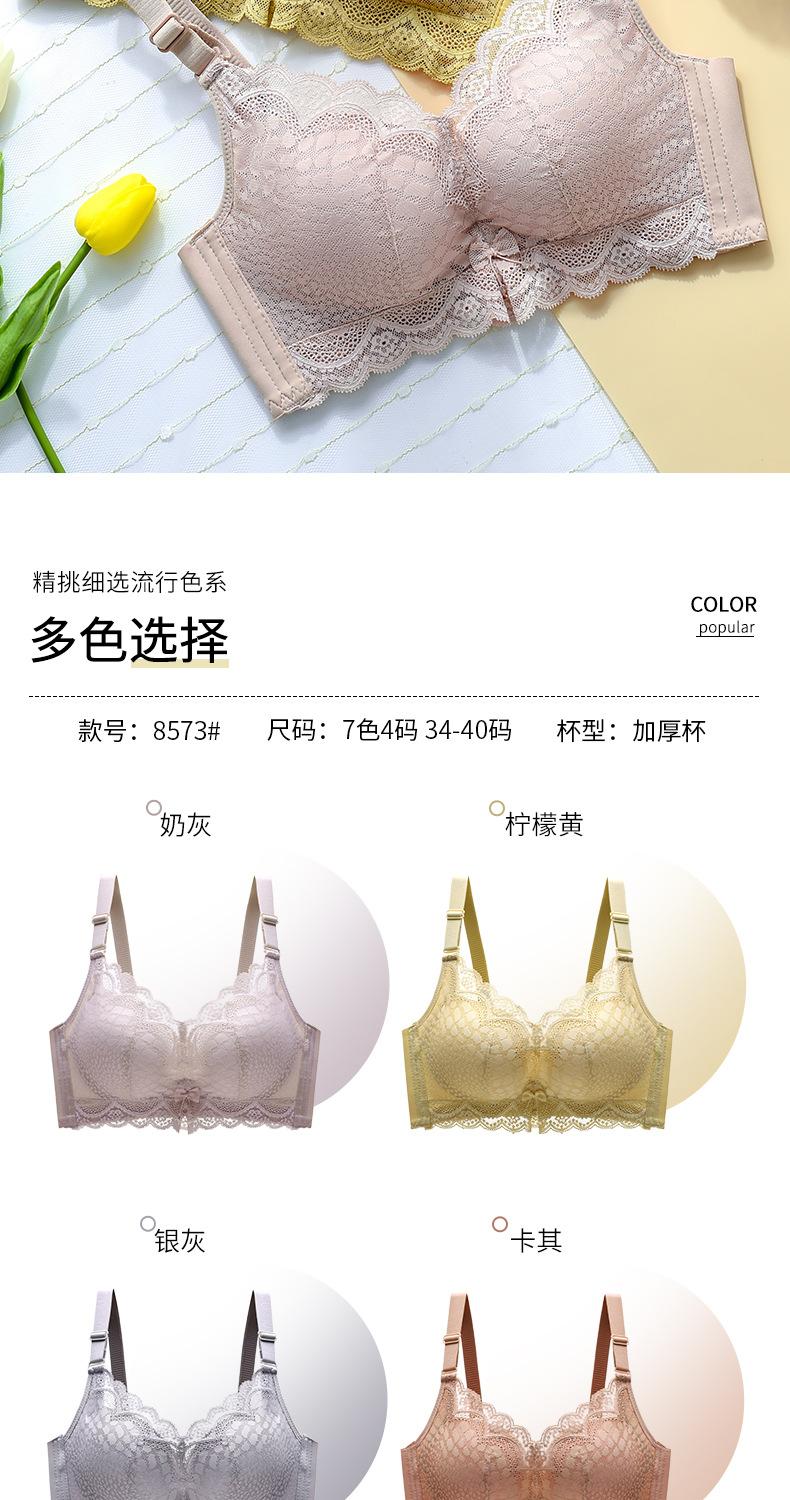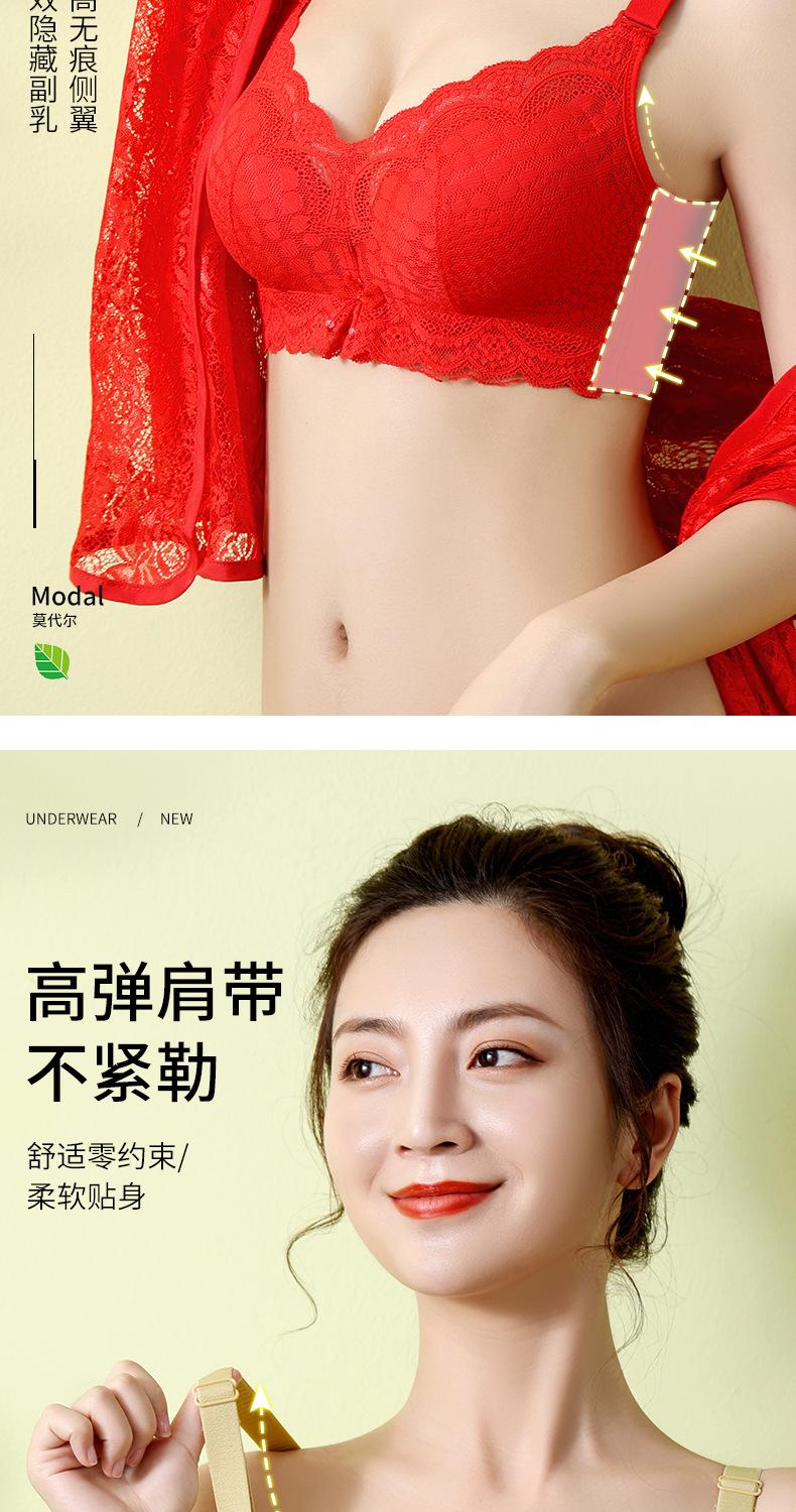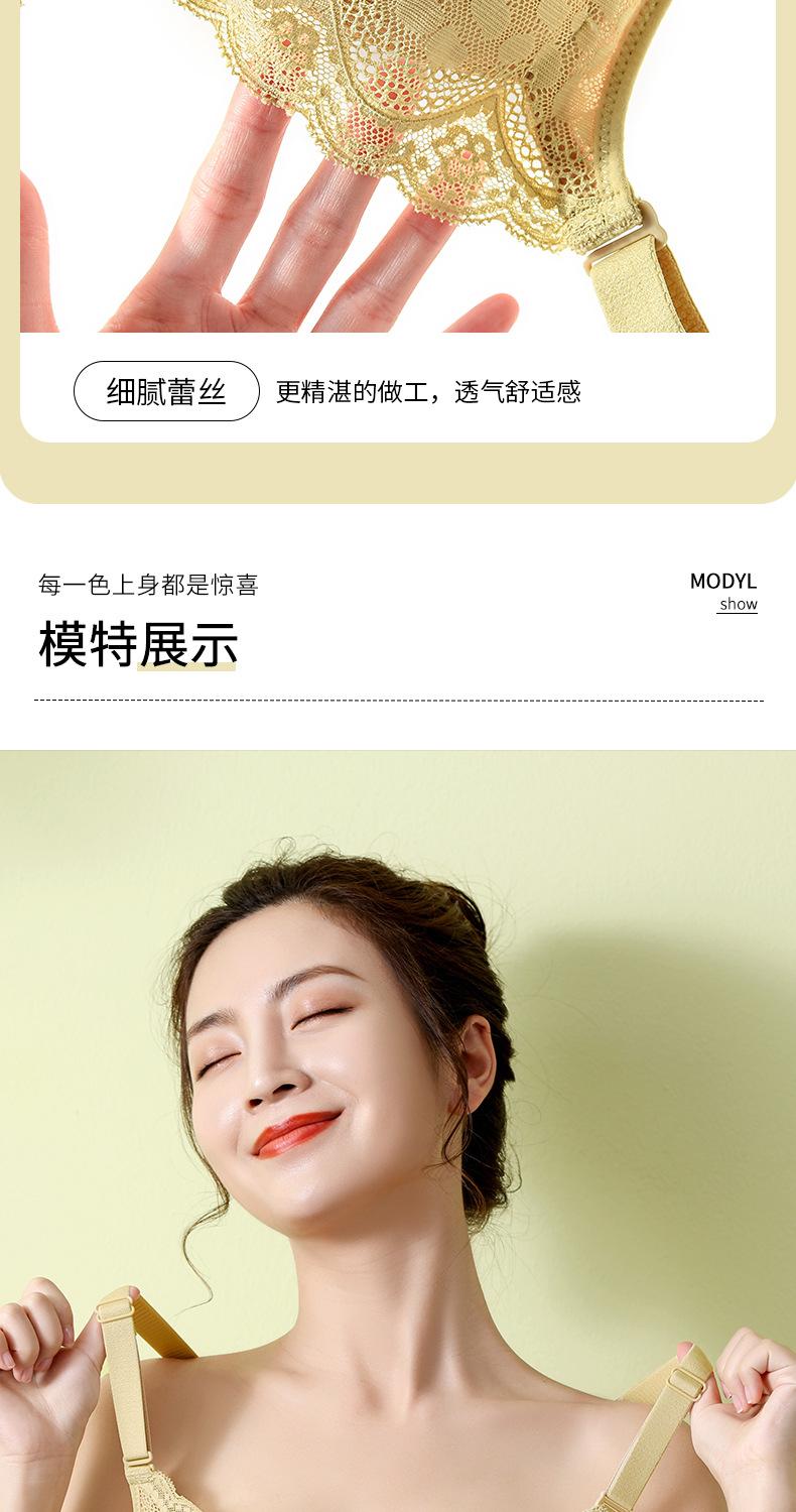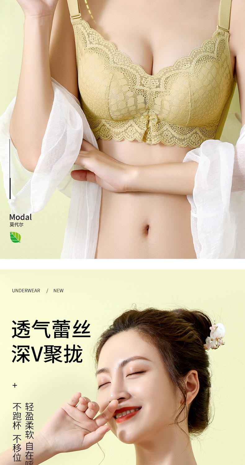 Ropa interior de mujer elegante de encaje sexy con pecho pequeño engrosado y colección de pechos grandes, sujetador push up ajustable sin aro de acero