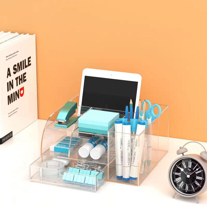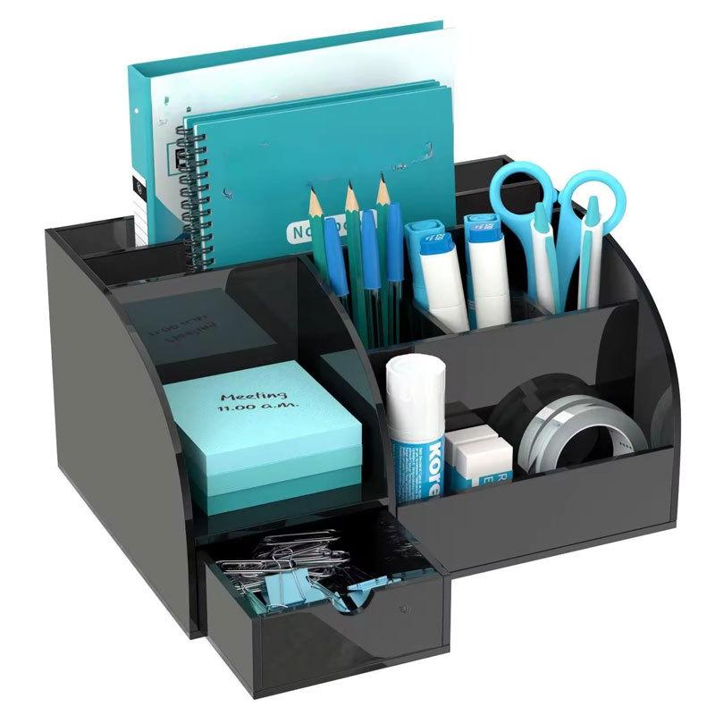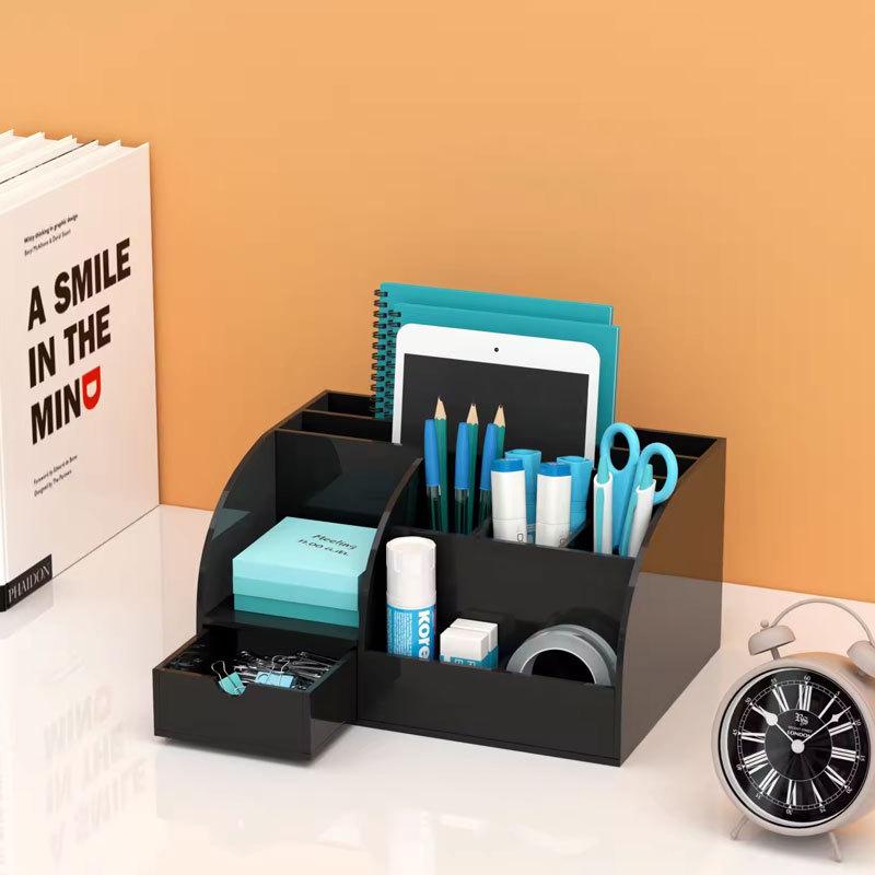 Compra Caja de almacenamiento de oficina de acrílico al por mayor, transparente y en blanco y negro, con 8 compartimentos, para escritorio, papelería, libros y archivos. al por mayor en Joom.pro