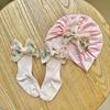 Gorro de bebé de primavera y otoño, gorro para recién nacido, gorro para bebé niña, bonito gorro fetal sin hueso con lazo bordado