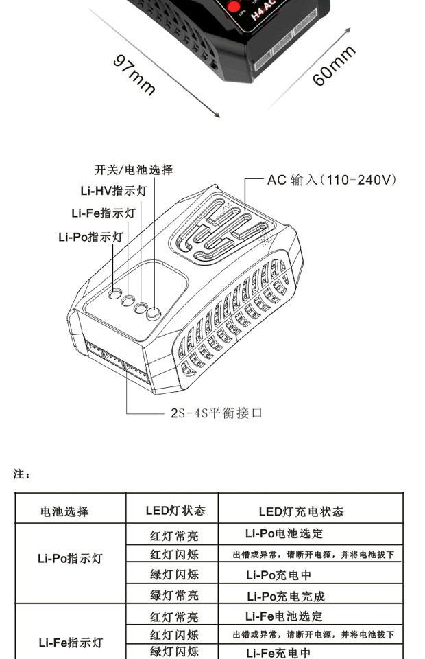 El cargador de batería de litio H4AC tiene dos estilos: