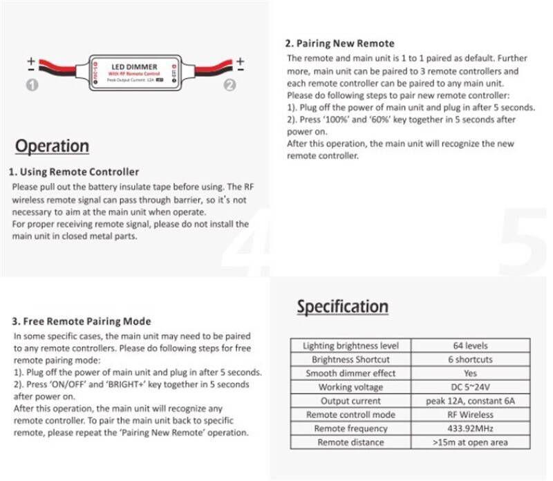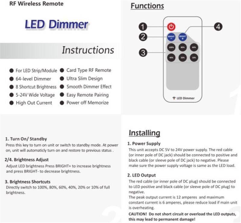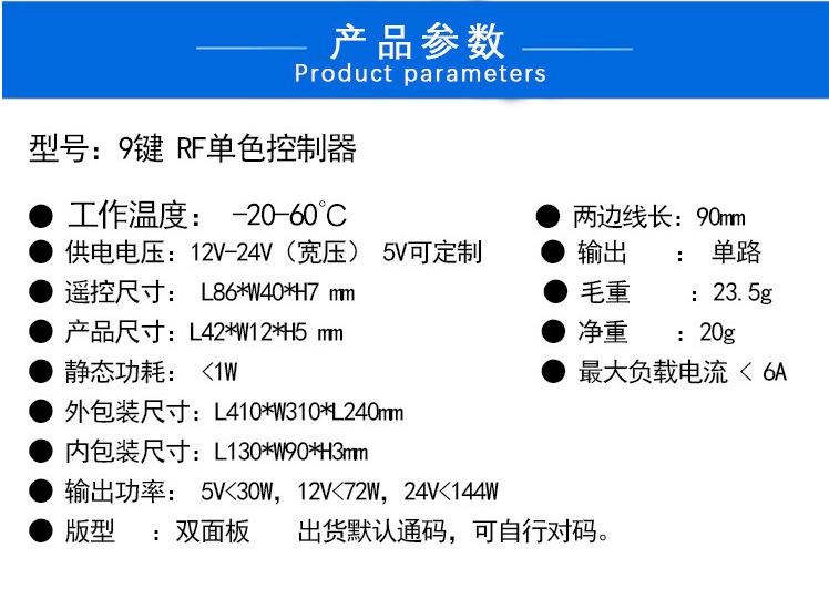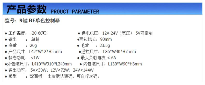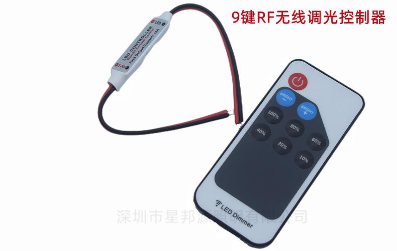Control Remoto Inalámbrico RF de 9 Teclas Controlador de Tira de Luz LED Monocromática Módulo Dimmer de Tira de Luz LED Monocromática Control de Atenuación