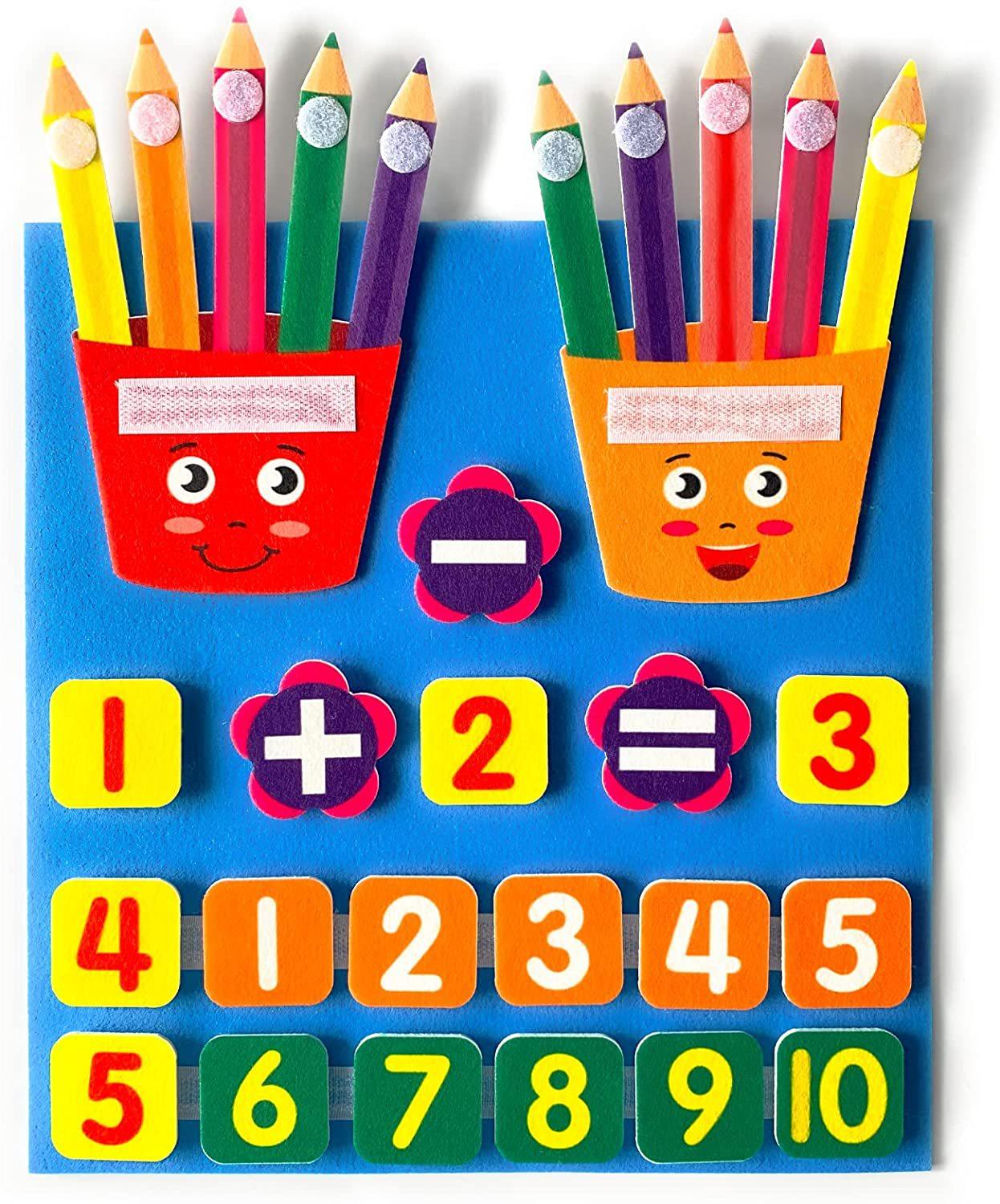 Nuevo material didáctico de fieltro para aprender a sumar y restar con los dedos, para la enseñanza de matemáticas en jardín de infantes, para la enseñanza temprana, tablero digital de fieltro.