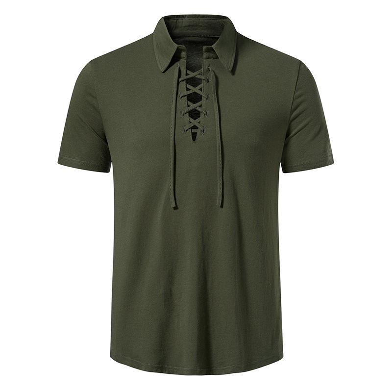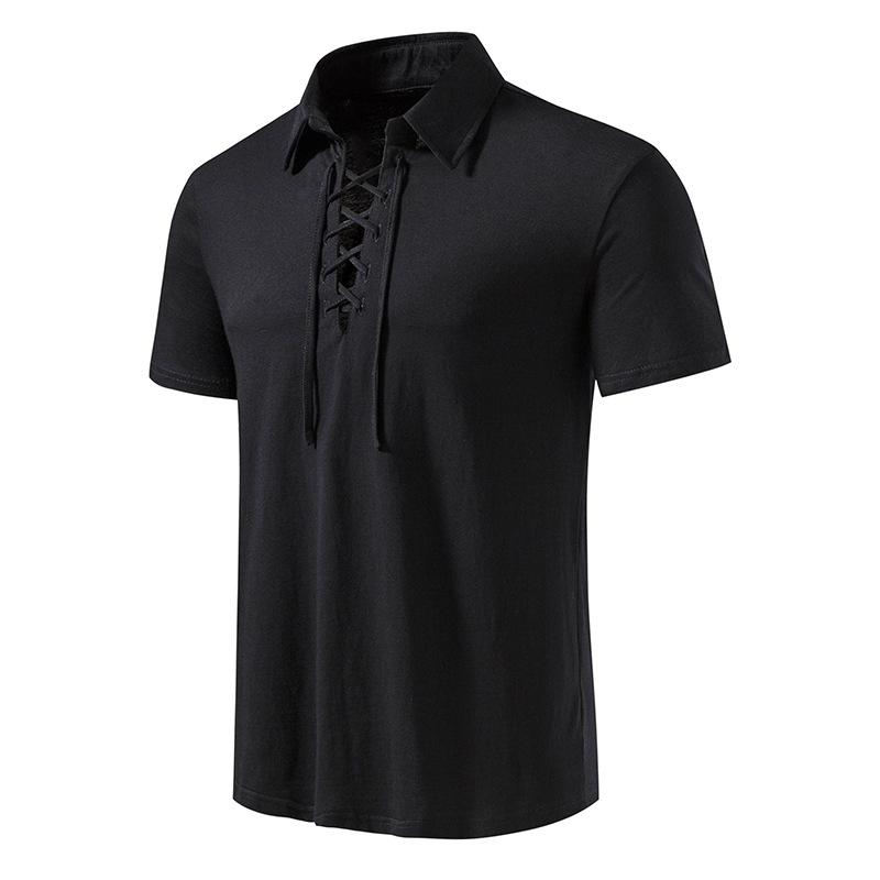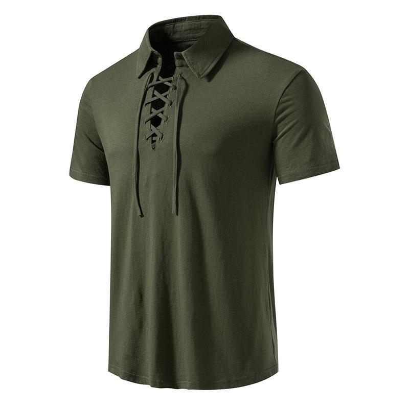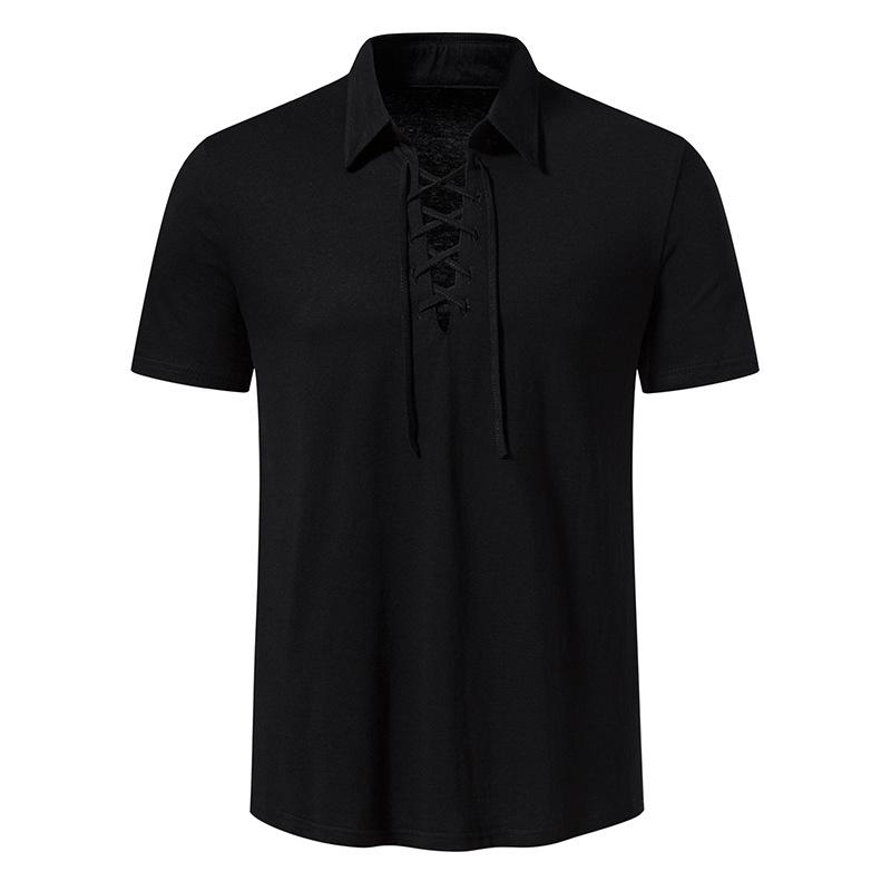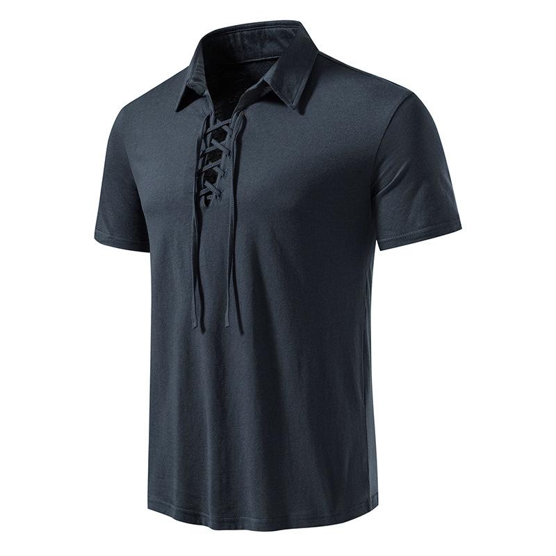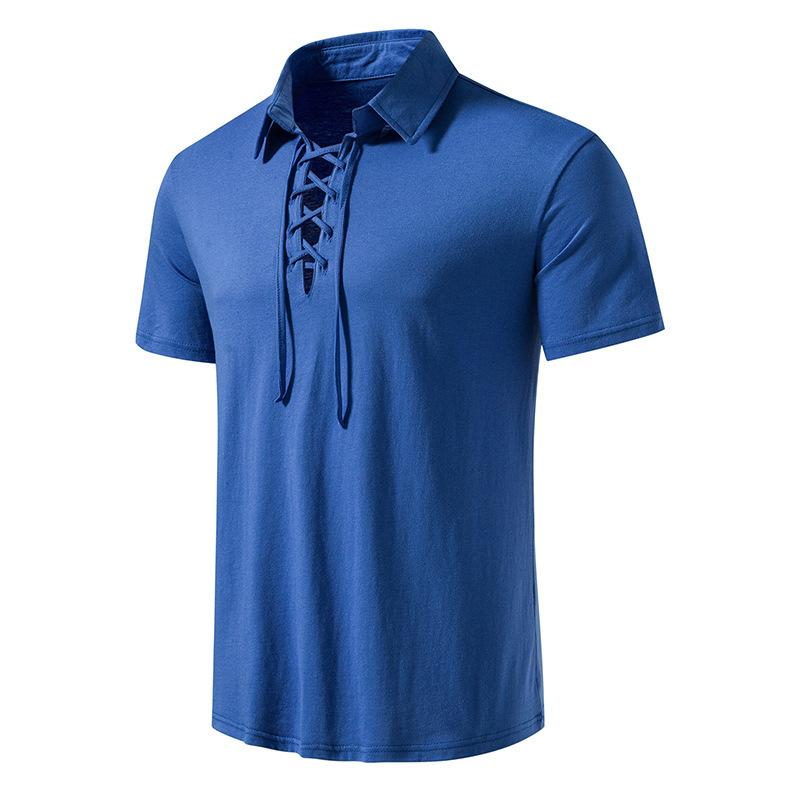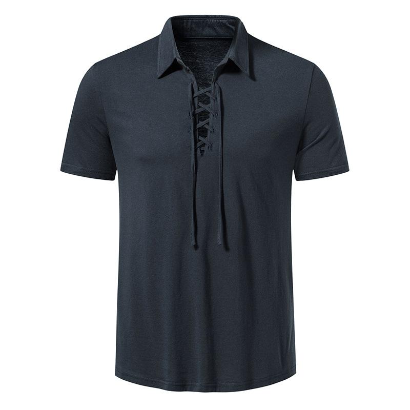 Comercio Exterior Nuevo Amazon Camiseta Casual de Manga Corta con Cuello Henley y Cordón para Hombre Talla Europea Top Deportivo Casual