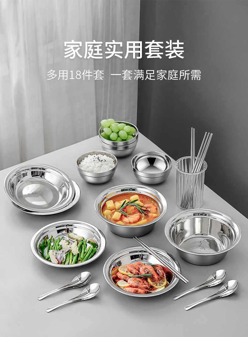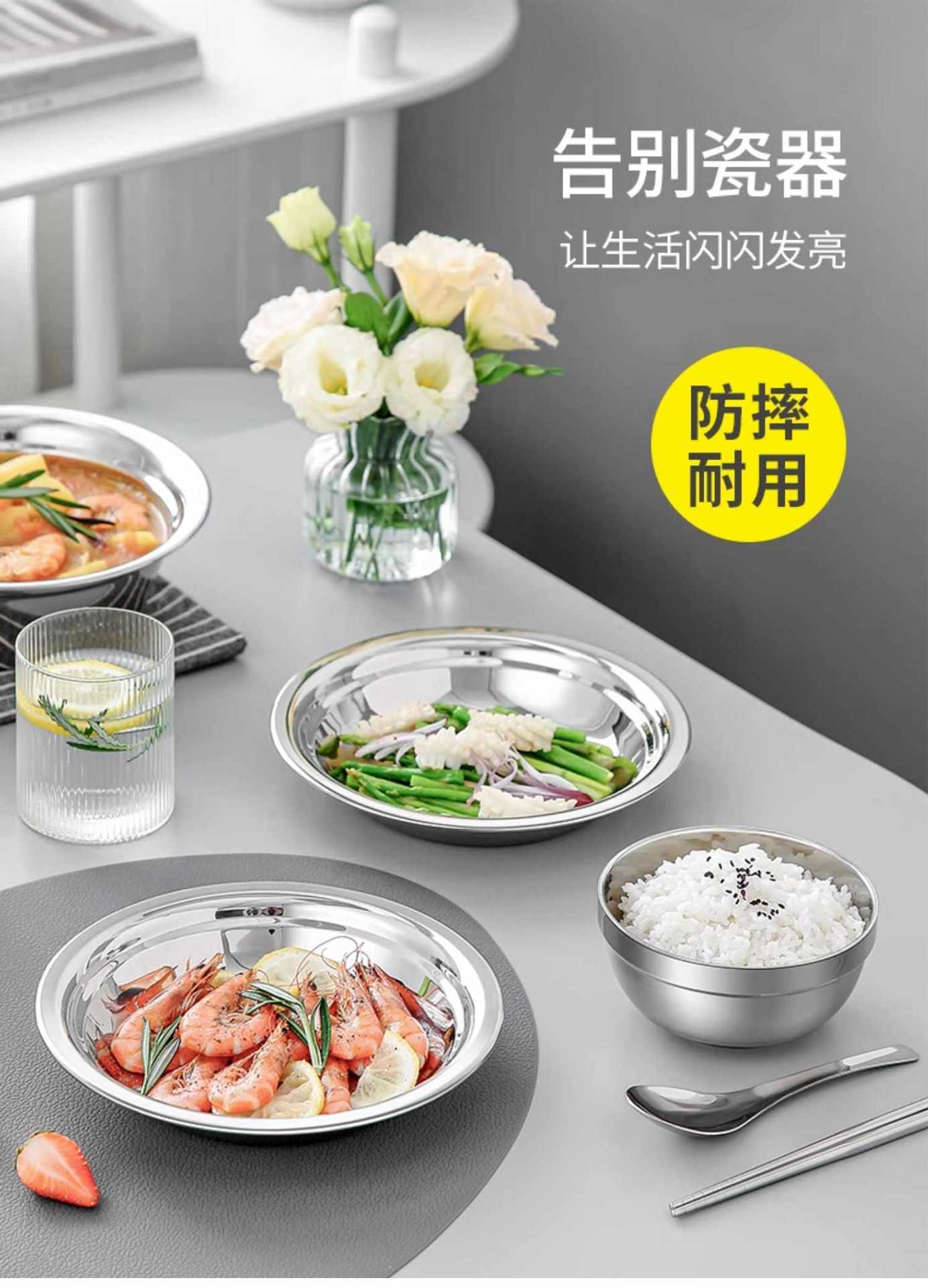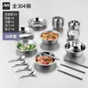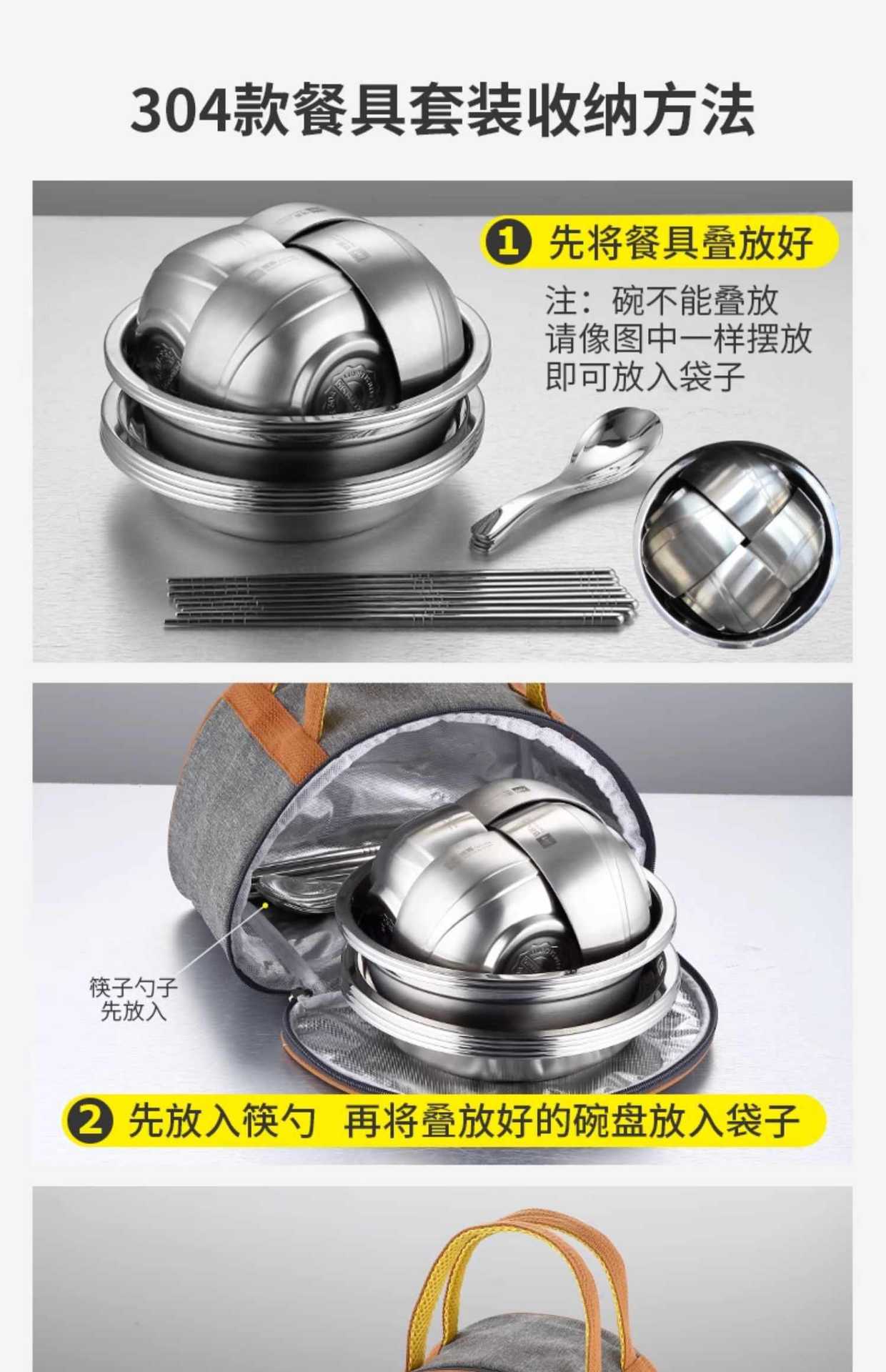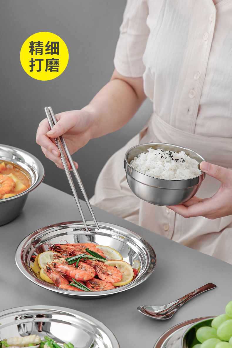 Vajilla de acero inoxidable, cuenco, plato, apto para acampar al aire libre, hogar, cocina, cuenco, plato, cuenco resistente a caídas, palillos, cuchara, cuenco para sopa, combinación