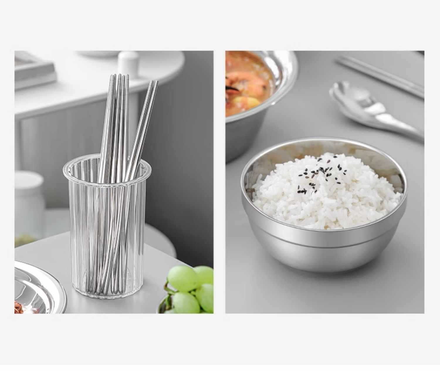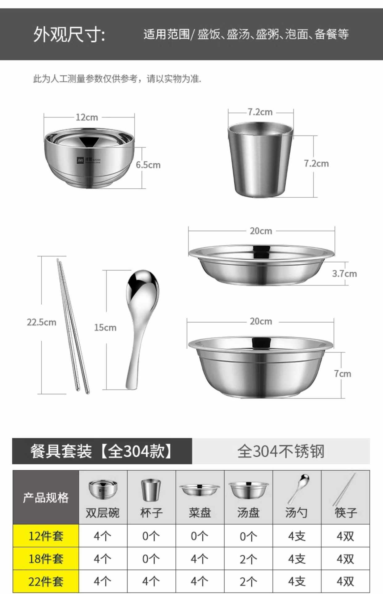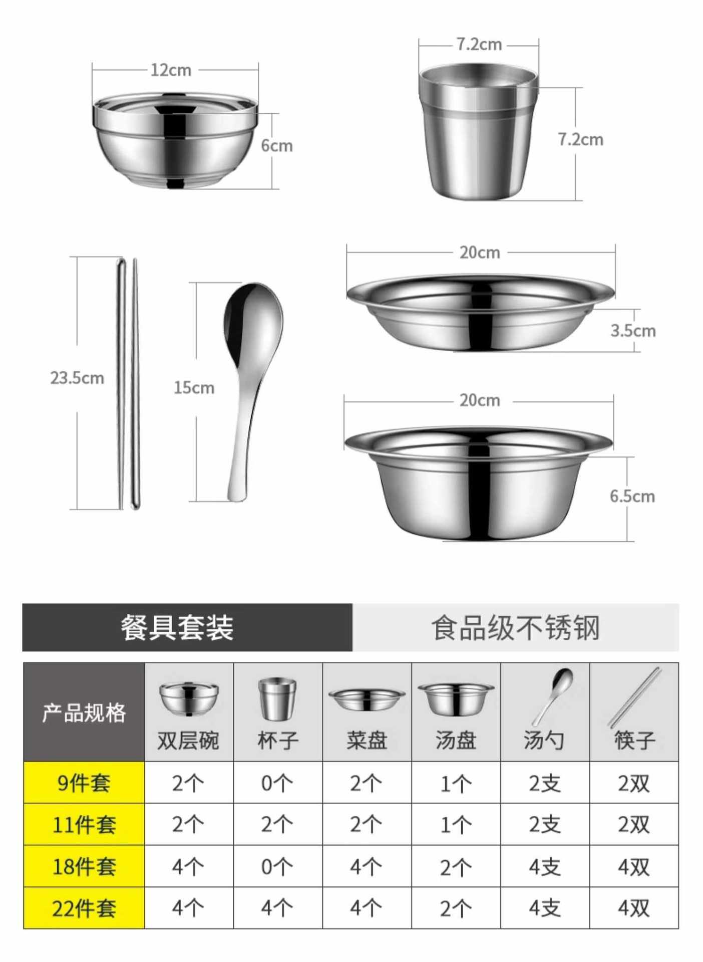 Vajilla de acero inoxidable, cuenco, plato, apto para acampar al aire libre, hogar, cocina, cuenco, plato, cuenco resistente a caídas, palillos, cuchara, cuenco para sopa, combinación