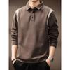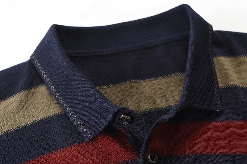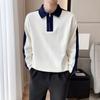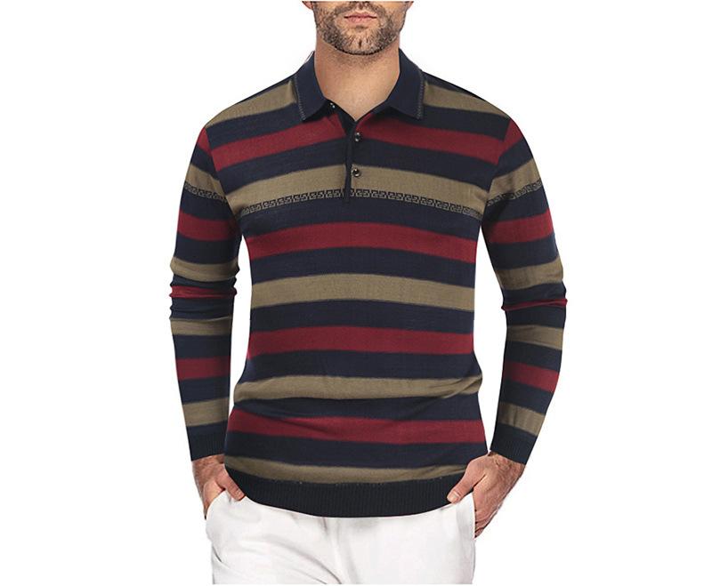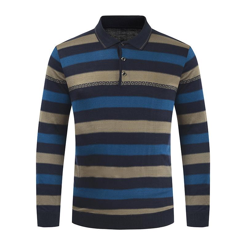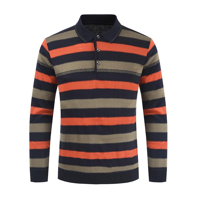 Camiseta de otoño e invierno 2023 para hombre, nueva camiseta de otoño, suéter de negocios con base de solapa de manga larga a juego con rayas de color
