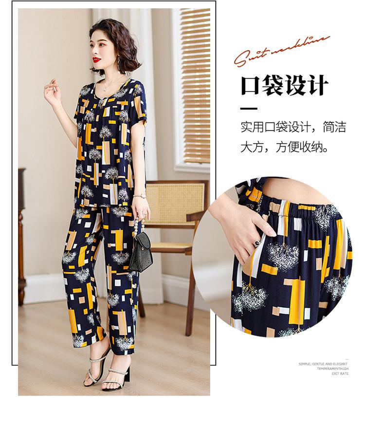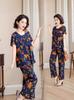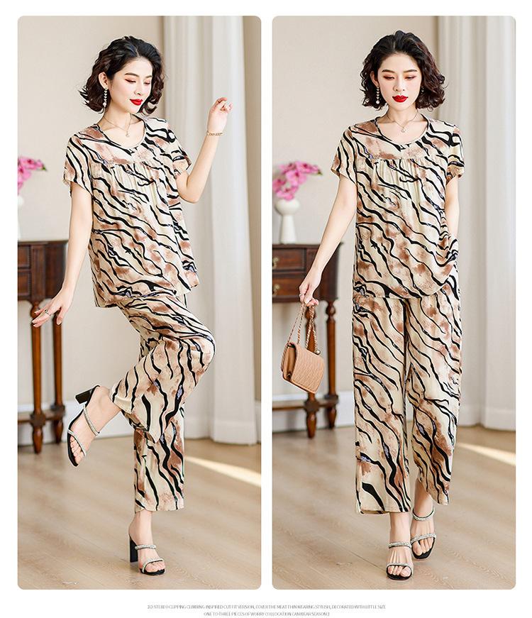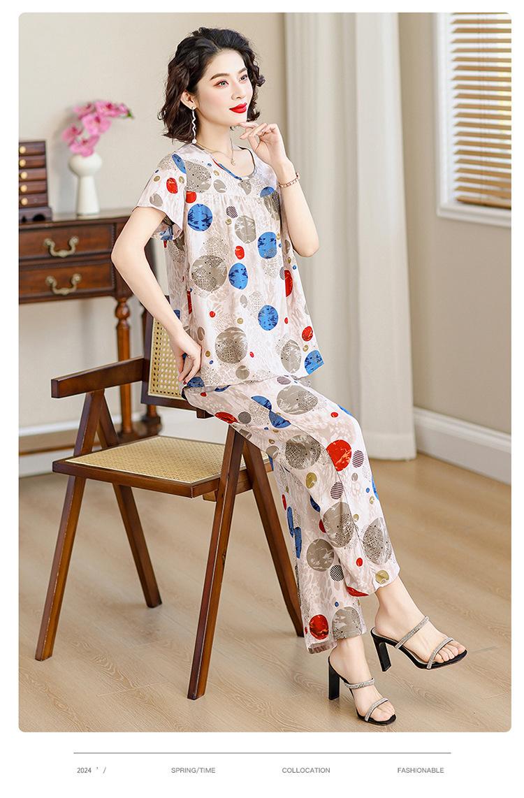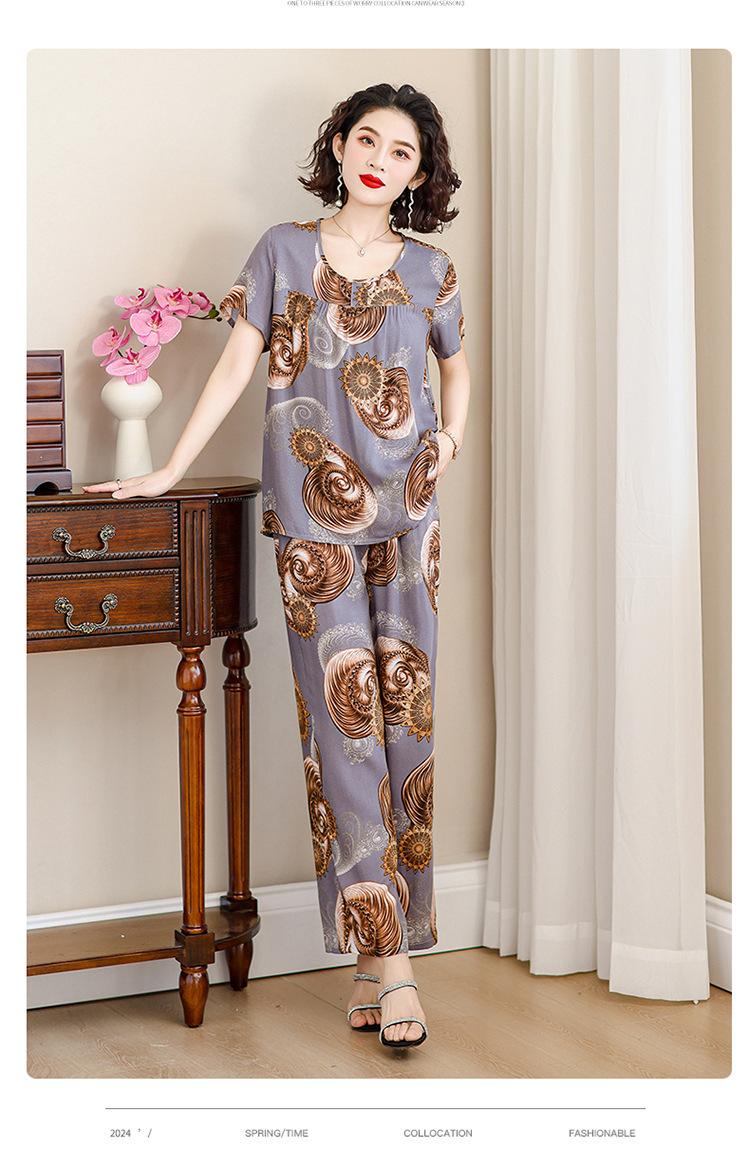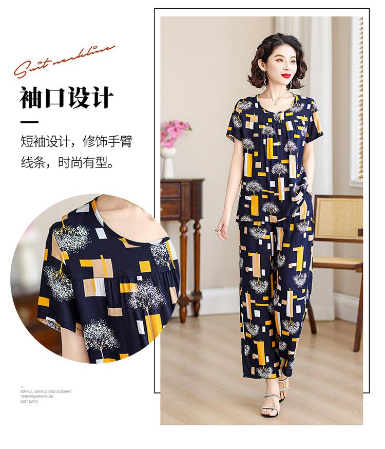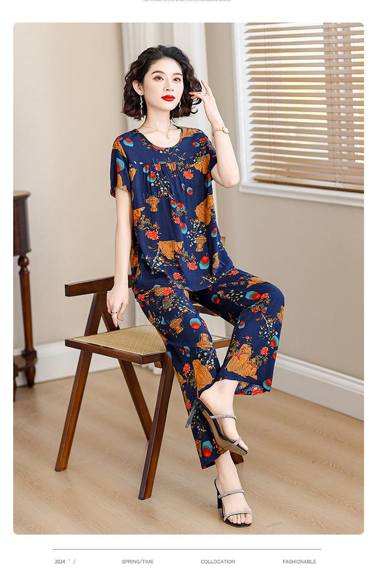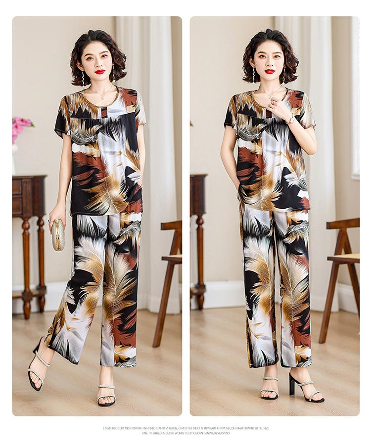 Top de Algodón Seda para Mamá Nueva Verano Edad Media y Anciana Traje de Abuela para Mujer Talla Grande Playera de Manga Corta Estampada Conjunto de Dos Piezas