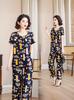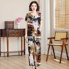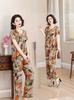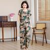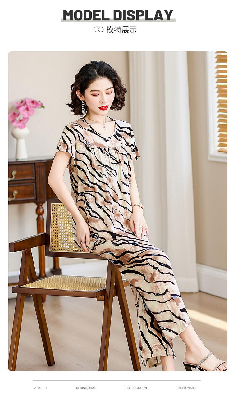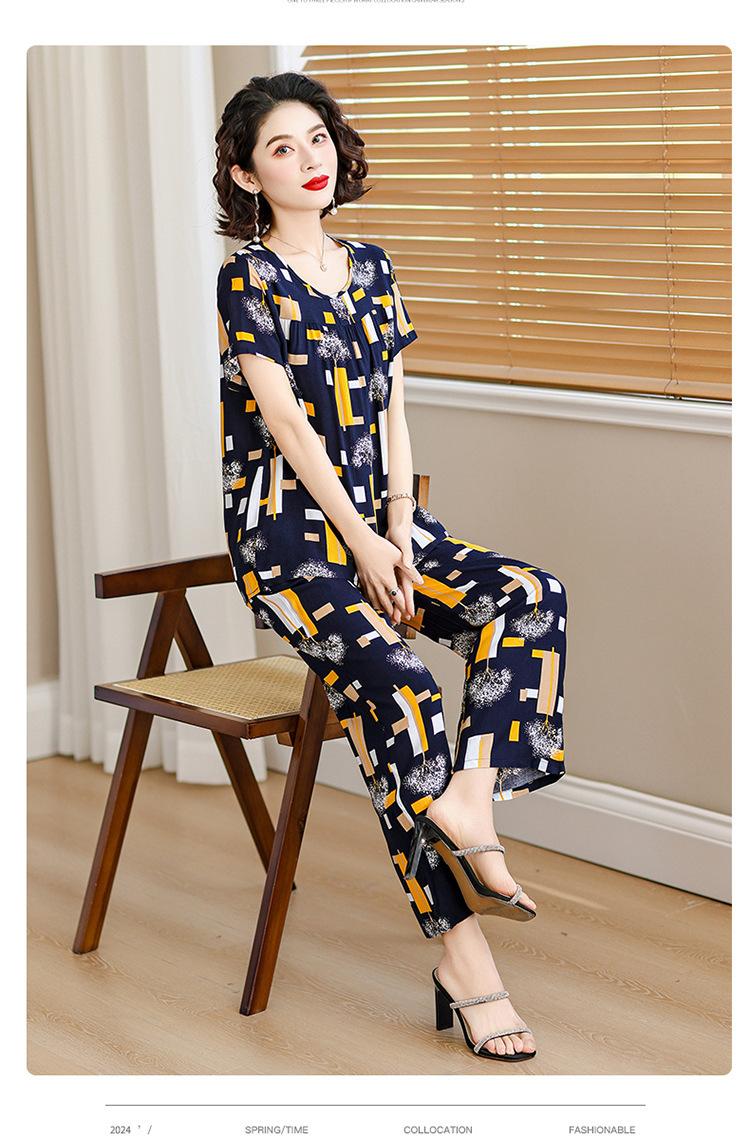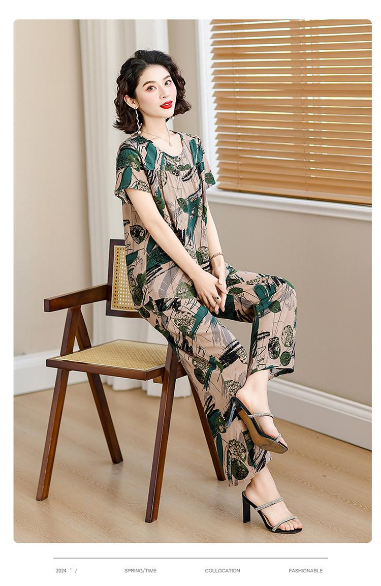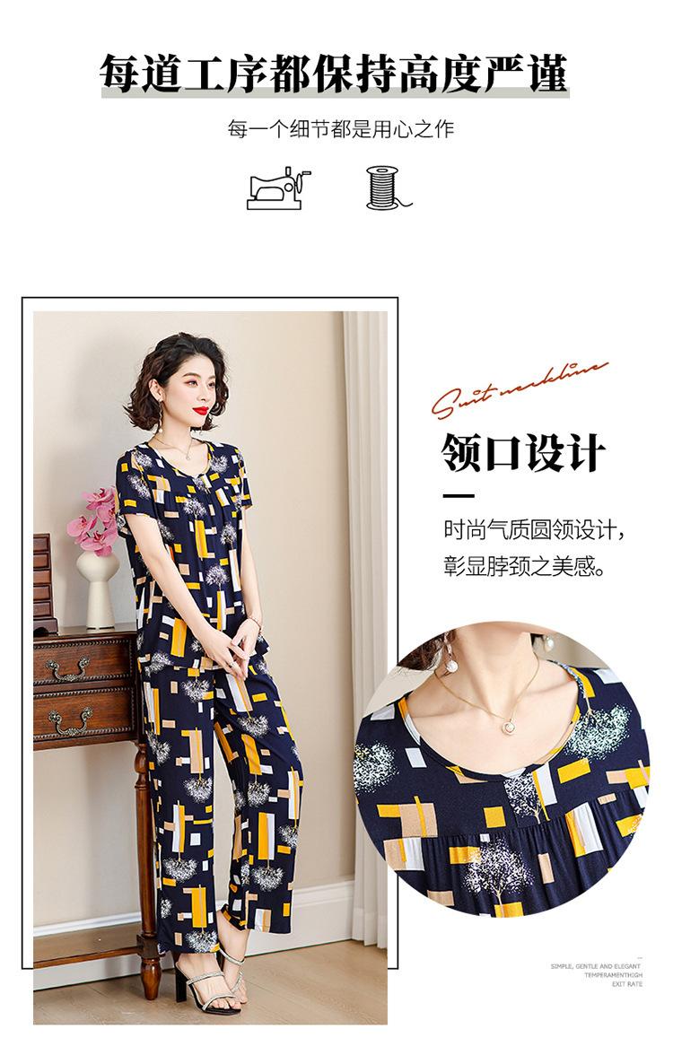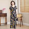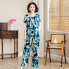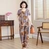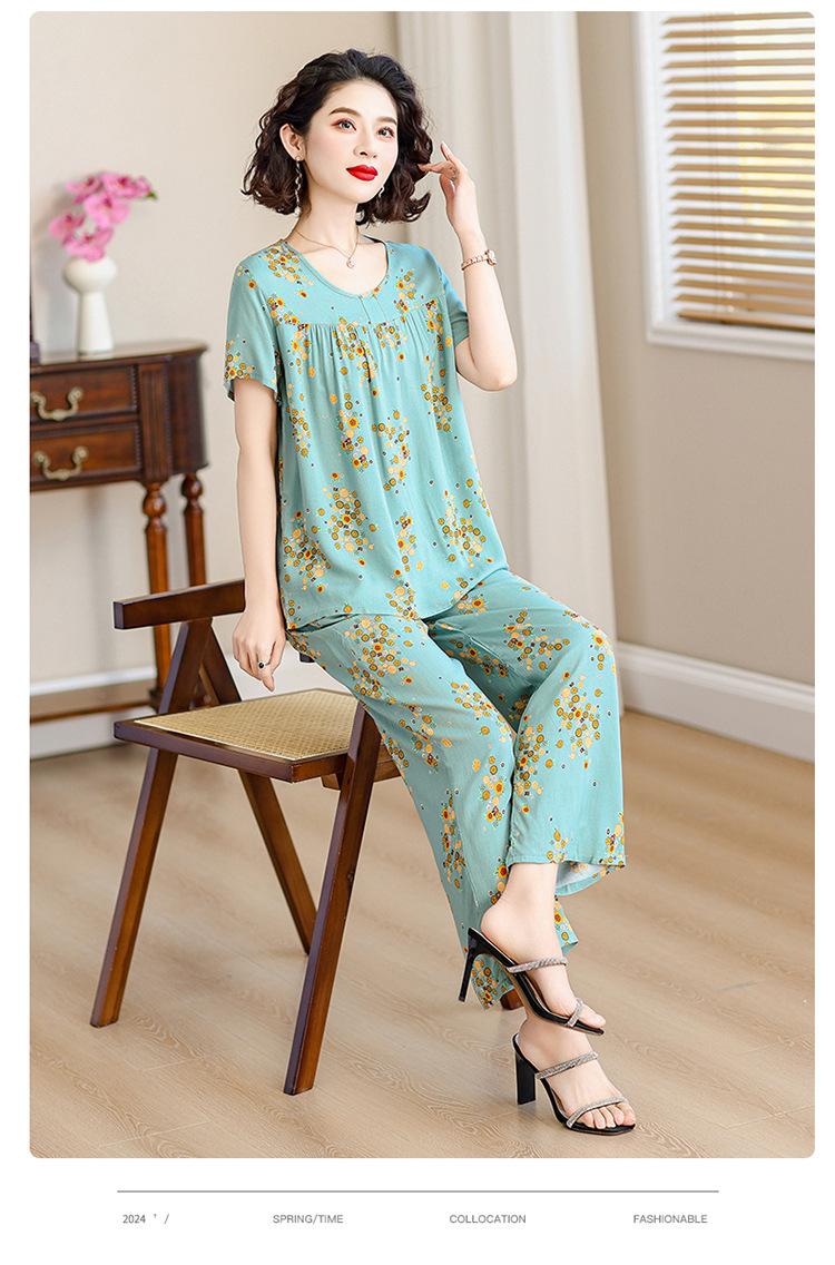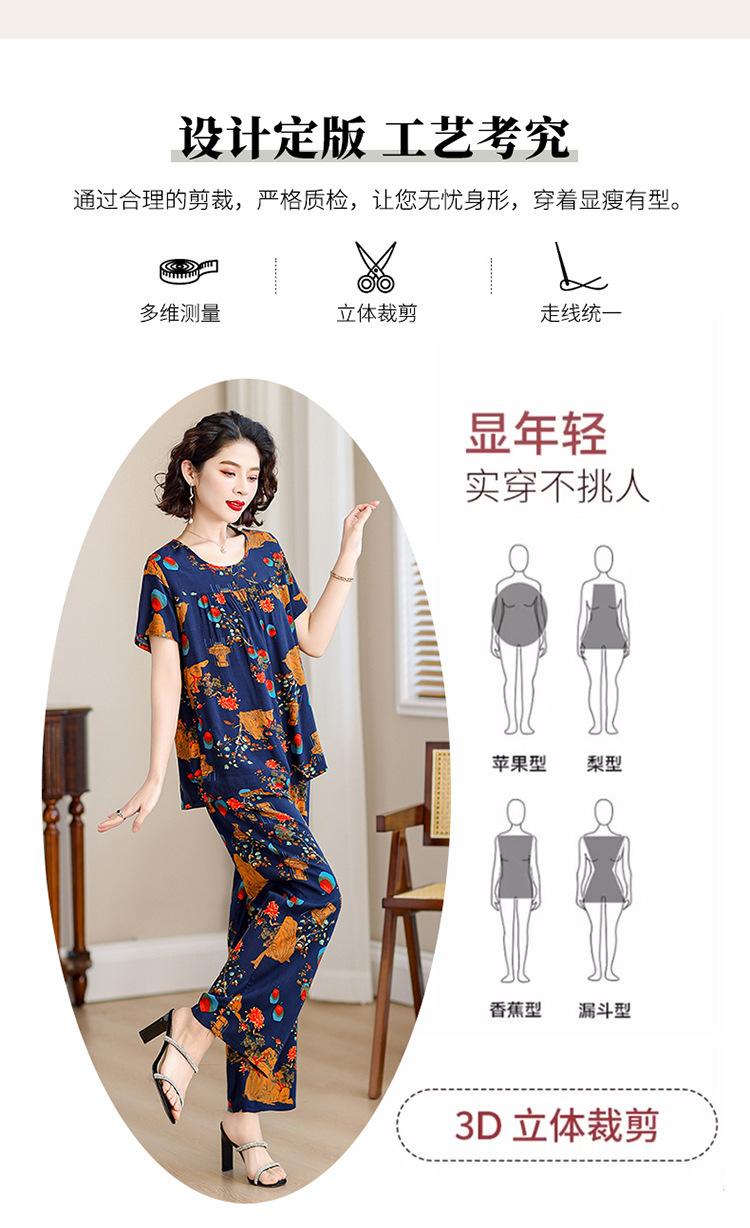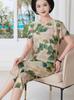 Top de Algodón Seda para Mamá Nueva Verano Edad Media y Anciana Traje de Abuela para Mujer Talla Grande Playera de Manga Corta Estampada Conjunto de Dos Piezas
