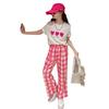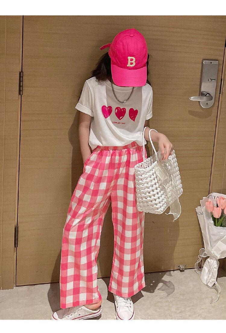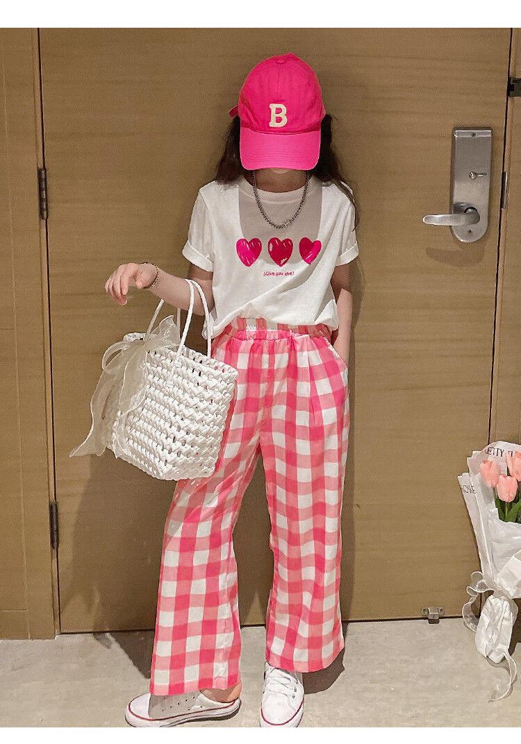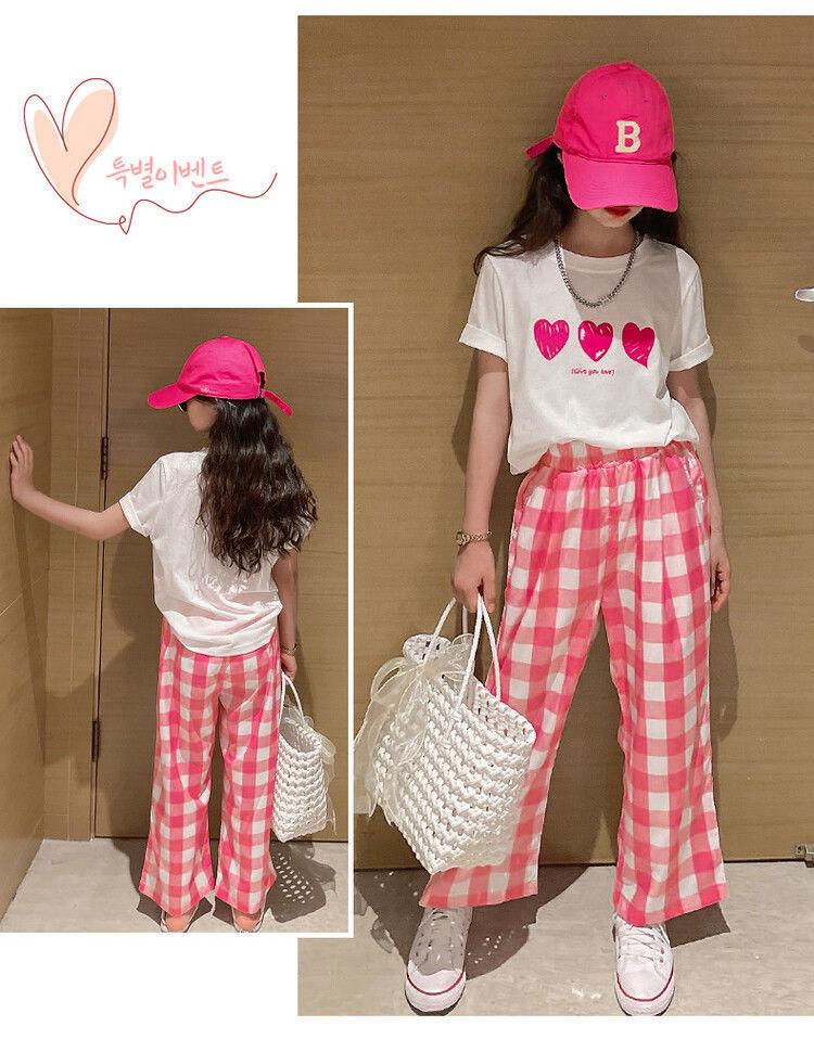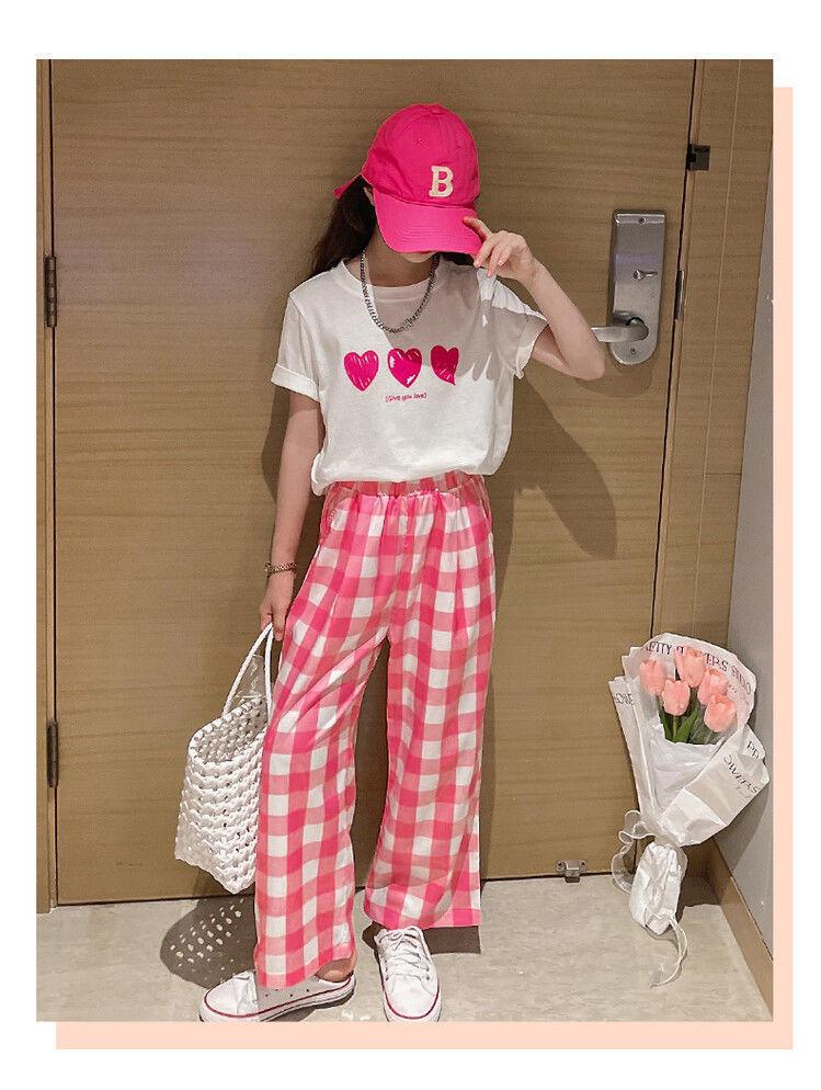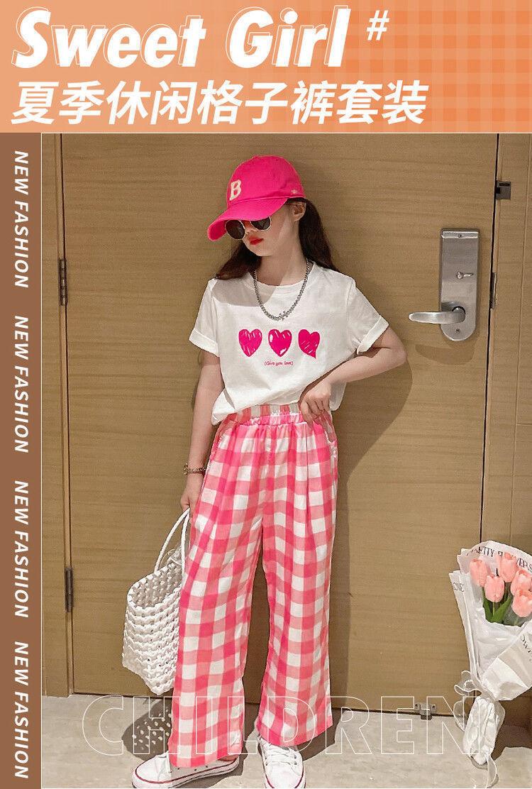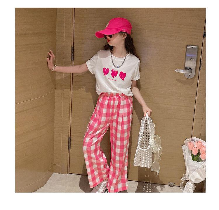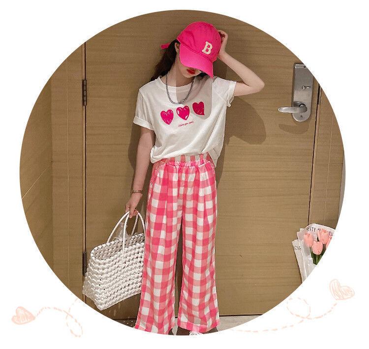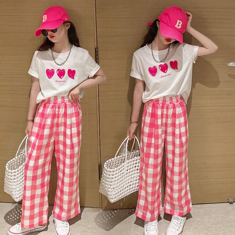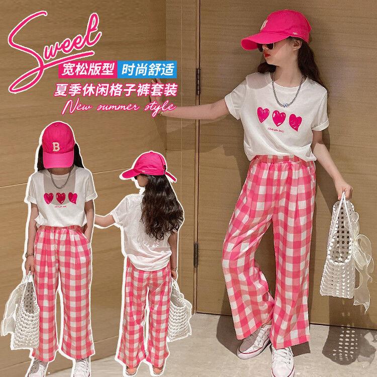 Traje de Manga Corta Estilo Coreano de Celebridad de Internet para Niños Medianos y Grandes 2024 Nuevo Estilo Pantalones de Moda para Niñas Conjunto de Dos Piezas Ropa Deportiva Verano