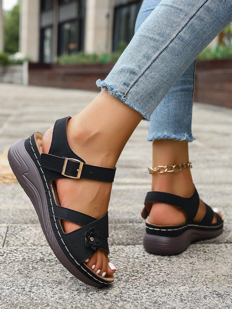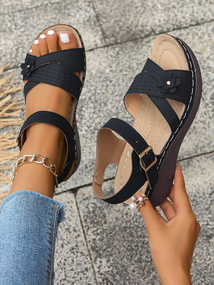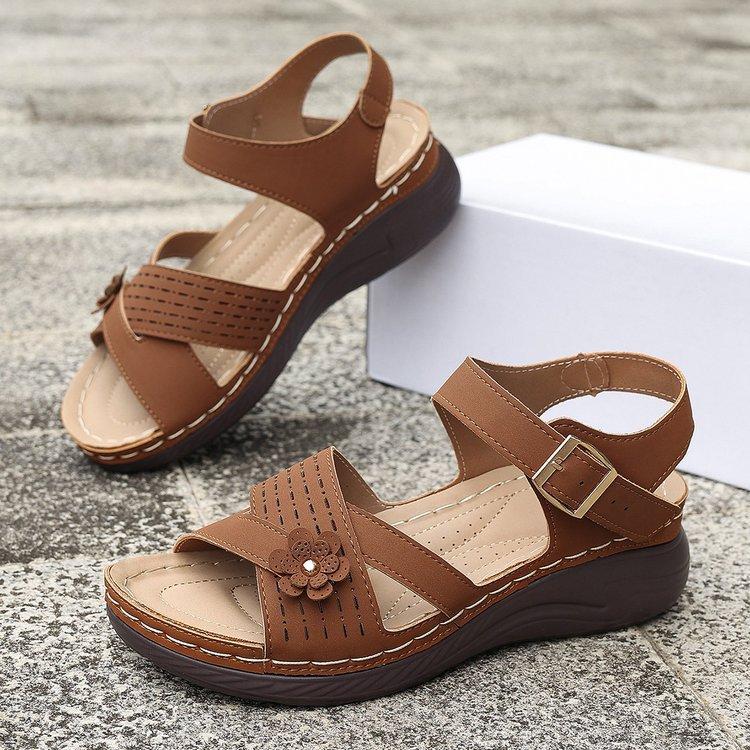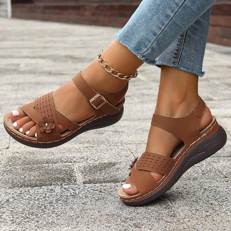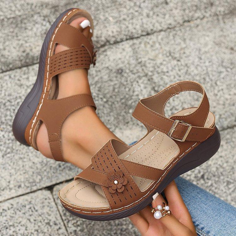 Compra Sandalias de cuña de verano 2024 de talla grande para mujer, sandalias planas con flores, sandalias gruesas para uso exterior. al por mayor en Joom.pro