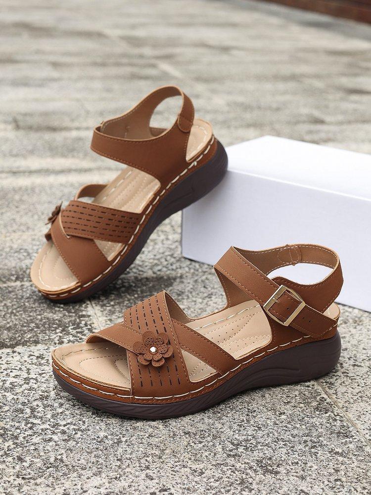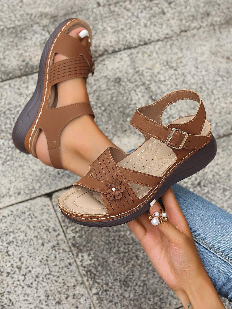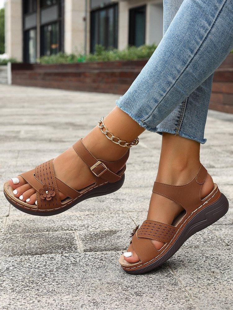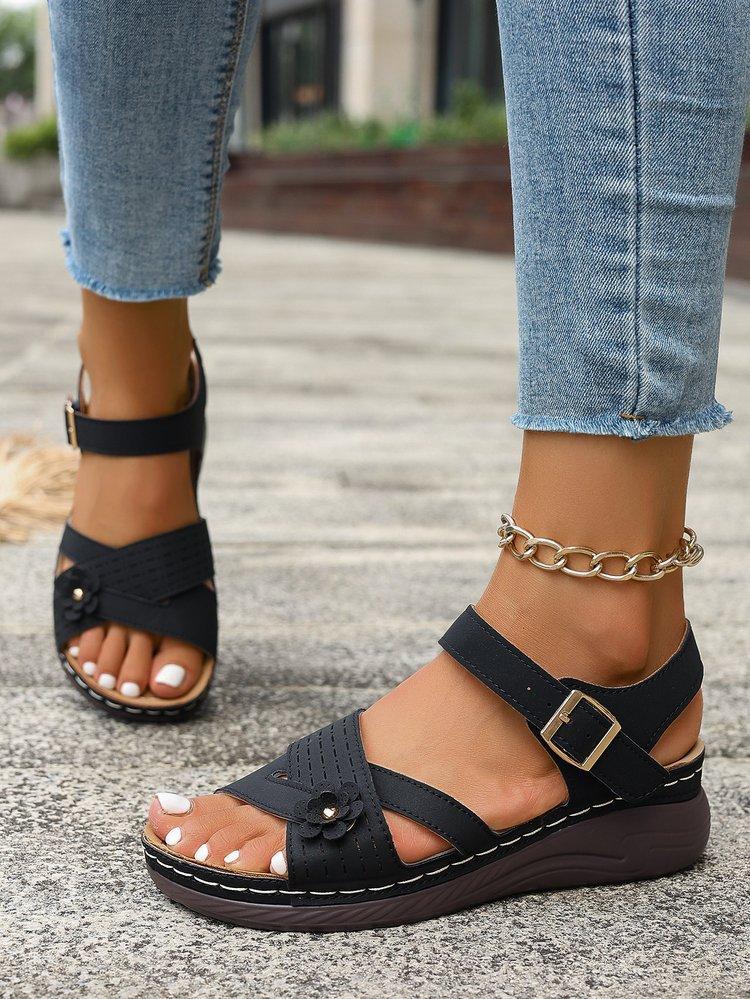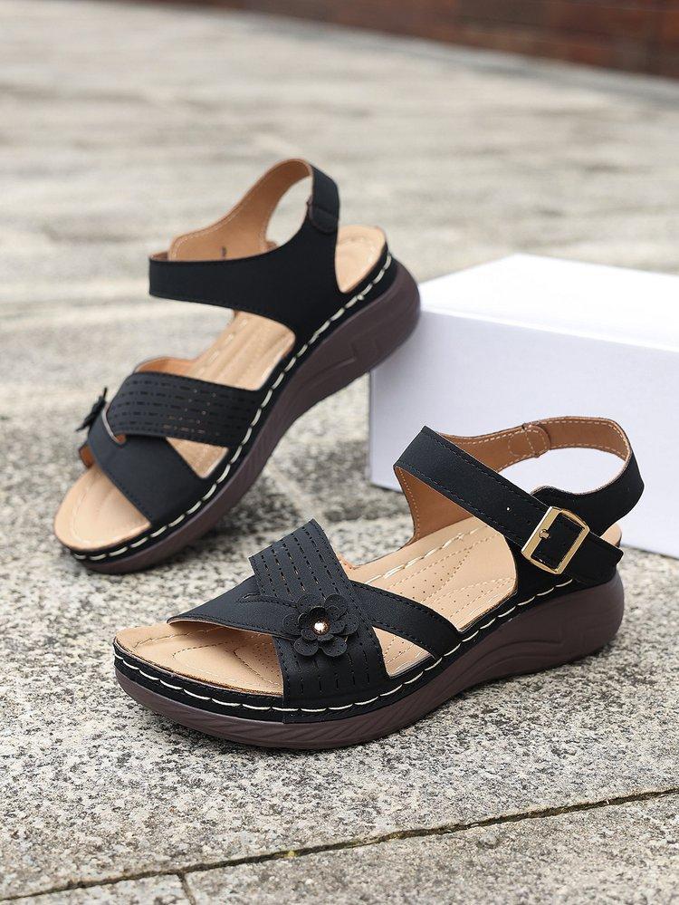 Compra Sandalias de cuña de verano 2024 de talla grande para mujer, sandalias planas con flores, sandalias gruesas para uso exterior. al por mayor en Joom.pro