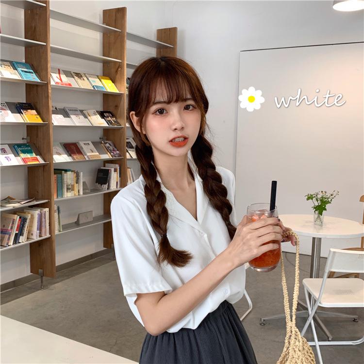 Compra Camisa blanca elegante con solapa para mujer, diseño con sentido del humor, nueva camisa de manga corta para mujer de verano 2023, moderna y combinable. al por mayor en Joom.pro