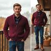 Chaqueta chaqueta para hombre otoño e invierno Nueva cuello alto negocios casual forrada de polar joven y mediana edad chaqueta ropa de papá de una sola capa