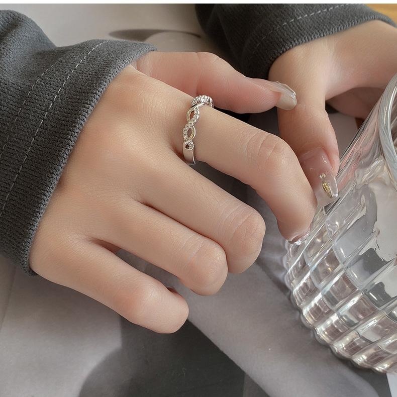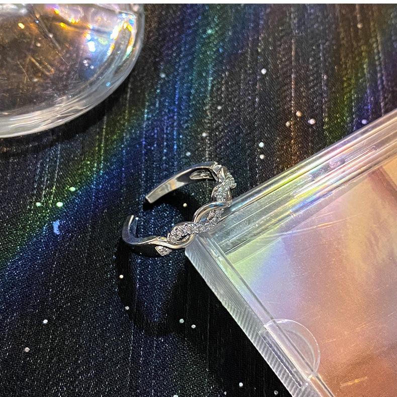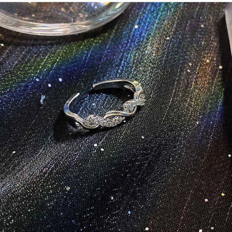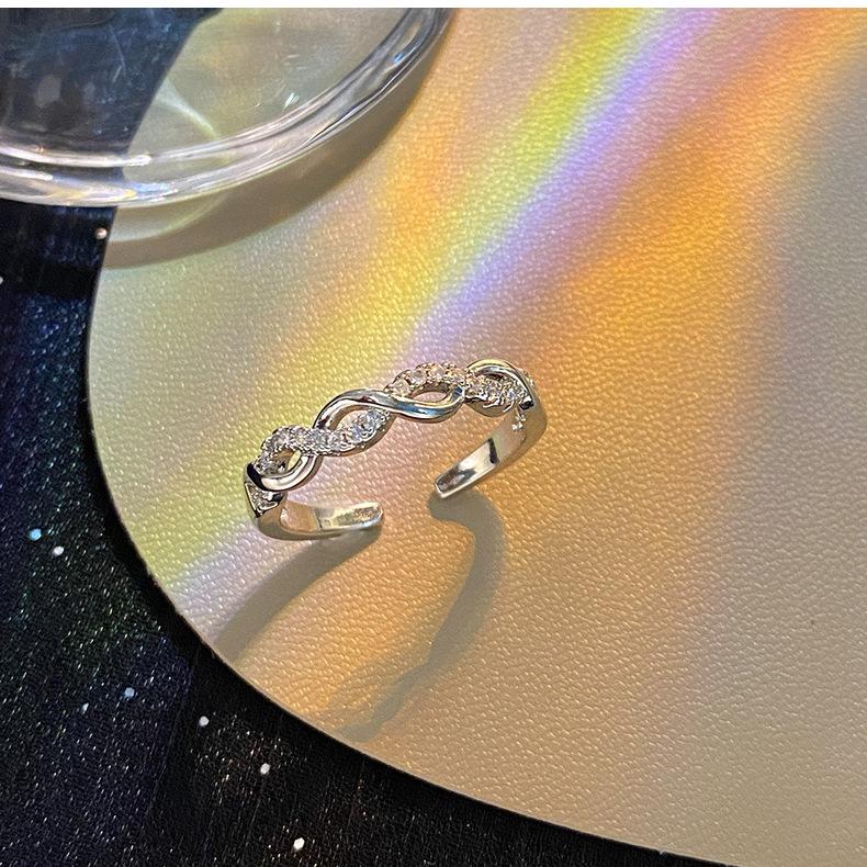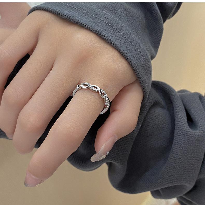 Anillo Simple Tejido Trenzado con Zircón Estilo Coreano para Mujer Diseño Nicho Sentido Celebridad de Internet Anillo Abierto Ajustable Joyería de Mano