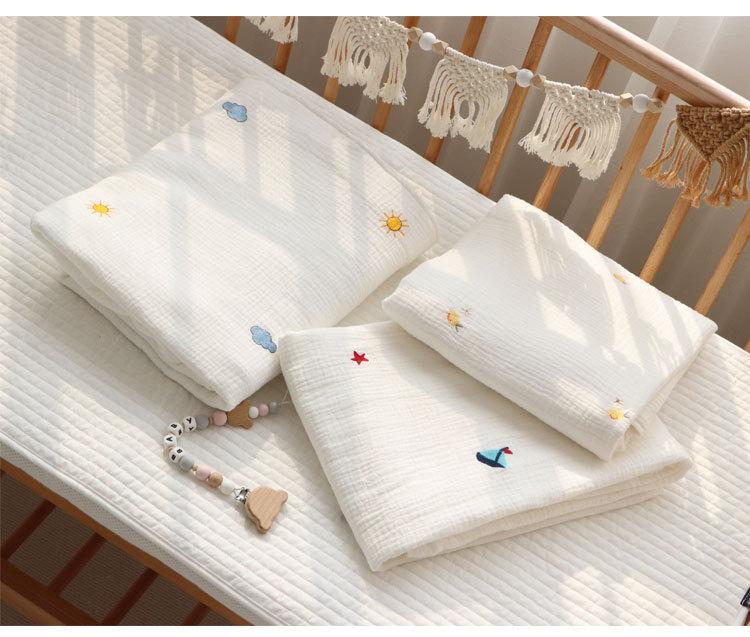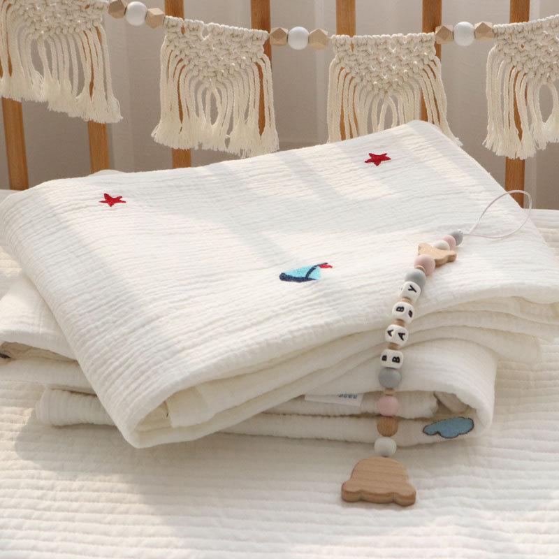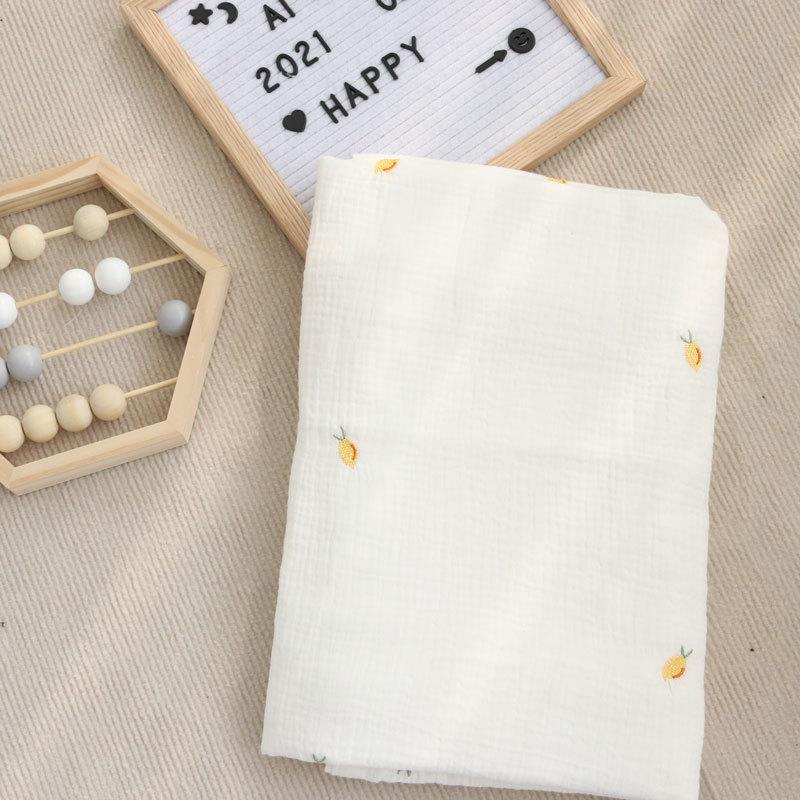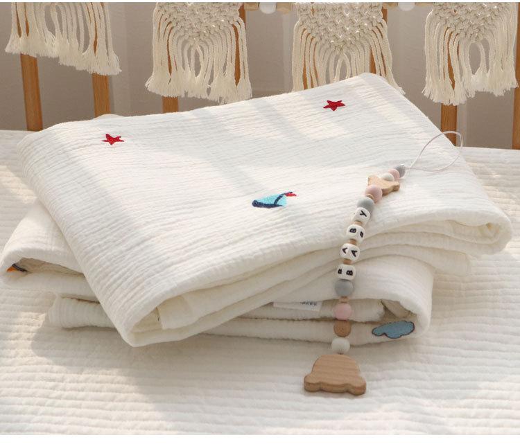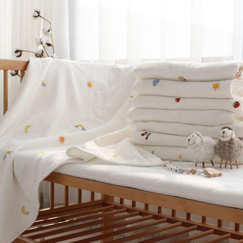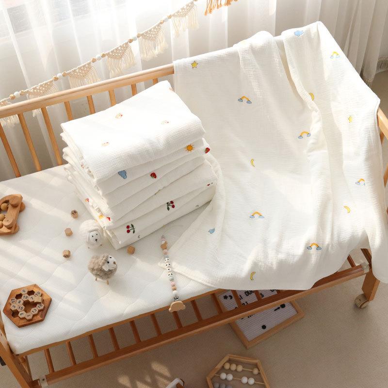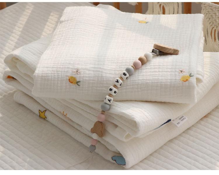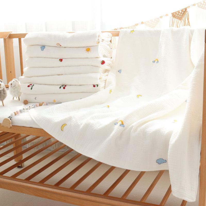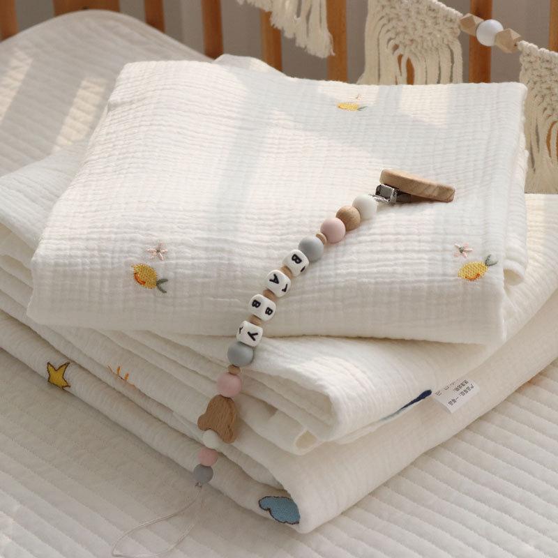 Colcha para Bebé Algodón Puro Gasa Arrugada Cubierta Manta Toalla de Baño Bordada para Bebé Verano Recién Nacido Toalla para Envolver Fular