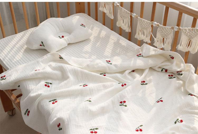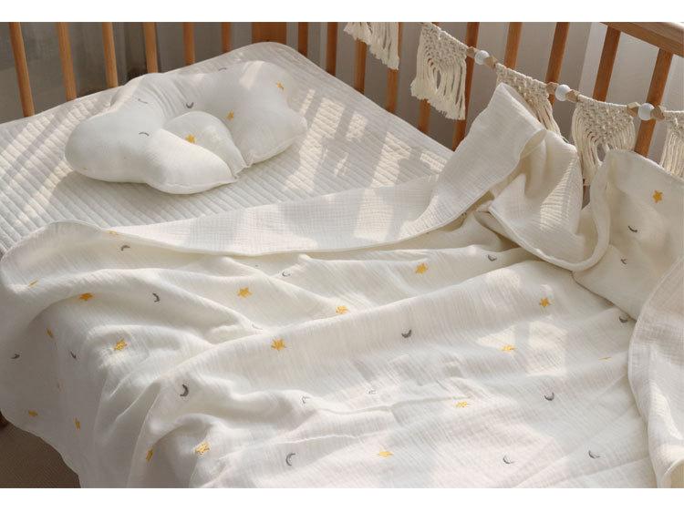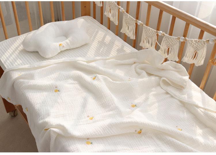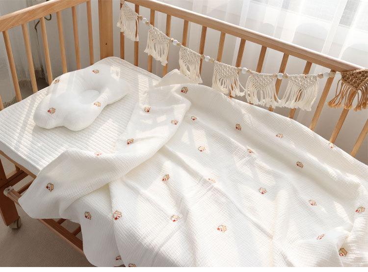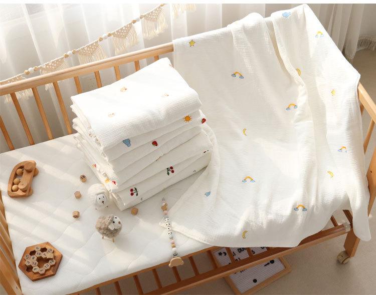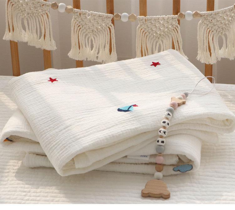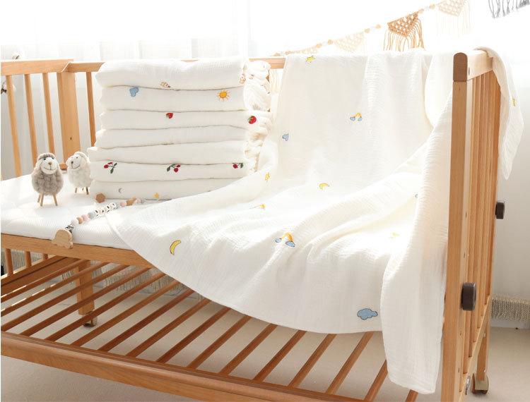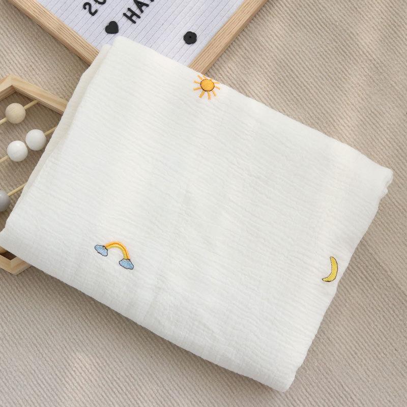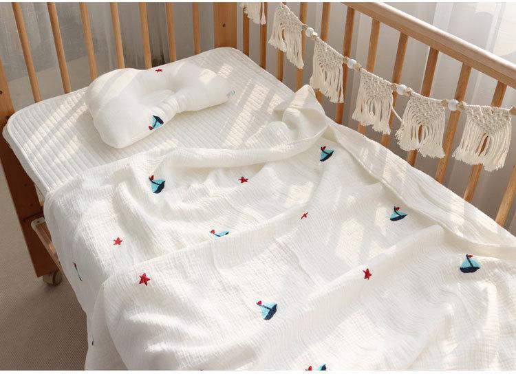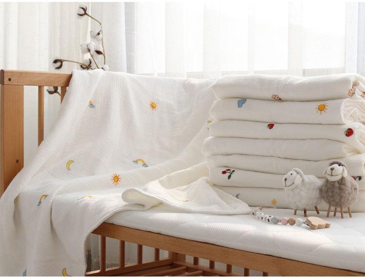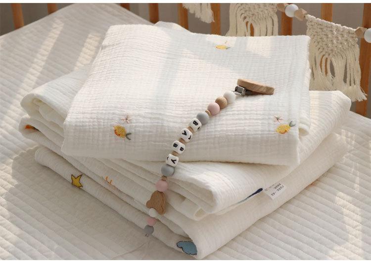 Colcha para Bebé Algodón Puro Gasa Arrugada Cubierta Manta Toalla de Baño Bordada para Bebé Verano Recién Nacido Toalla para Envolver Fular