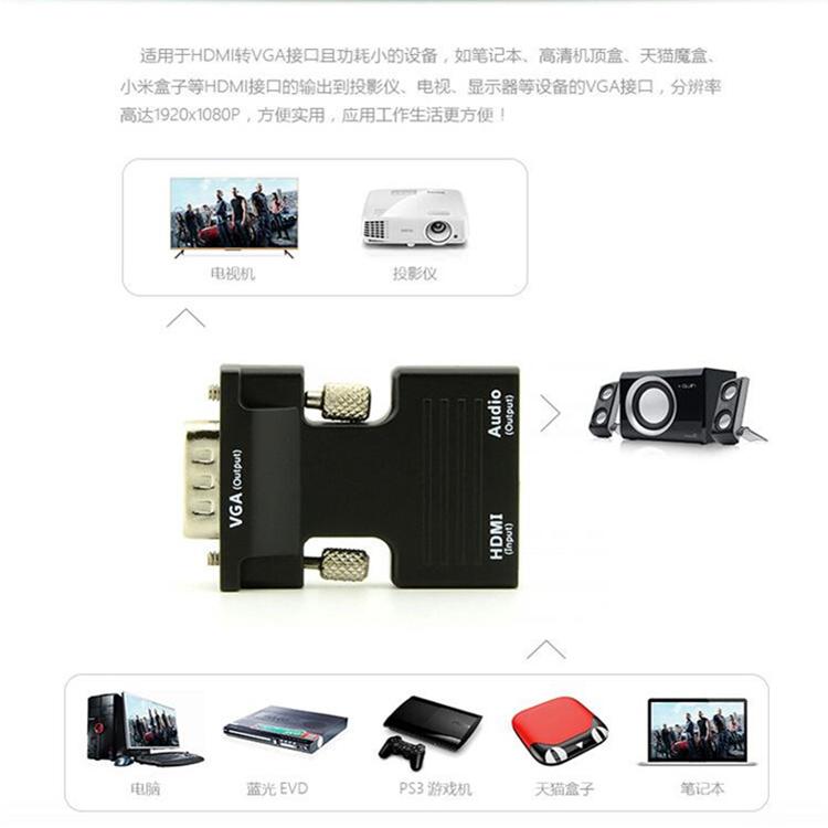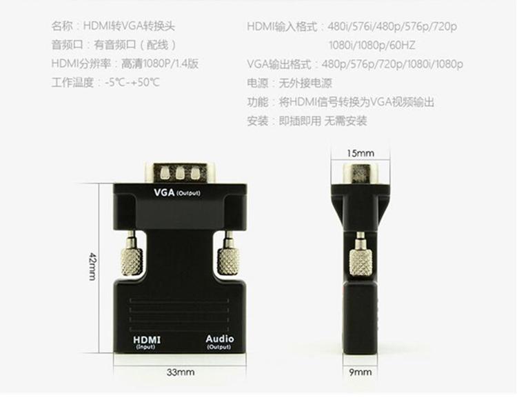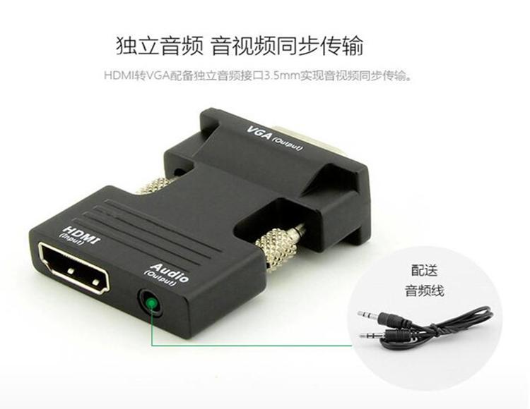Nombre del producto:Nuevo adaptador de venta directa HDMI a VGA con chip y audio Adaptador HDMI a VGA con audio