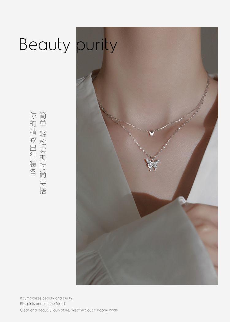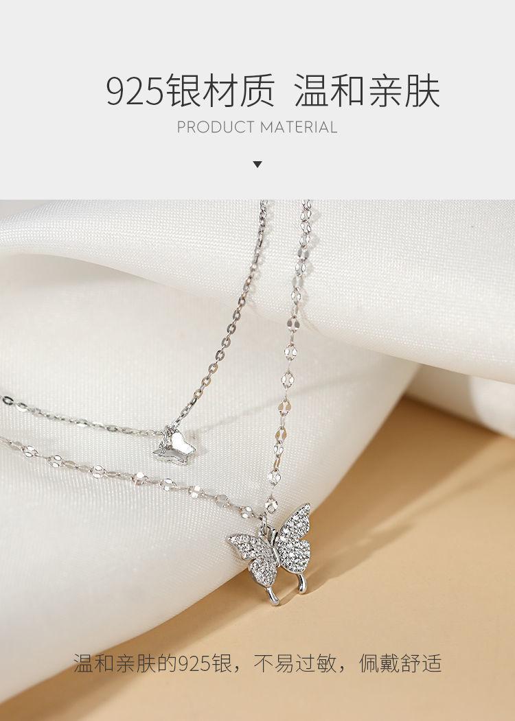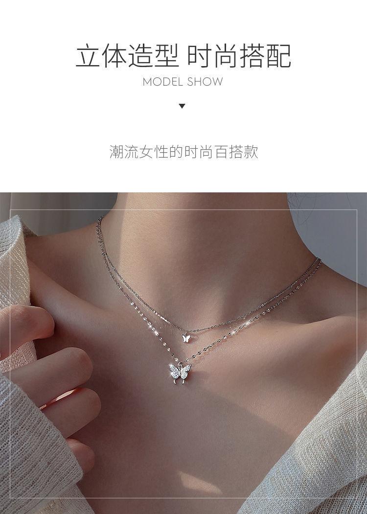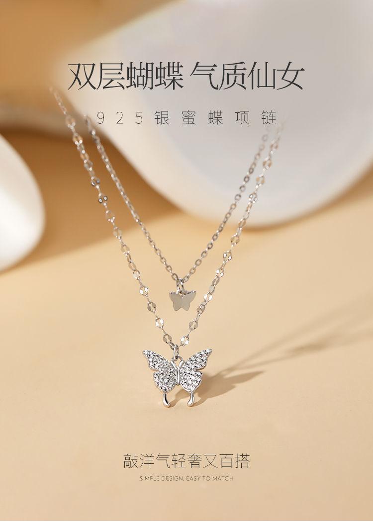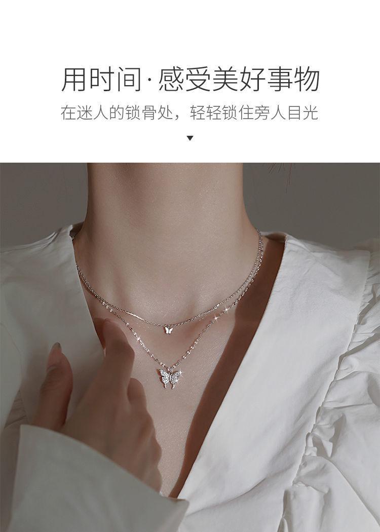 Collar de mariposa de doble capa de plata esterlina s925 de Sweet Niche, con temperamento japonés y coreano, colgante de cadena de clavícula de hada de lujo de alta gama.